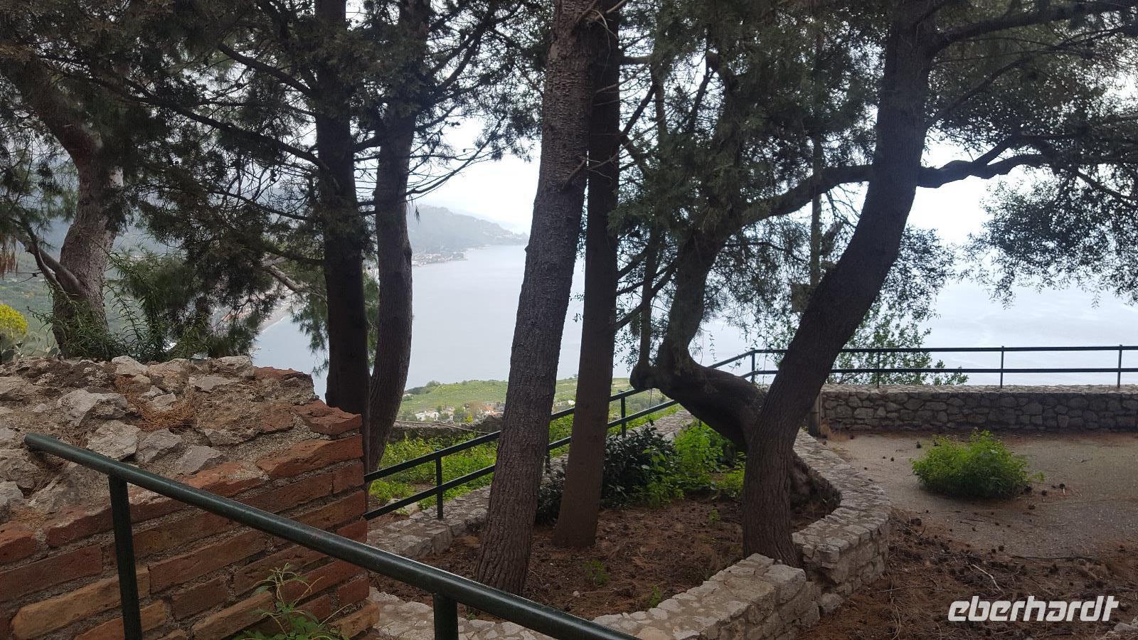 Danach genießen wir die Ruhe und schlendern etwas durch die alten,verlassen scheinenden Gässchen. Langsam geht es zum Bus zurück und die geliebten Serpentinen hinab, leider stellt sich kurz bevor wir unten angekommen sind heraus, dass der untere Teil der Straße nicht befahrbar ist, d.h. wir drehen noch ein paar extra Kurven und zwar den Berg wieder hinauf. Etwas Zeit büßen wir dadurch ein, aber das uns erwartende Mittagessen auf einem Agriturismo entschädigt dies wieder. Nach Ricotta-Käse, eingelegten Oliven, Auberginen, Pilzen, Schinken und vielen anderen Leckereien sind wir fit für Taormina.