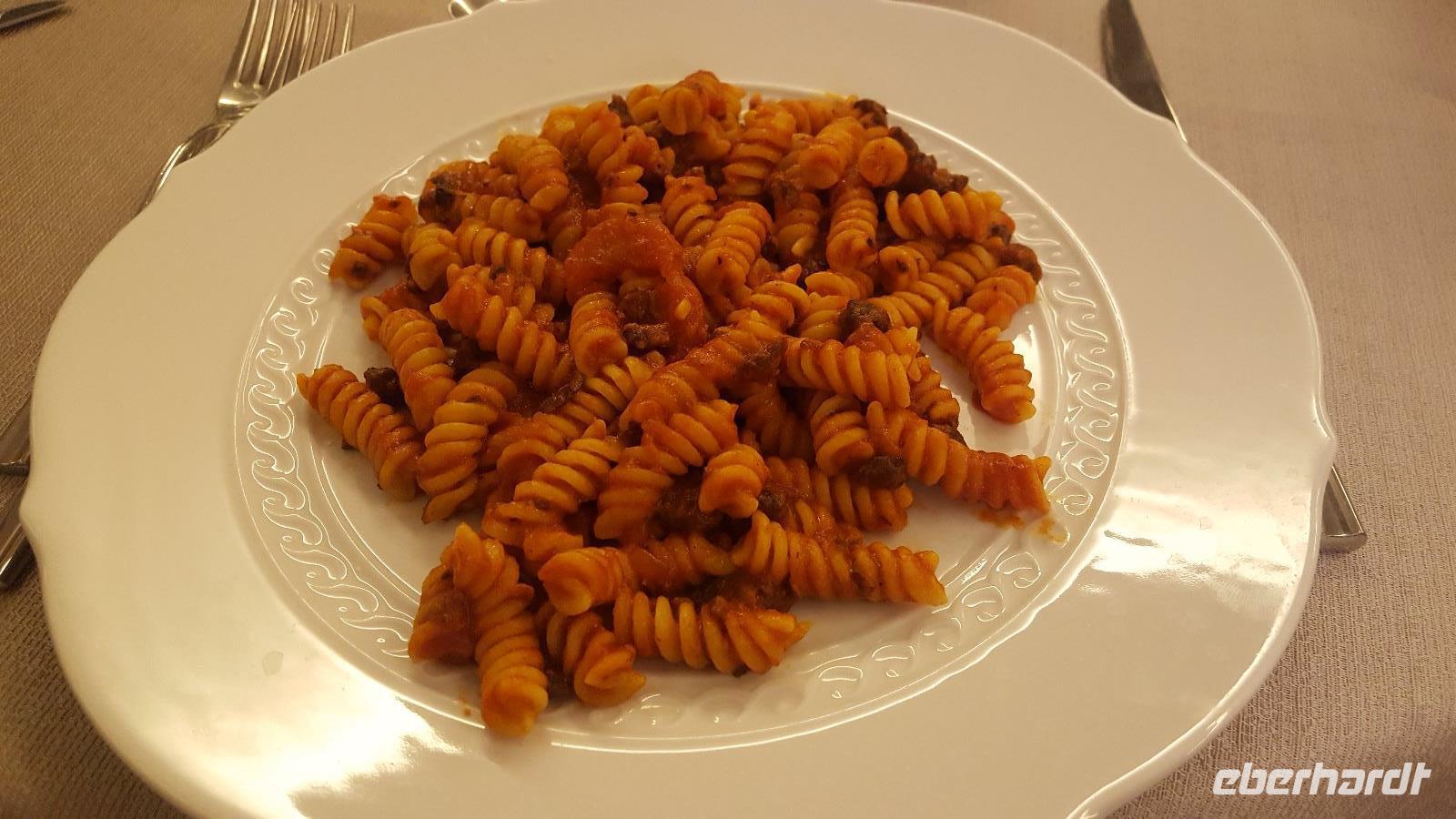Zum Abendessen gibt es ausschließlich frische und selbst gemachte sizilianische Köstlichkeiten und diese schmecken uns allen sehr gut.