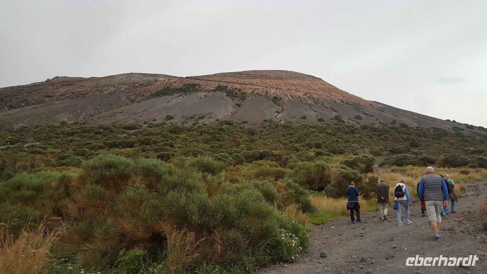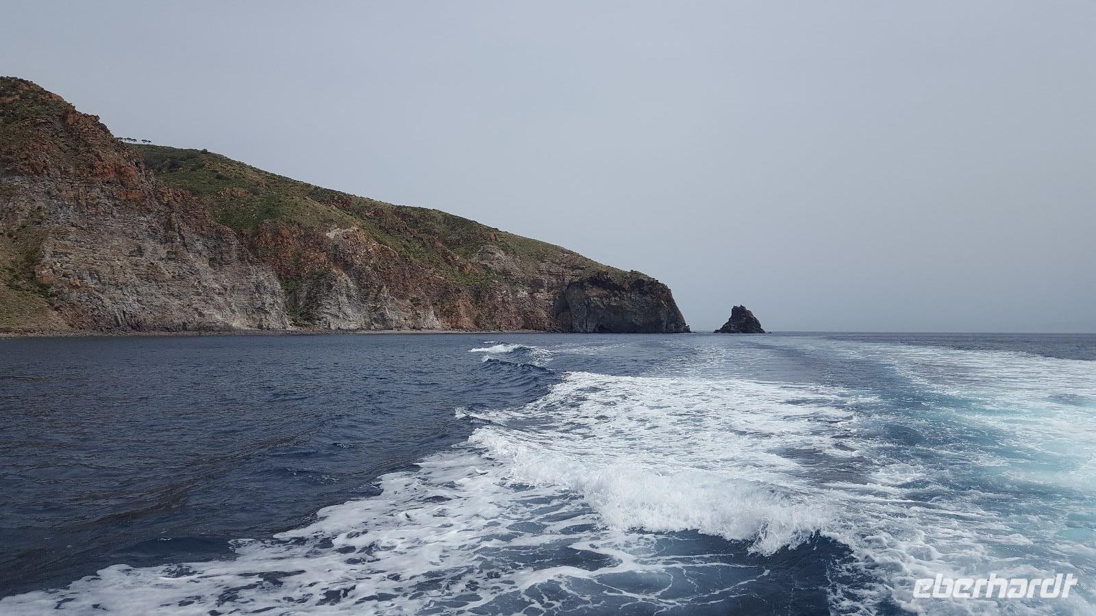 Wir fahren vorbei am Papstfelsen, der in seiner Form einem Papst sehr ähnlich sieht und machen dort einen kurzen Fotostopp. Weiter geht es an Acquacalda vorbei. In diesem Ort wurde Bimsstein und Obsidian abgebaut. Nach der Inselrundfahrt haben wir etwas Zeit zur freien Verfügung, bevor unsere Fähre noch zu einer zweiten Insel fährt, die wir uns heute näher anschauen wollen. Vulcano, die südlichste der Liparischen Inseln.