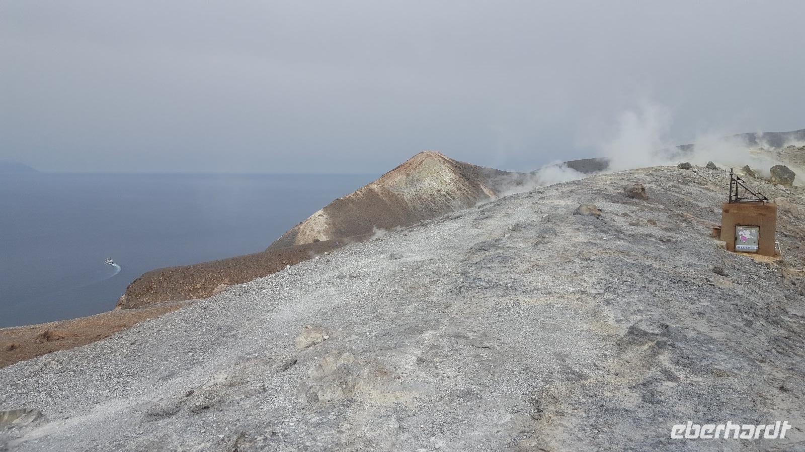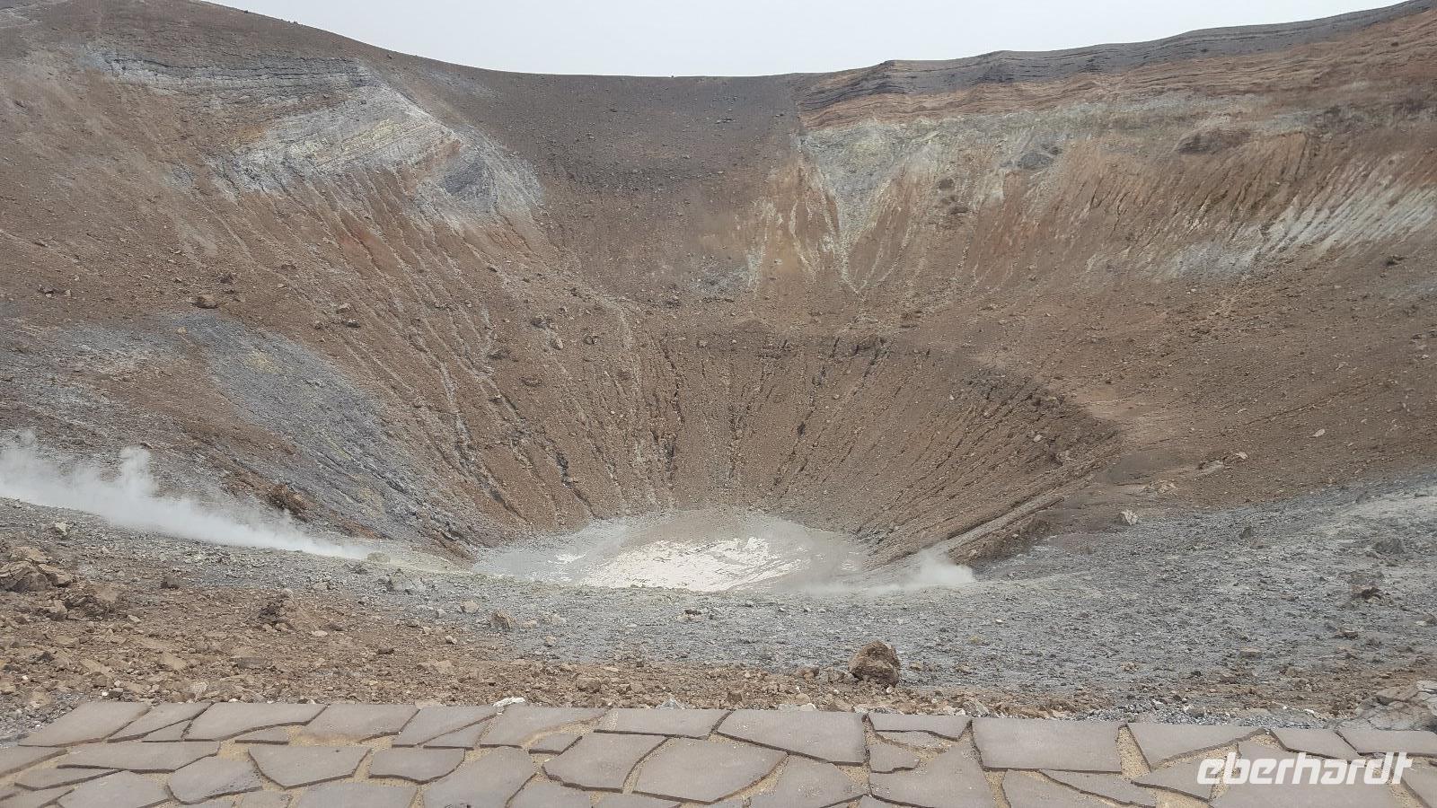 Wählen können wir zwischen einem Schwefelbad, einer Wanderung zum Vulkankrater oder auch etwas Entspannung in einer kleinen Bar mit einem kühlen Getränk. Ich bin sehr stolz, denn ca. die Hälfte der Gruppe lässt es sich nicht nehmen am Ende der Reise noch einmal richtig aktiv zu werden und wandert hoch zum Krater. Weiter oben steigt der Schwefelgeruch dann richtig in die Nase und wir sehen die entweichenden Schwefelwolken.