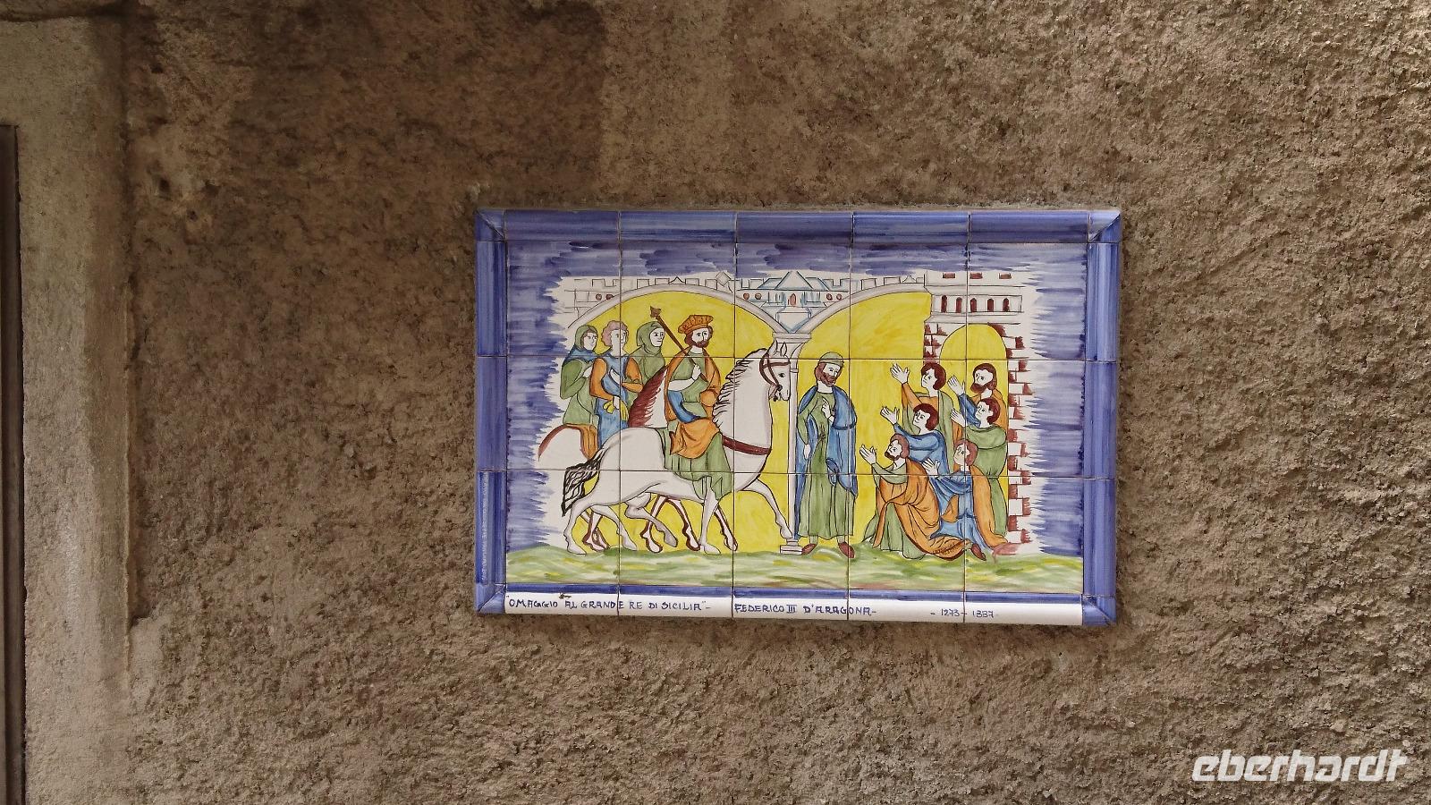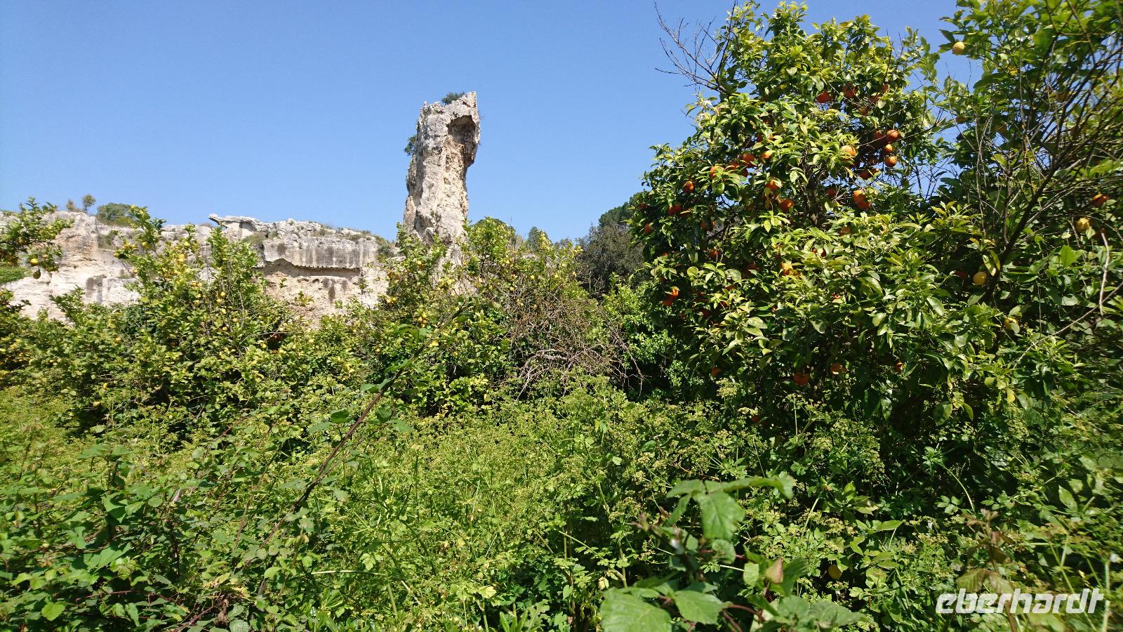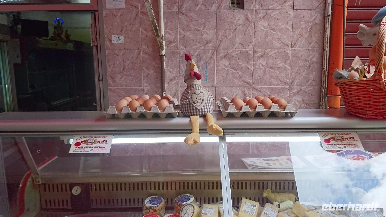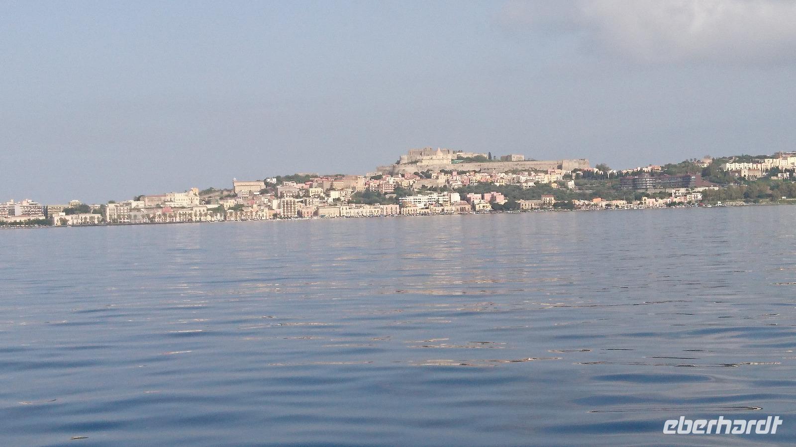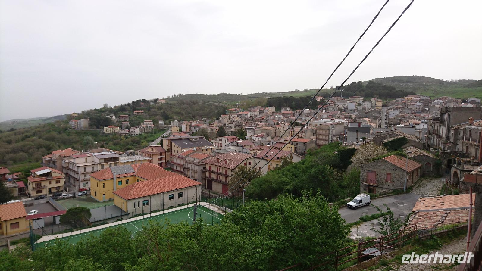 Schon nach Hause? Ach was, noch ein Tag blieb uns auf Sizilien und das war auch gut so! Quer durch die Ebene bei Catania fuhren wir mit ständigem Blick auf den leider etwas umwölkten Ätna, sahen noch einmal viele Orangen- und Zitronenplantagen, mussten auch erkennen, dass Gertraudes Worte, der Tourismus ist heute in Sizilien die Haupteinnahmequelle, wirklich zutraf, denn schon die Apfelsinenbäume mit Früchten und Blüten zeugten davon, dass man mit den Früchten keine den Lebensunterhalt bestimmenden Gewinne mehr machen kann. Verlassene und dem Verfall preisgegebene einst herrschaftliche Landgüter oder auch leere Läden und Häuser in den kleinen durchquerten Orten stellten die Schwierigkeit des Lebens auf Sizilien in unseren so fortschrittlichen und zivilisierten Tagen klar und deutlich dar. Und doch gefiel uns der darauf besuchte kleine Ort Montalbano Elicona mit seinen schmalen Gassen, Wappen an den alten Häusern und dem alles überthronenden Castel. Gern kauften wir etwas Süßes oder ein Waser, tranken einen Espresso und nutzten dafür die Toilette in einer kleinen Bar, in der Weihnachtsschmuck neben Osterhasen zu finden war, ehe wir wieder in unseren Bus stiegen und weiter über Land zu einem kleinen Gut fuhren, wo seit Jahrhunderten Wein angebaut und Käse hergestellt wird. Sturm kam auf und wir waren froh, jetzt eine mittägliche Verkostung im Haupthaus beginnen zu können. Selbst hergestellte Wurst, verschiedene Käse, Hauswein, eingelegte Früchte vermittelten uns noch einmal mehr einen tollen Eindruck der sizilianischen Küche. Später wurde der Wind einsichtig und ruhiger. So konnten wir mit dem Bauern einen kleinen Hofrundgang unternehmen. Er berichtete, dass erst kürzlich ein Fuchs den Hühnerstall aufbrach und 80 seiner Hühner riss, ehe er, ohne wirklich etwas gefressen zu haben, wieder von Dannen zog. Im Käselager sahen wir, wie die großen, runden Käse entstehen und die alte Weinpresse wurde uns ebenso erklärt. Wer wollte, konnte noch etwas Käse für zuhause kaufen. Dann ging es weiter über die Ebene. Ein Zwischenstopp an interessanten vulkanisch entstandenen Felsformationen entlang eines Flusses zeigte uns, welch Naturwunder ohne jegliches Zutun des Menschen existieren... und wie der Mensch, in diesem Fall ein Einzelner, daraus als Landbesitzer Gewinn mit Touristen schlagen kann. Nun, das gehört heute allerorts auf der Welt zusammen. Später erreichten wir den mittleren Parkplatz von Taormina und wir stiegen von Paolos Bus um in einen kleinen Shuttlebus, der uns in die Altstadt von Taormina brachte. Hier bestaunten wir hoch oben auf den Felsen ein griechisch-römisches und fast vollständig erhaltenes Theater, bummelten dann individuell durch den Ort und ließen so unsere Reise schon etwas ausklingen. Dann ging es per Bus zurück zum Hotel, wo wir Gertraude und Paolo herzlich verabschiedeten, und bald gab es unser vorerst letztes sizilianisches Abendessen am Buffet, danach packten wir schon einmal unsere Koffer vor und schliefen dem Abreisetag entgegen.