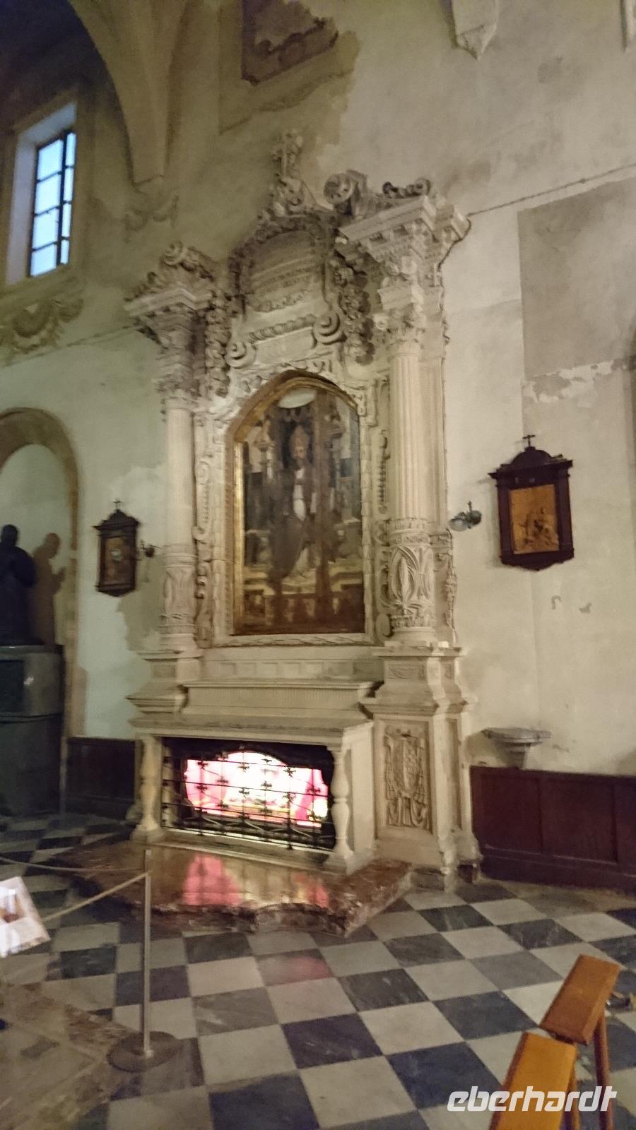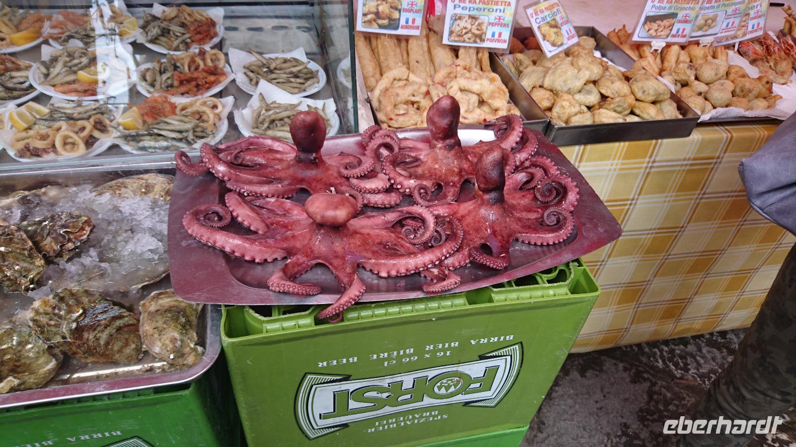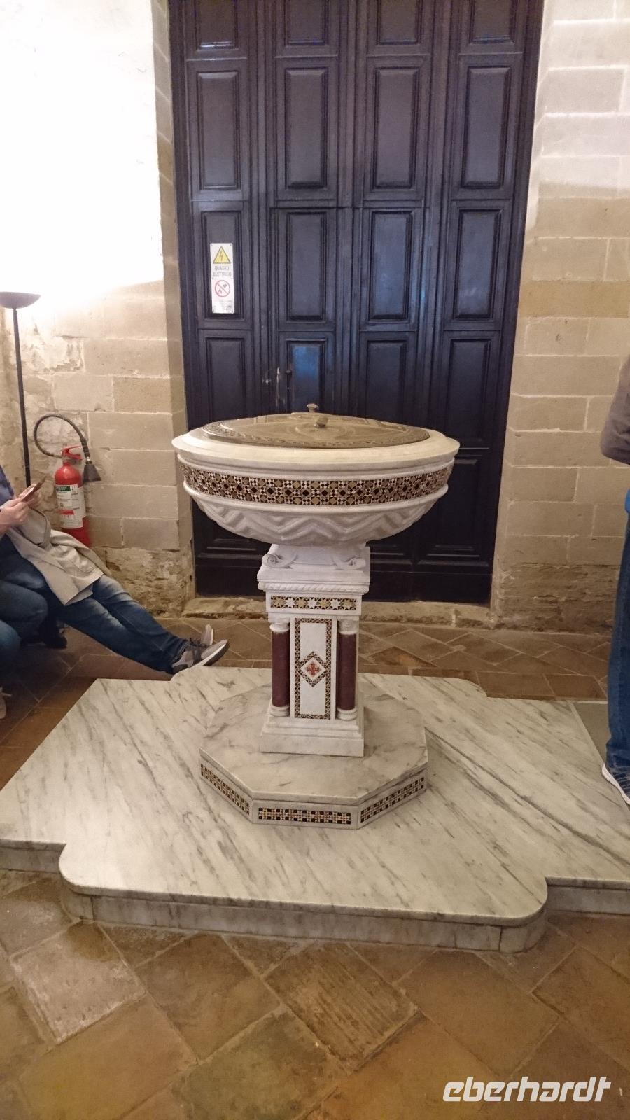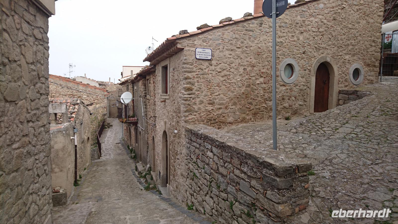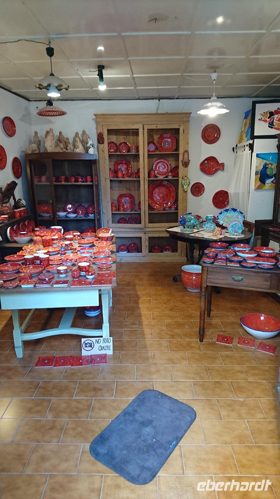Schon nach Hause? Ach was, noch ein Tag blieb uns auf Sizilien und das war auch gut so! Quer durch die Ebene bei Catania fuhren wir mit ständigem Blick auf den leider etwas umwölkten Ätna, sahen noch einmal viele Orangen- und Zitronenplantagen, mussten auch erkennen, dass Gertraudes Worte, der Tourismus ist heute in Sizilien die Haupteinnahmequelle, wirklich zutraf, denn schon die Apfelsinenbäume mit Früchten und Blüten zeugten davon, dass man mit den Früchten keine den Lebensunterhalt bestimmenden Gewinne mehr machen kann. Verlassene und dem Verfall preisgegebene einst herrschaftliche Landgüter oder auch leere Läden und Häuser in den kleinen durchquerten Orten stellten die Schwierigkeit des Lebens auf Sizilien in unseren so fortschrittlichen und zivilisierten Tagen klar und deutlich dar. Und doch gefiel uns der darauf besuchte kleine Ort Montalbano Elicona mit seinen schmalen Gassen, Wappen an den alten Häusern und dem alles überthronenden Castel. Gern kauften wir etwas Süßes oder ein Waser, tranken einen Espresso und nutzten dafür die Toilette in einer kleinen Bar, in der Weihnachtsschmuck neben Osterhasen zu finden war, ehe wir wieder in unseren Bus stiegen und weiter über Land zu einem kleinen Gut fuhren, wo seit Jahrhunderten Wein angebaut und Käse hergestellt wird. Sturm kam auf und wir waren froh, jetzt eine mittägliche Verkostung im Haupthaus beginnen zu können. Selbst hergestellte Wurst, verschiedene Käse, Hauswein, eingelegte Früchte vermittelten uns noch einmal mehr einen tollen Eindruck der sizilianischen Küche. Später wurde der Wind einsichtig und ruhiger. So konnten wir mit dem Bauern einen kleinen Hofrundgang unternehmen. Er berichtete, dass erst kürzlich ein Fuchs den Hühnerstall aufbrach und 80 seiner Hühner riss, ehe er, ohne wirklich etwas gefressen zu haben, wieder von Dannen zog. Im Käselager sahen wir, wie die großen, runden Käse entstehen und die alte Weinpresse wurde uns ebenso erklärt. Wer wollte, konnte noch etwas Käse für zuhause kaufen. Dann ging es weiter über die Ebene. Ein Zwischenstopp an interessanten vulkanisch entstandenen Felsformationen entlang eines Flusses zeigte uns, welch Naturwunder ohne jegliches Zutun des Menschen existieren... und wie der Mensch, in diesem Fall ein Einzelner, daraus als Landbesitzer Gewinn mit Touristen schlagen kann. Nun, das gehört heute allerorts auf der Welt zusammen. Später erreichten wir den mittleren Parkplatz von Taormina und wir stiegen von Paolos Bus um in einen kleinen Shuttlebus, der uns in die Altstadt von Taormina brachte. Hier bestaunten wir hoch oben auf den Felsen ein griechisch-römisches und fast vollständig erhaltenes Theater, bummelten dann individuell durch den Ort und ließen so unsere Reise schon etwas ausklingen. Dann ging es per Bus zurück zum Hotel, wo wir Gertraude und Paolo herzlich verabschiedeten, und bald gab es unser vorerst letztes sizilianisches Abendessen am Buffet, danach packten wir schon einmal unsere Koffer vor und schliefen dem Abreisetag entgegen.