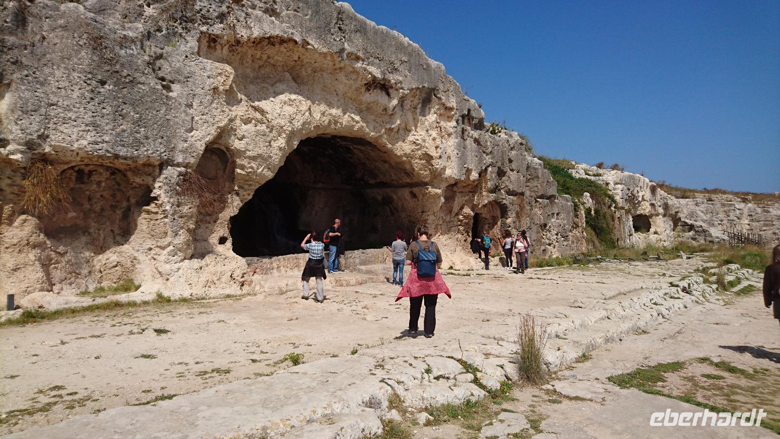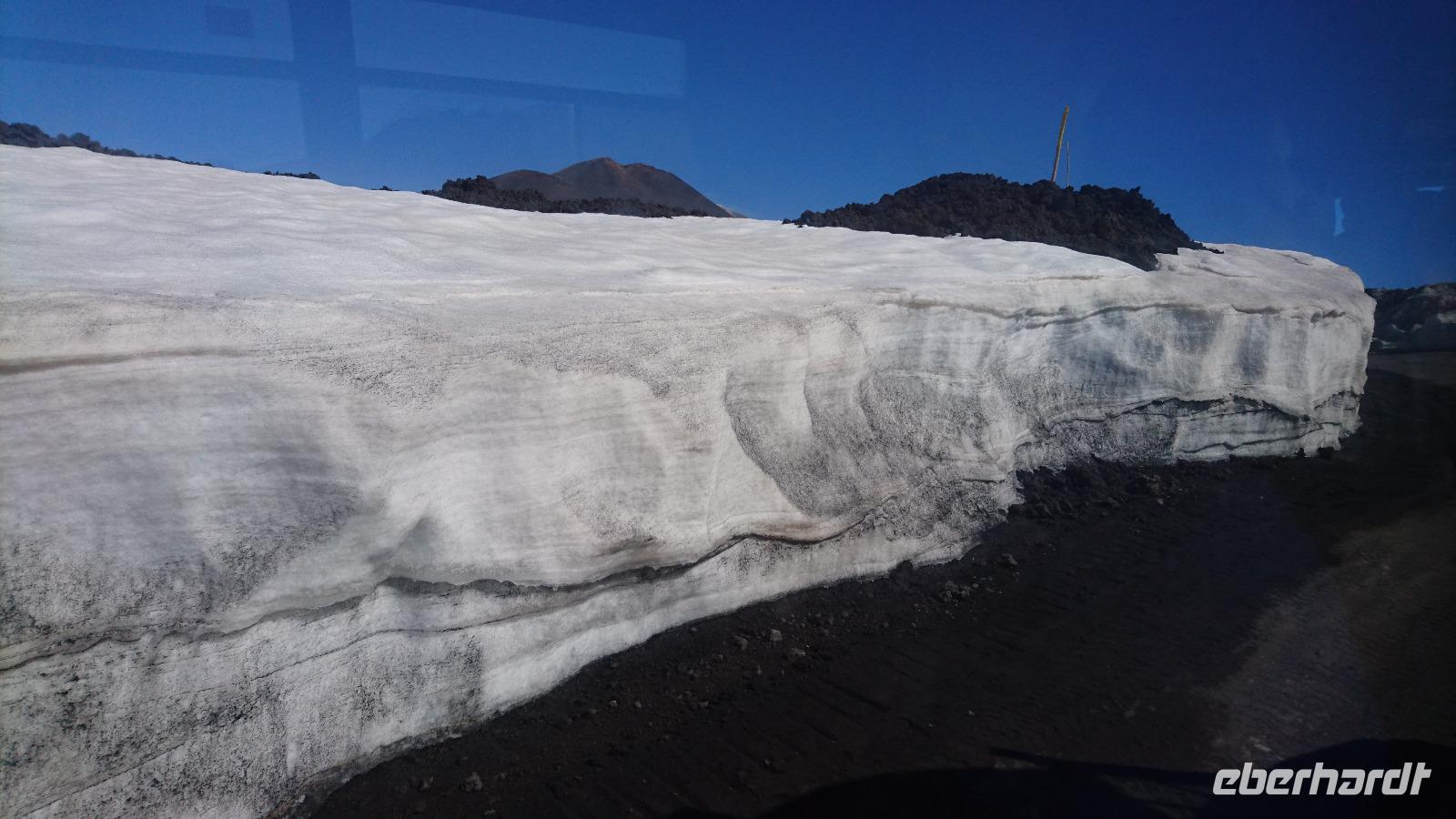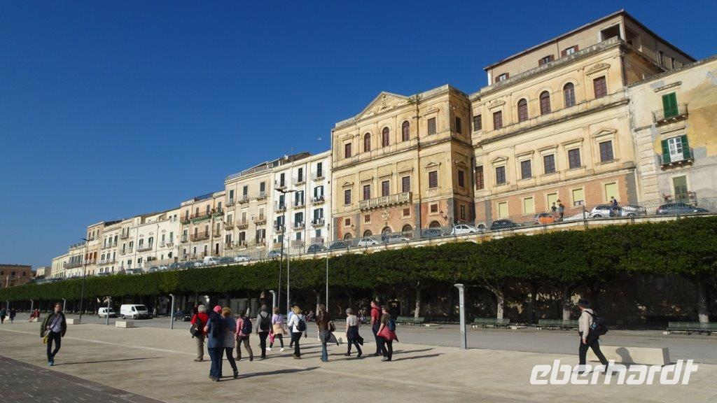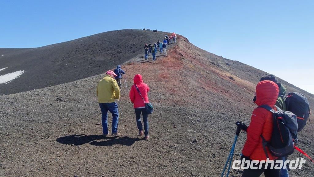 Für Urlaub war es vielleicht etwas früh, als der Hotelweckdienst uns anklingelte, doch gut gelaunt trafen wir uns kurz darauf am umfangreichen Frühstücksbuffet. Später erwartete uns Gertraude mit unserem heutigen Busfahrer Luca und Stefan erklärte uns grob den heutigen Tagesablauf. Wir fuhren darauf ein Stück in Richtung Palermo, bogen dann ab und fuhren vom Fuße des Ätna bis hinauf auf ca. 1.900 Meter Höhe. Hier konnten wir uns entscheiden, da das Wetter es zuließ, ob wir nur mit der Seilbahn auf rd. 2.500 Meter oder noch weiter mit den Allrad-Jeeps auf 2.900 Meter fahren wollten. Nach der Wahl ging es hinauf und wir erlebten unvergessliche Einblicke an den Silvesterkratern oder fast an der Spitze des 3.300 Meter hohen Vulkans bei einer geführten Wanderung zu den drei Kratern des letzten großen Ätna-Ausbruches 2002. So manch Stückchen Lava und viele eindrucksvolle Fotos kehrten nach rd. 3 Stunden mit uns zurück auf die untere Ebene der Auffahrt. Die Wolken zogen sich derzeit schon zusammen und die Seilbahn hinunter zum Bus verschwand laufend mitten in den Wolken. Schon das zu erleben, war ein Erlebnis! Zurück am Bus ging es gen Süden und nach einiger Zeit erreichten wir die Archäologischen Ausgrabungen von Syrakus. Mit einem ersten Blick auf die unzähligen Souvenirstände erreichten wir bald die Nekropole und das Theater. Dieses ist aufgrund seines Alters und des guten Erhaltungszustandes sehr beeindruckend. Danach ging es hinab in den Steinbruch und zur Grotte „Ohr des Dionysios", deren Klangverstärkung wir natürlich ausprobieren mussten. Später fuhren wir in den Ort Syrakus, bummelten mit Gertraude und von Stefan als Gruppe zusammen gehalten durch den Ort, sahen Tempelruinen und Dom, ehe wir am Hafen noch eine der teuersten modernen Segeljachten erblickten und die Promenade zurück zum Busparkplatz liefen. Nach einer Rückfahrt durch Orangen- und Zitronenpantagen, immer mit Blick zum alles überragenden Ätna erreichten wir wieder unser Hotel und trafen uns bald darauf zum gemeinsamen Abendessen, ehe der Tag individuell ausklang.
