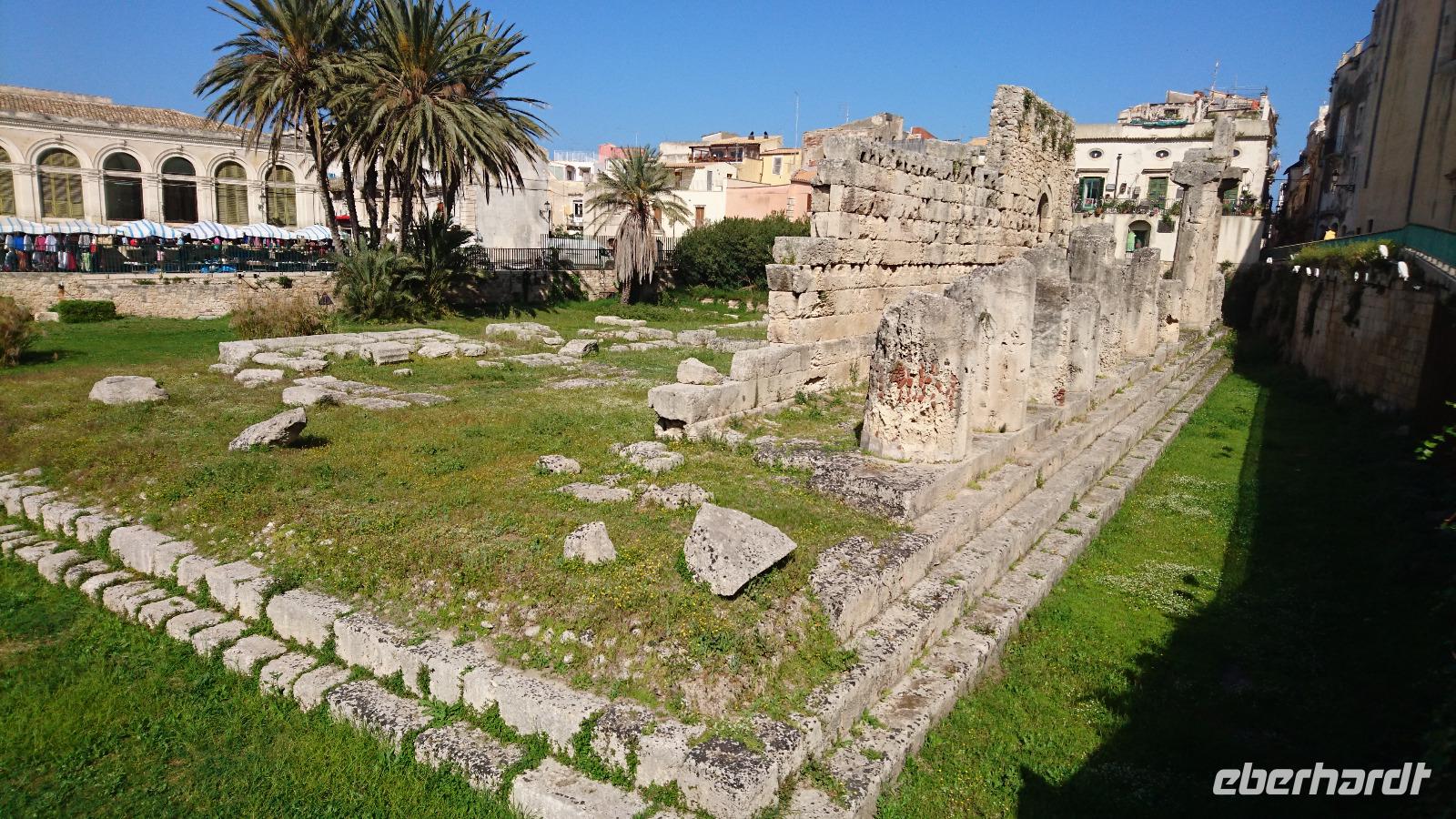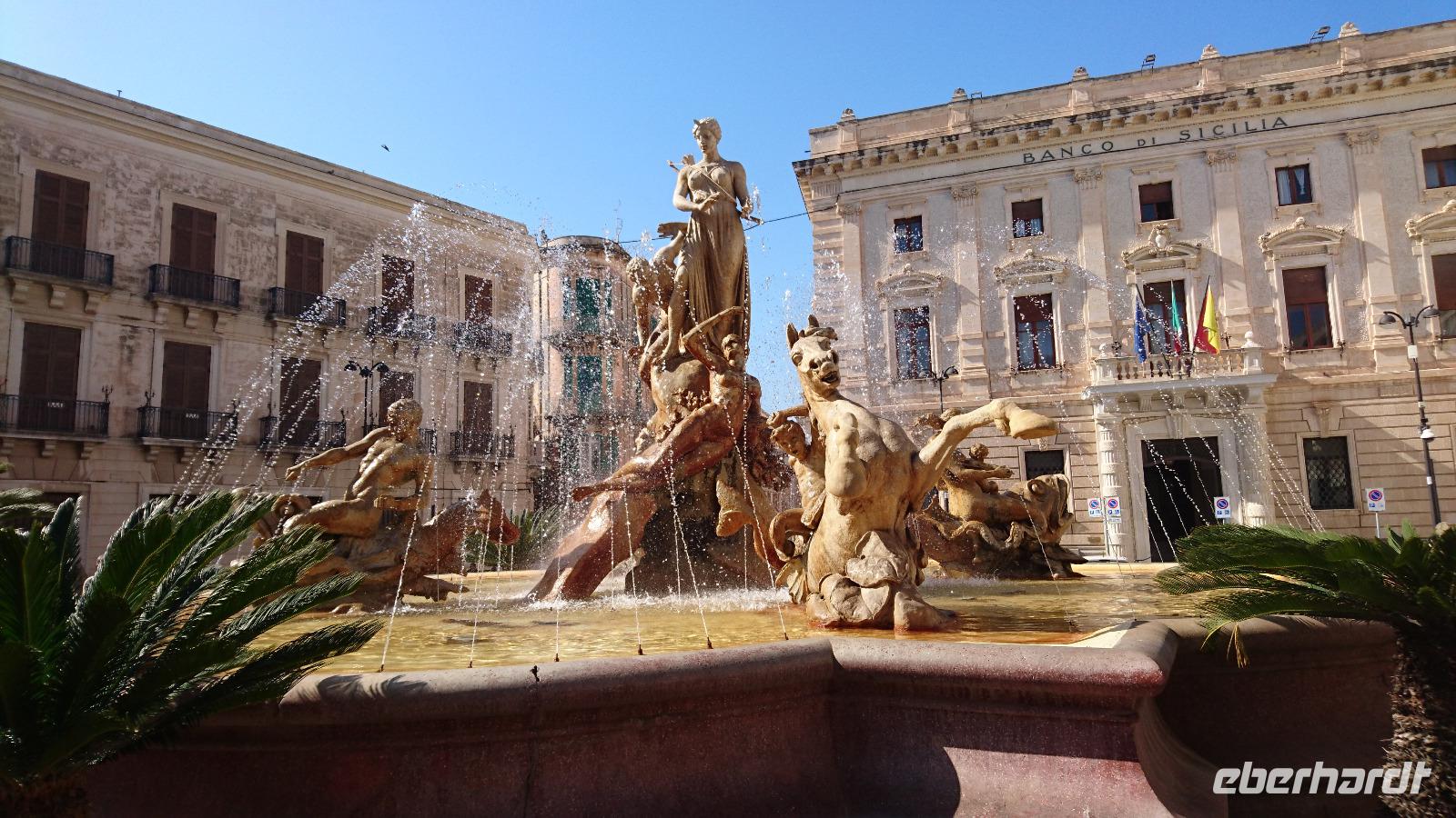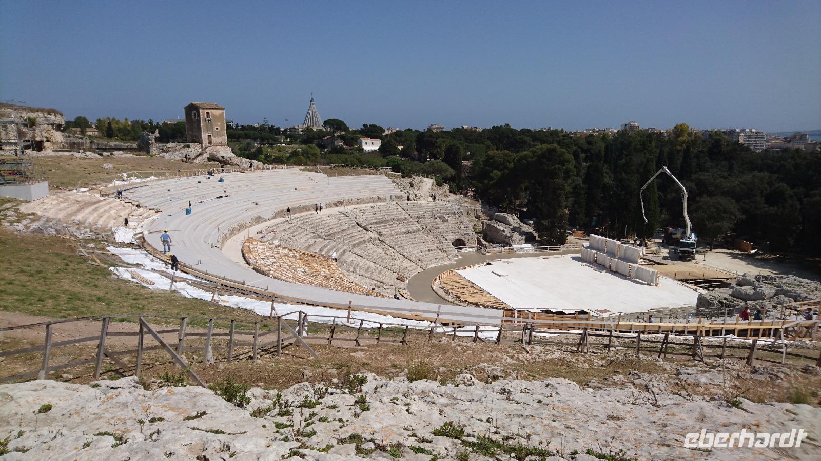 Für Urlaub war es vielleicht etwas früh, als der Hotelweckdienst uns anklingelte, doch gut gelaunt trafen wir uns kurz darauf am umfangreichen Frühstücksbuffet. Später erwartete uns Gertraude mit unserem heutigen Busfahrer Luca und Stefan erklärte uns grob den heutigen Tagesablauf. Wir fuhren darauf ein Stück in Richtung Palermo, bogen dann ab und fuhren vom Fuße des Ätna bis hinauf auf ca. 1.900 Meter Höhe. Hier konnten wir uns entscheiden, da das Wetter es zuließ, ob wir nur mit der Seilbahn auf rd. 2.500 Meter oder noch weiter mit den Allrad-Jeeps auf 2.900 Meter fahren wollten. Nach der Wahl ging es hinauf und wir erlebten unvergessliche Einblicke an den Silvesterkratern oder fast an der Spitze des 3.300 Meter hohen Vulkans bei einer geführten Wanderung zu den drei Kratern des letzten großen Ätna-Ausbruches 2002. So manch Stückchen Lava und viele eindrucksvolle Fotos kehrten nach rd. 3 Stunden mit uns zurück auf die untere Ebene der Auffahrt. Die Wolken zogen sich derzeit schon zusammen und die Seilbahn hinunter zum Bus verschwand laufend mitten in den Wolken. Schon das zu erleben, war ein Erlebnis! Zurück am Bus ging es gen Süden und nach einiger Zeit erreichten wir die Archäologischen Ausgrabungen von Syrakus. Mit einem ersten Blick auf die unzähligen Souvenirstände erreichten wir bald die Nekropole und das Theater. Dieses ist aufgrund seines Alters und des guten Erhaltungszustandes sehr beeindruckend. Danach ging es hinab in den Steinbruch und zur Grotte „Ohr des Dionysios", deren Klangverstärkung wir natürlich ausprobieren mussten. Später fuhren wir in den Ort Syrakus, bummelten mit Gertraude und von Stefan als Gruppe zusammen gehalten durch den Ort, sahen Tempelruinen und Dom, ehe wir am Hafen noch eine der teuersten modernen Segeljachten erblickten und die Promenade zurück zum Busparkplatz liefen. Nach einer Rückfahrt durch Orangen- und Zitronenpantagen, immer mit Blick zum alles überragenden Ätna erreichten wir wieder unser Hotel und trafen uns bald darauf zum gemeinsamen Abendessen, ehe der Tag individuell ausklang.