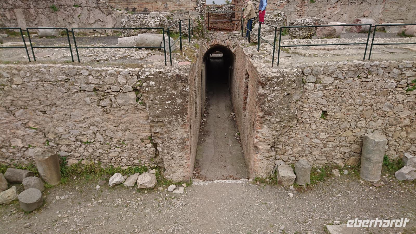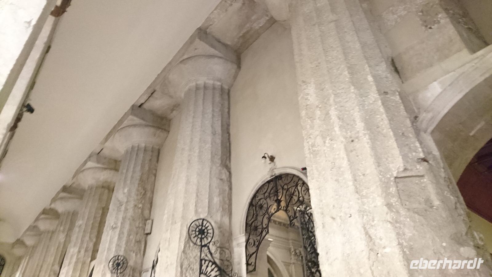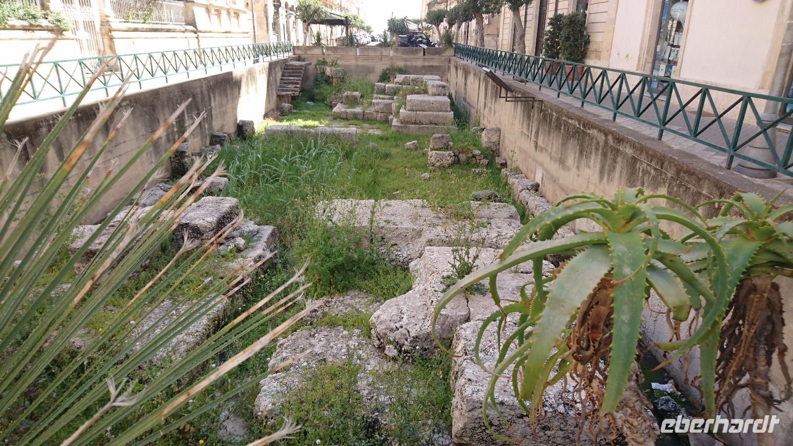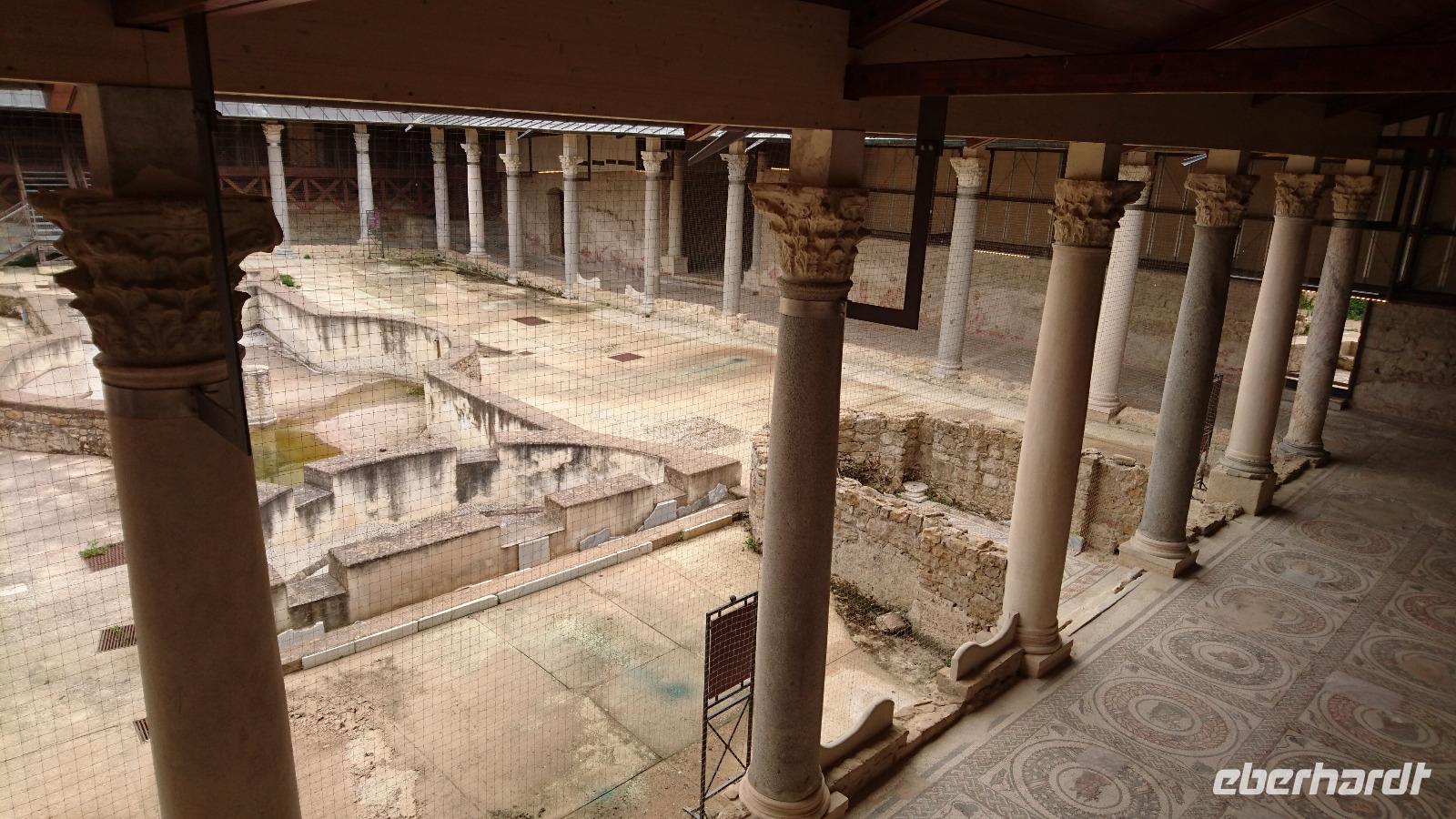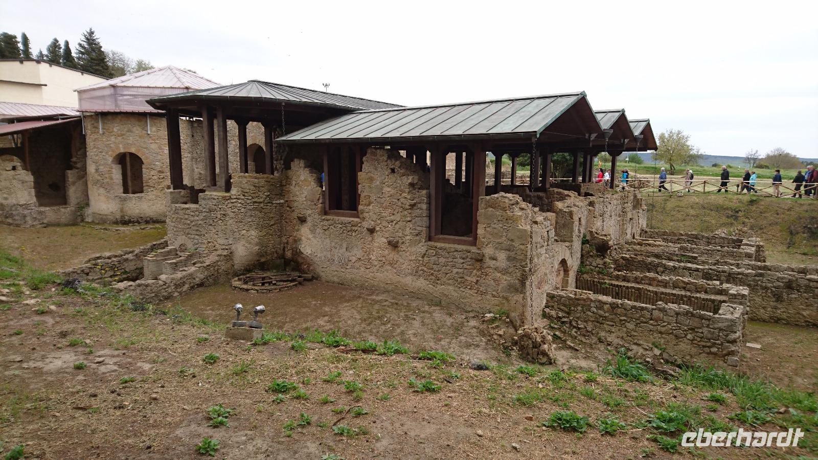 Der frühe Vogel... war kaum eher wach als wir. Das Frühstück am Buffet schmeckte hervorragend und das Kofferladen in Paolos Bus verlief darum recht schnell. Dann begann die lange Fahrt zur Villa Romana. Vulkanasche, Lava und das schnelle Vergessen der Menschen im heute recht abgeschiedenen Tal der Villa führten einst dazu, dass dieses römische Herrschaftshaus nicht geplündert, sondern fast vollständig erhalten uns, also der Nachwelt erhalten blieb. Wir staunten über die alte Fußbodenheizanlage, die knapp 2.000 Jahre alte Kanalisation, die zugehörigen Sitztoiletten, die klare Struktur der Raumaufteilungen und vor allem die sehr gut erhaltenen Mosaike auf den Raumböden. Gertraude führte uns mit viel historischem Wissen und erläuterte uns Bau, Erweiterung, Auszug, Vergessen und Wiederfund der Villa, ehe wir noch einmal mehr in die sizilianische Geschichte eintauchen würden. Doch vorher gab es eine kleine Mittagspause am Museum und dann wieder einige Kilometer Fahrt zum legendären Tal der Tempel, wo über Kilometer hin einst der große und bedeutende Ort Agrigento existierte, von dem heute nur noch Ruinen zeugen. Jedoch die dort angelegten Straßen, die gewaltige Größe der Säulen der meist verfallenen Tempel, aber auch der fast vollständig erhaltene Concordia-Tempel zeugen heute noch von der Macht der Erbauer, jedoch auch vom Untergang jener Macht. Vielleicht symbolisiert dies die absichtlich liegend angelegte Figur des gefallenen Ikarus sehr deutlich. Dass der Mensch auch einst Mächtiges leicht zerstören kann, zeigte die hiesige Nekropole, die man in die meterdicke Stadtmauer einbrachte und die dadurch eben diese Mauer wie einen Käse durchlöcherte, was deren Schutzfunktion arg schmälerte. Mit vielen tollen Eindrücken im Gepäck, die uns immer wieder in Gedanken nach Griechenland zu versetzen schienen, ging es nun von der Küste ins Landesinnere zu unserer nächsten Unterkunft, einem Landgut mit Olivenbäumen, zugehöriger Ölproduktion und ländlich-sittlichem Charme. Hier checkten wir bald in unsere Zimmer ein und trafen uns nach einer kleinen Ruhepause zum Abendessen wieder. Es erwartete uns ein Feuerwerk der sizilianischen Küche, schmackhafte Vorspeisen, leckere Hauptgänge, ein süßes Dessert und dazu die Atmosphäre des Landgutes. Das passte irgendwie alles prima zusammen. Nach dem Essen war es schon dunkel und wir legten uns bald zur Ruhe.