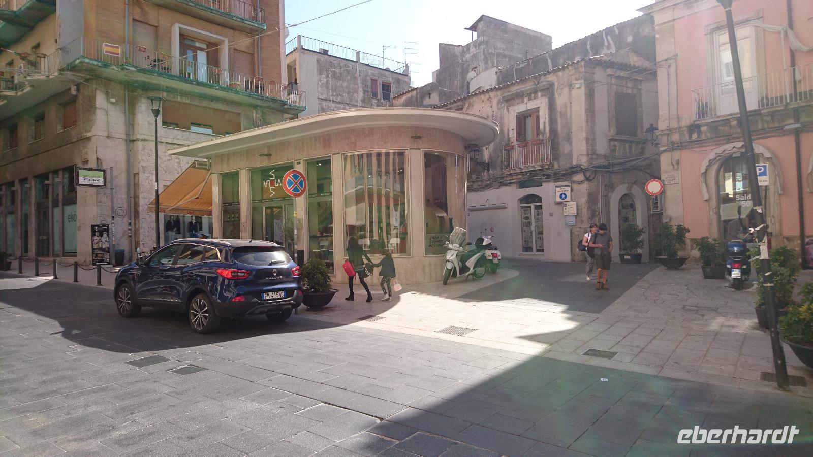Pünktlich und ohne Komplikationen erreichten wir Süditalien, bekamen bald unsere Koffer und trafen am Ausgang des Sicherheitsbereiches im Ankunftsterminal auf unsere Reiseleiterin Gertraude, die uns nach kurzem Durchzählen hinaus zum modernen Reisebus vor dem Terminal führte. Auf der Fahrt ins Hotel Naxos Beach wählten sie und Giovanni, unser Fahrer für diesen Tag, bewusst die Durchquerung der Innenstadt, denn der Außenring um Catania sollte sogar am Sonntag Nachmittag sehr dicht befahren sein. Gertraude nutzte die Zeit der Fahrt, um uns erste Informationen über Italien, Sizilien und natürlich Catania zu geben. Angeregt von Stefan gab sie uns dann noch weitere Hinweise, wie man sich am Besten auf der Insel verhält, ob das Wasser aus dem Wasserhahn Trink- oder eher Nutzwasser ist, wo wir nach dem Check-In im Hotel etwas Einkaufen konnten und wie die nächsten Stunden, auch der nächste Morgen ablaufen würden.