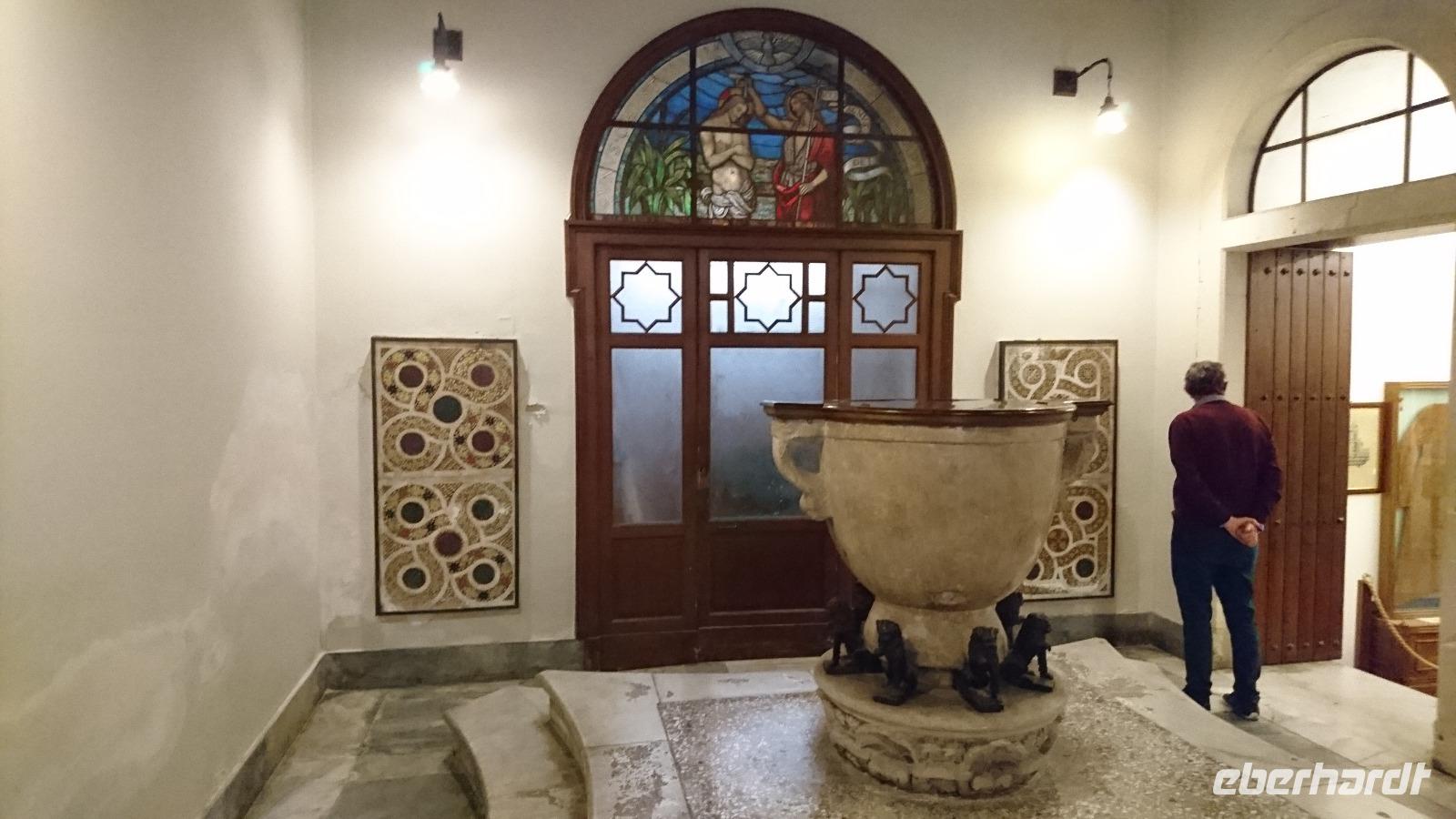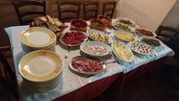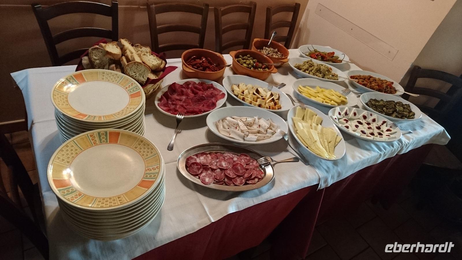 Wenig später erreichten wir unser Hotel auf einer alten Lavazunge am Meer und bezogen bald darauf unsere Zimmer im Haupthaus. Die Zeit bis zum Abendessen verbrachten wir mit einem Bummel oder Krafttanken und trafen uns am Abend am umfangreichen Buffet wieder. Dabei verkosteten wir sizilianischen Fisch, verschiedene Gemüse und die berühmten südlichen Süßspeisen und ließen uns dazu Wasser und Wein schmecken. Für manchen von uns klang der Tag an der Hotelbar aus und wir freuten uns auf die kommenden Tage.