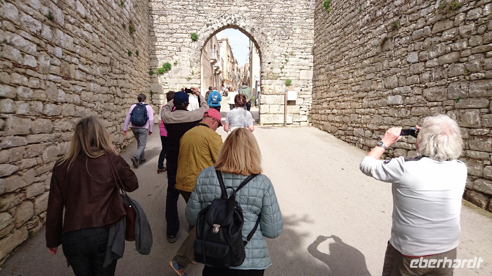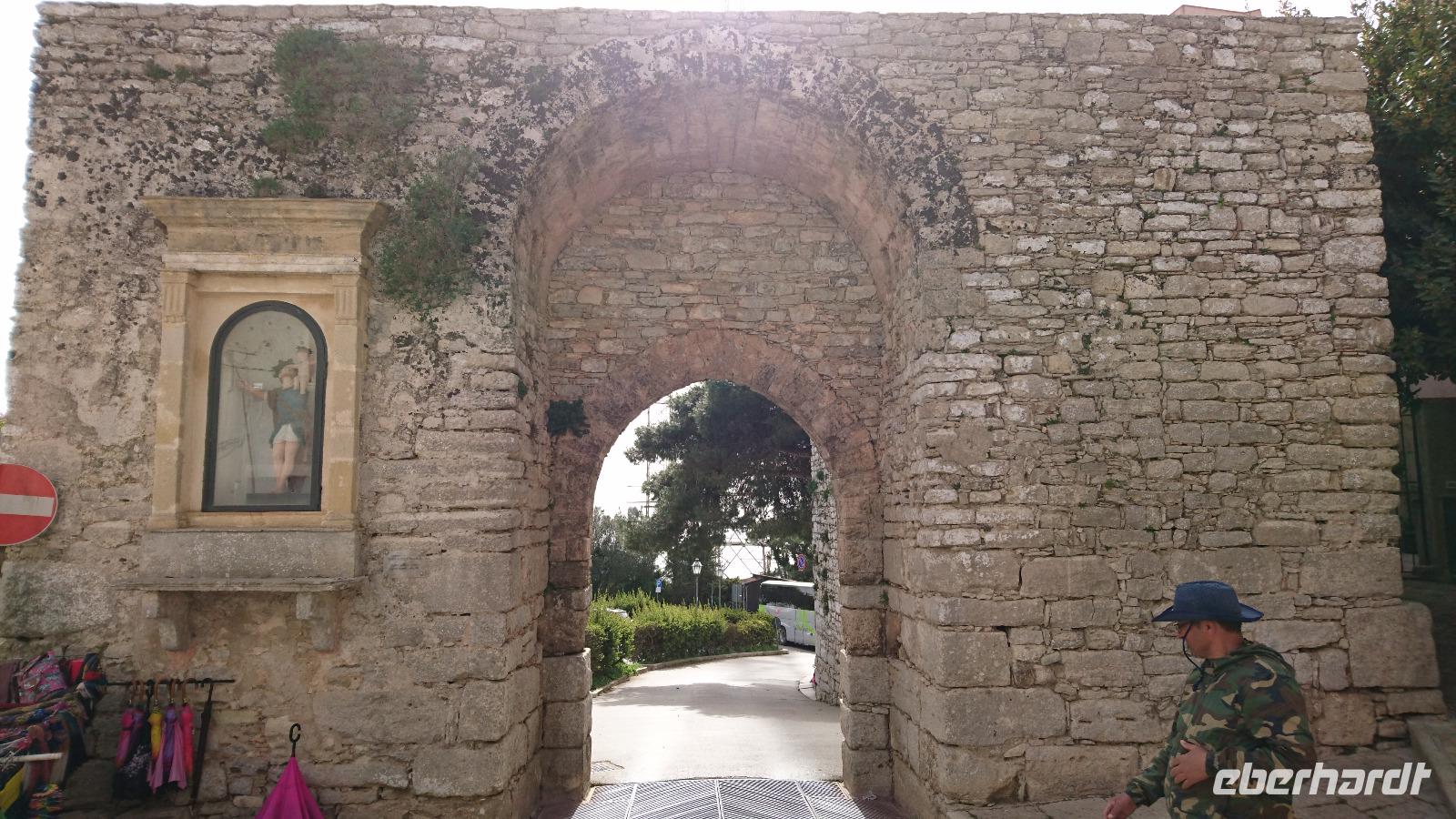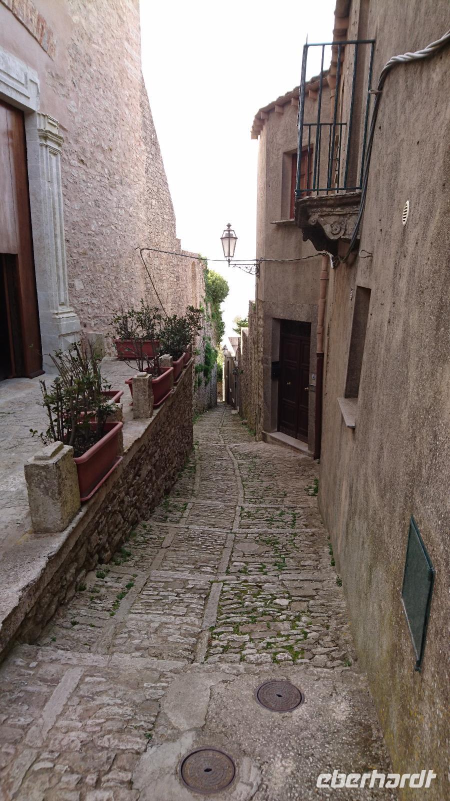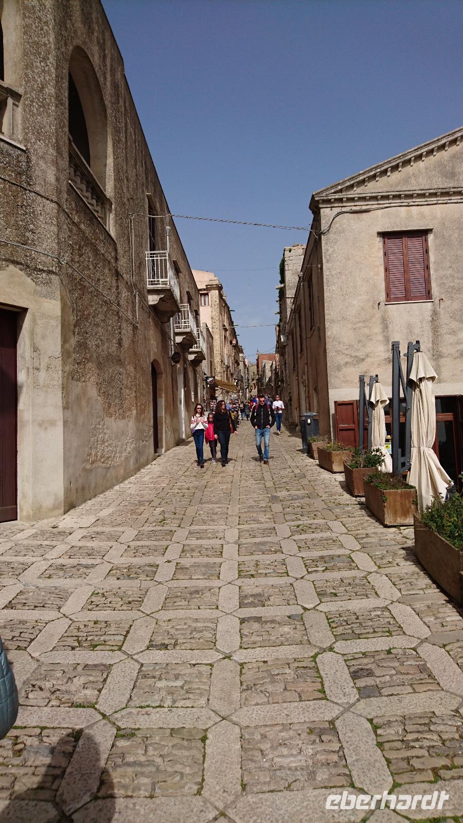 Noch einmal Ruinen? Vielleicht dachte das der Eine oder Andere von uns, doch was wir in Selinunte sahen, war einzigartig. Zweigeteilt, links und rechts der ehemaligen mächtigen Stadt Selinunte zeugen heute noch riesige Tempelruinen vom Reichtum und dem Gottvertrauen der einstigen Bewohner. Und da diese über eine sehr umfangreiche Götterwelt verfügten, dabei stets darauf achteten, keinen der wichtigen und ihr Leben bestimmenden Gottheiten zu vergessen, entstanden eben für jeden der wichtigen Götter Tempel. Einer größer und schöner als der andere. Dazwischen gab es Straßen, die heute noch als solche gerade und ohne Verwerfungen die verschiedensten Herrscher, aber auch Vulkanaktivitäten, Erdbeben, tektonische Verwerfungen und Erdrutsche überlebten. Nach dem Besuch der beiden Teile der Ausgrabungen von Selinunte fuhren wir ein Stück am Meer entlang, stoppten für Fotos am ersten Salinegebiet, wo riesige Wasserbecken durch Wasserpumpmühlen befüllt und geleert werden, um schließlich gutes Meersalz abbauen zu können. Riesige Haufen des weißen Goldes lagen an den Beckenrändern und selbst die Luft schien nach Salz zu schmecken. Von hier fuhren wir weiter und erreichten ein Agrarrestaurant direkt an einer Saline. Hier gab es gut gesalzene, aber trotzdem köstlich gekochte und zubereitete Speisen für uns zu verkosten, dazu Wein der Region und das eine oder andere zum Stopfen unserer Wissenslücken über die Entwicklung der Salzgewinnung am Meer. Salz wurde in vergangenen Jahrhunderten wirklich wie Gold gehandelt und so ist es nicht verwunderlich, dass auch nahe der Salinen gelegene Orte vom Salzabbau und Handel profitierten. So auch Erice auf einem der nahen Felsen. Trotzdem waren wir verwundert, dass Erice eigentlich eher eine Stadt der Süßigkeiten war und ist. Wenn wir schon gut salzig aßen, so kosteten wir nun gern Schokolade, Kekse, Pistazienmarzipan und anderes Edles. Manch einer nahm noch das eine oder andere Stück für die Lieben zuhause zum dortigen Verkosten mit. Gut gestärkt und mit vielen neuen Eindrücken und Fotos versehen, ging es darauf zur Rückfahrt auf ‚unser' Landgut, wo wieder köstlich und liebevoll zubereitete ländliche Abendkost auf uns wartete, ehe wir uns vom Tag erholten und in der Ruhe der Einsamkeit gut schliefen.