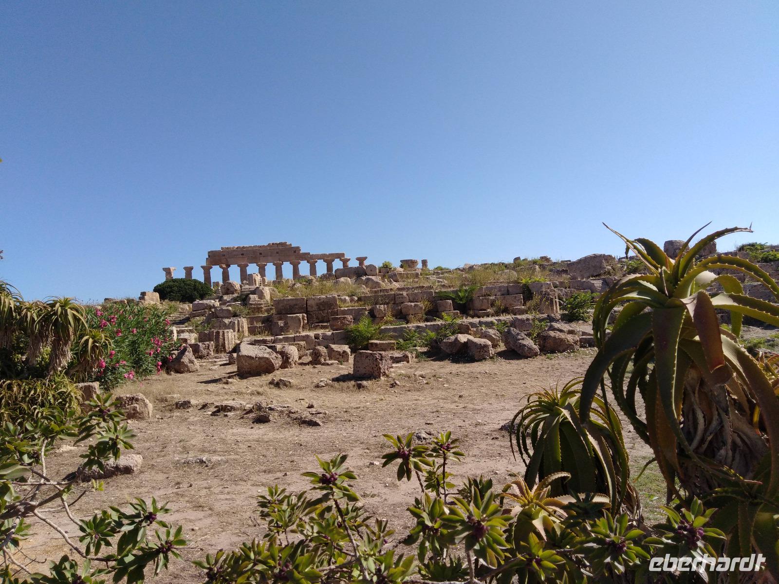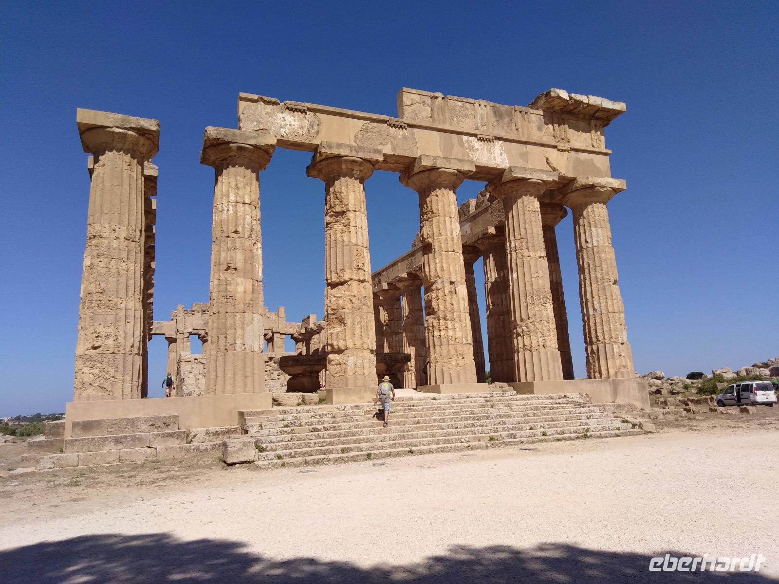 Frisch gestärkt nach einem ausgiebigen Frühstück erreichten wir die einzigartige Tempelstätte Selinunte, eine der größten Ausgrabungsstätten Europas. Wenig ist von den kampfeslustigen Selinuntern der Antike erhalten geblieben, unendliche Mühe und Kraft beim Errichten der Bauwerke wurde schon bald vergeudet durch Kriege, andere Scharmützel, Brände und Erdbeben. Trotz der vielen Trümmer bleiben dem Besucher die Eindrücke einer gigantischen Stadt mit hoch aufragenden Tempeln für Götter, die die Bewohner nicht vor ihrem Unheil zu schützen vermochten.
