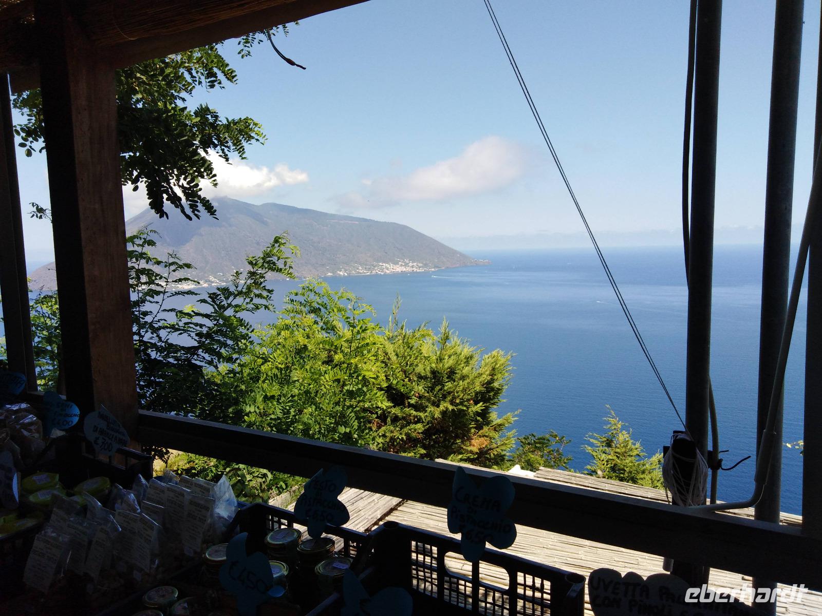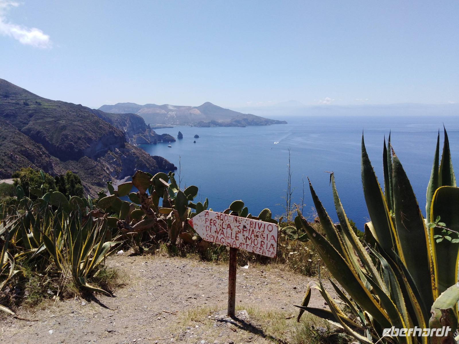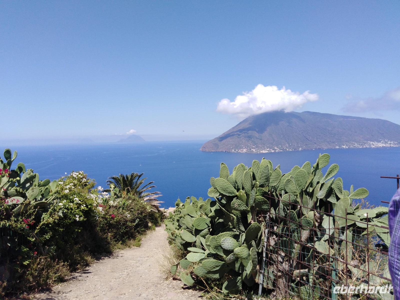 Nach einem zeitigen Frühstück gelangten wir mit unserem Bus schnell zu Hafen von Milazzo, wo unsere Fähre gegen 09.00 Uhr nach Lipari ablegte. Nach etwa einer Stunde am Ziel angelangt, der kleinen Fischerei- und Hafenstadt, stiegen wir sofort in einen einheimischen Bus ein, um eine Inselrundfahrt zu unternehmen. Lipari, das antike Lipara, ist die größte und am stärksten besiedelte Insel. Sie ist vulkanischen Ursprungs wie alle Inseln des Archipels, wir fuhren an mindestens drei ehemaligen Vulkanen vorbei zur Westküste, die sehr steil abfällt. Die Vegetation ist reichhaltig, sie wird bestimmt von Kapernsträuchern, Oleander und Olivenbäumen. Von einigen guten Aussichtspunkten vor allem auf der West- und Nordseite kann man die anderen Inseln wie Vulcano, Filicudi, Alicudi, Salina, Panarea und Stromboli in der Ferne entdecken. Wir sahen Obsidianfelder und Bimsstein, Strände und Dörfer wie Pinacorte.