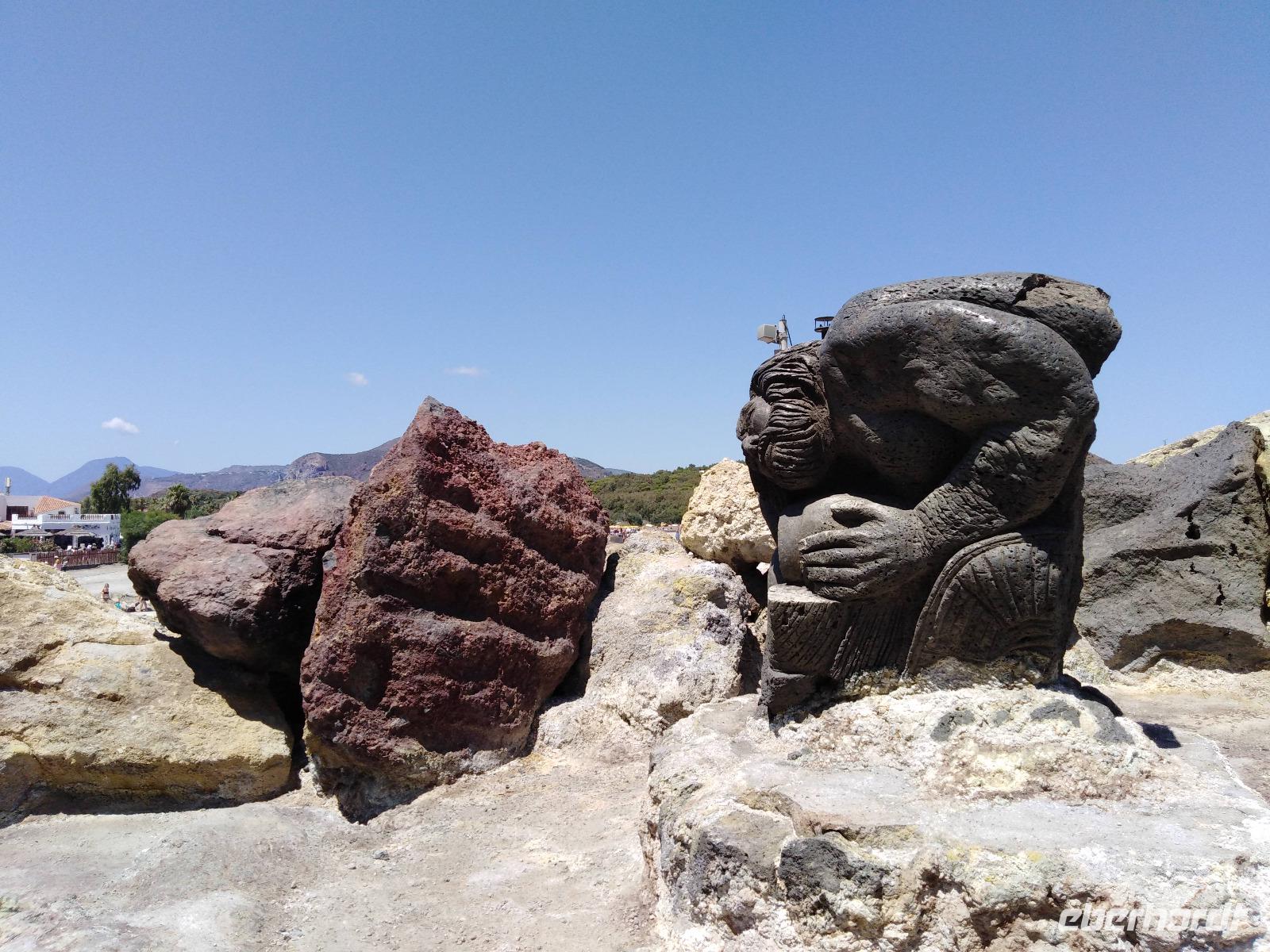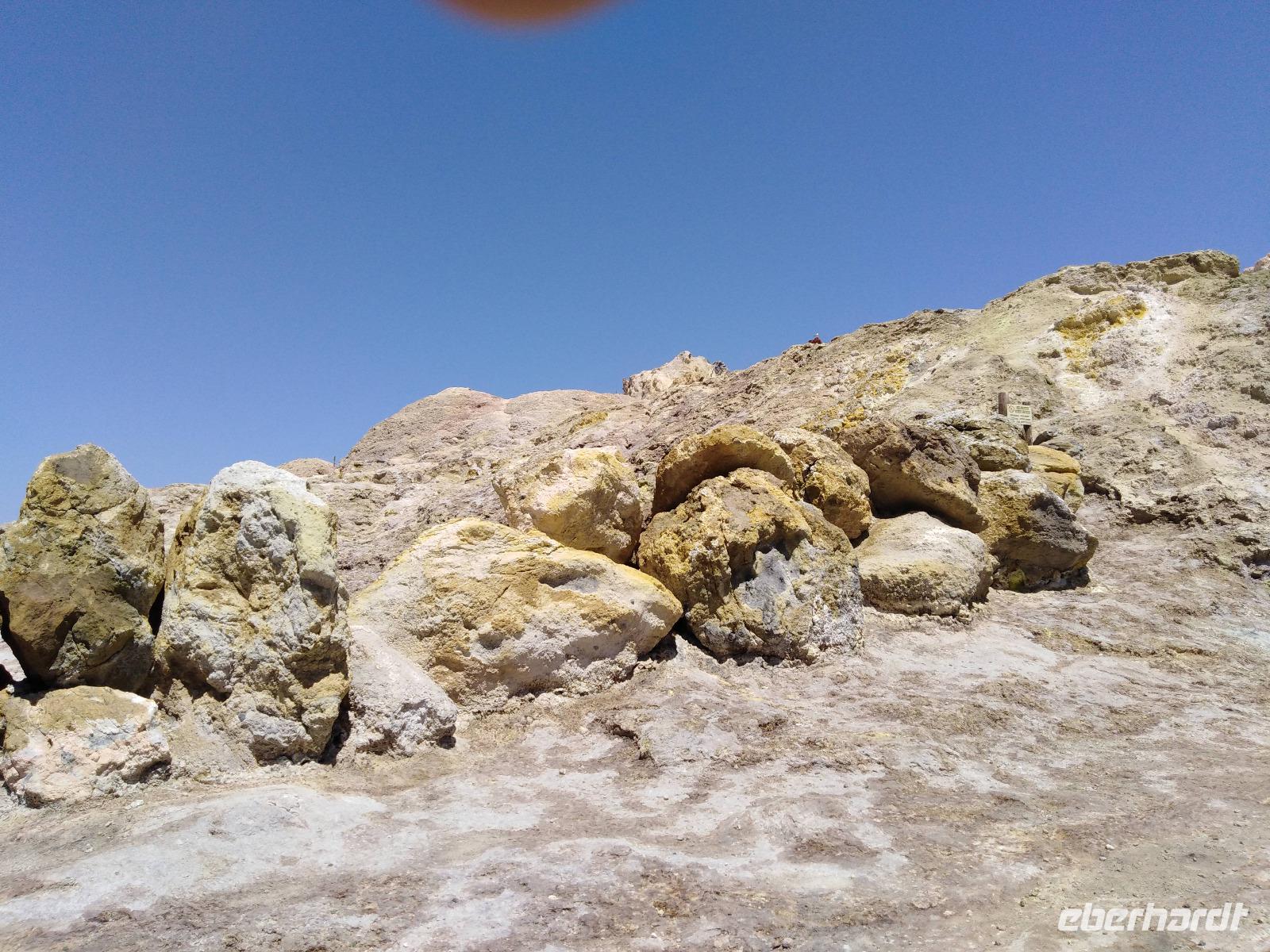 Zurück nach Lipari und nach einer Mittagspause fuhren wir erneut mit einem Tragflächenboot, diesmal nach Vulcano, der Insel des schwarzen Strandes und der Schwefelbäder. Trotz der großen Hitze stiegen einige Reisegäste in ein Schwefelbad, das in der prallen Sonne lag. Alle behaupteten danach, es hätte ihnen gut getan, etwas Gegenteiliges ließ sich nicht behaupten. Aber Schwefelgeruch lag in der Luft, das war unstrittig, sogar zum Abendessen im Hotel roch es noch gelegentlich nach „Vulkan".