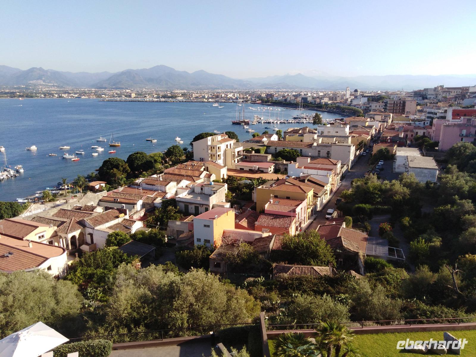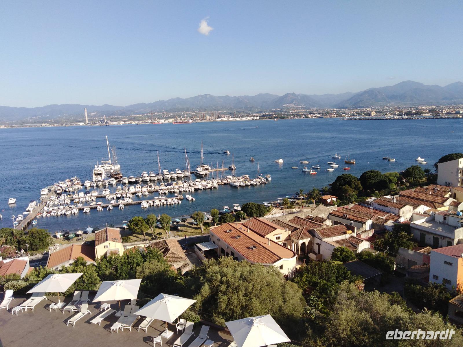 Anschließend fuhren wir die Küstenstraße weiter und gelangten zur Stadt Milazzo, auf der Halbinsel nördlich der Monti Peloritani gelegen. Sie reicht tief in die Gewässer des Golfo di Milazzo hinein und bildet den Ausgangspunkt für Fahrten zu den Äolischen Inseln.