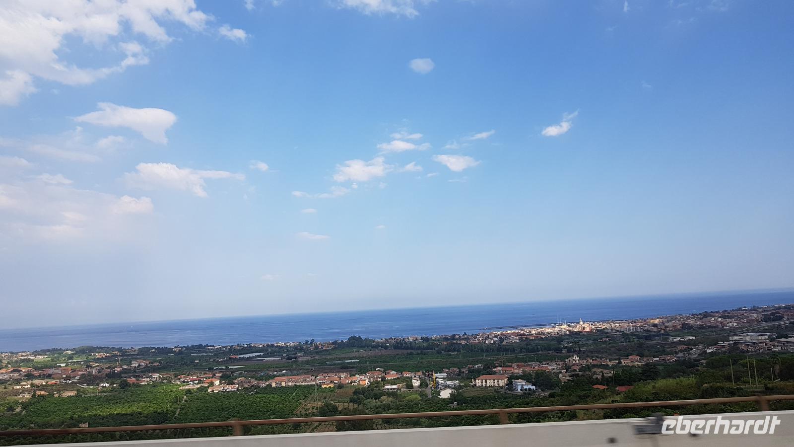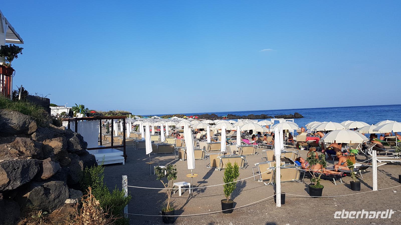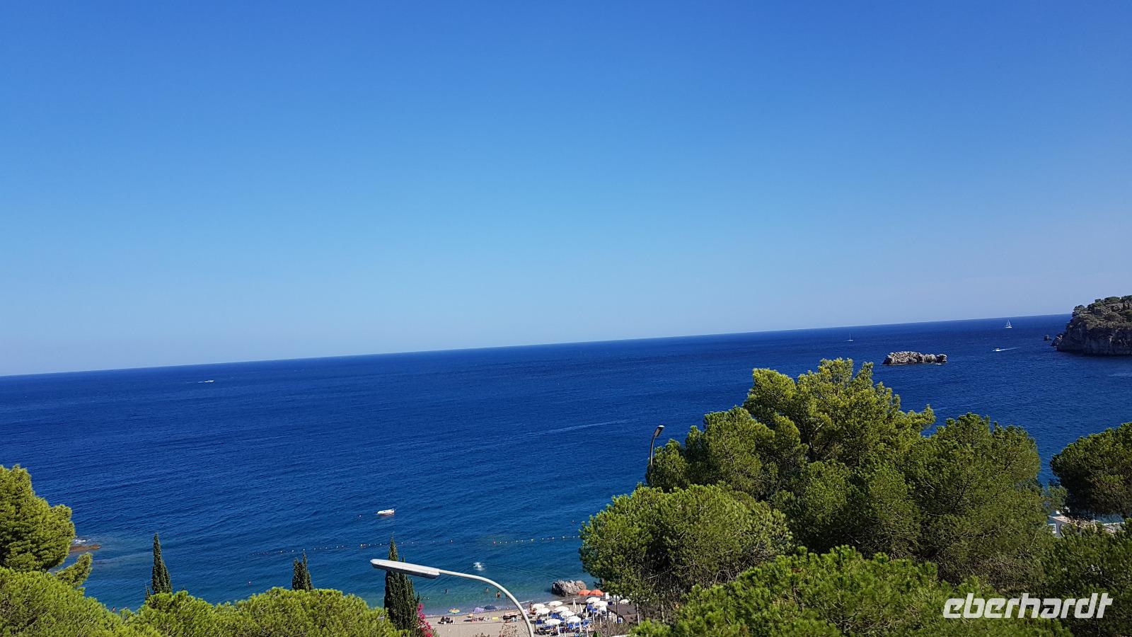 Von Berlin, Leipzig, Dresden und schließlich München aus starten wir unserem Abenteuer Sizilien entgegen. Alle Flüge sind pünktlich und wir kommen wohlbehalten in Catania an. Hier wartet bereits Renate auf uns- sie wird uns in dieser Woche ihre Insel zeigen. Sie lebt seit 31 Jahren auf Sizilien und das verspricht viele interessante Einblicke in das Leben der Menschen hier. Unser Fahrer Luca bringt uns vom Flughafen in Catania zu unserem Hotel nach Giardini Naxos. Eine tolle Anlage, so weitläufig, gepflegt und mit eigenem Zugang zum Meer. Rasch sind die Zimmer bezogen und dann geht es auf individuelle Entdeckungsreise. Wer wollte kam mit mir, wir bummelten die kleine Einkaufsstraße hinab, wagten den einen oder anderen Blick in die Cafes und Restaurants und bogen schließlich zum Strand ab. Türkisblaues Wasser empfing uns, die Sonne strahlte und am Strand entlang ging es zurück zum Hotel. Andere Gäste genossen den Nachmittag im Cafe oder am Strand des Hotels unter den Schilf-Schirmen. Nach der doch mageren Lufthansa-Kost freuten wir uns sehr auf das Abendessen und wurden mit tollen Buffetts verwöhnt. Eines für die Vorspeisen, eines für die Hauptmenüs und eines für die Desserts...Bei einem Gläschen Wein stießen wir auf den gelungenen Abend und eine schöne gemeinsame Woche an. Dann verabschiedeten wir uns, morgen geht es zeitig los- oje, und das im Urlaub...