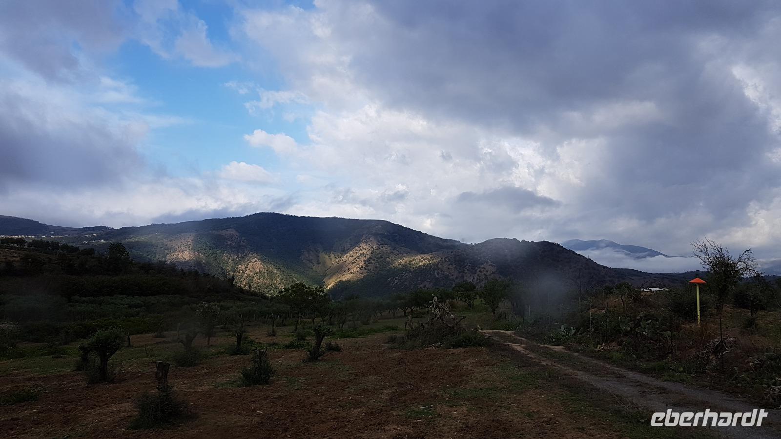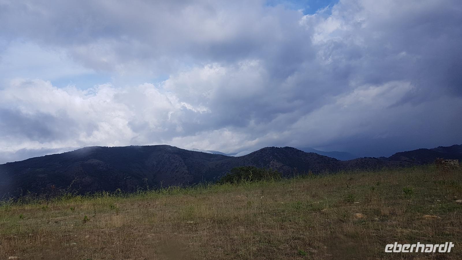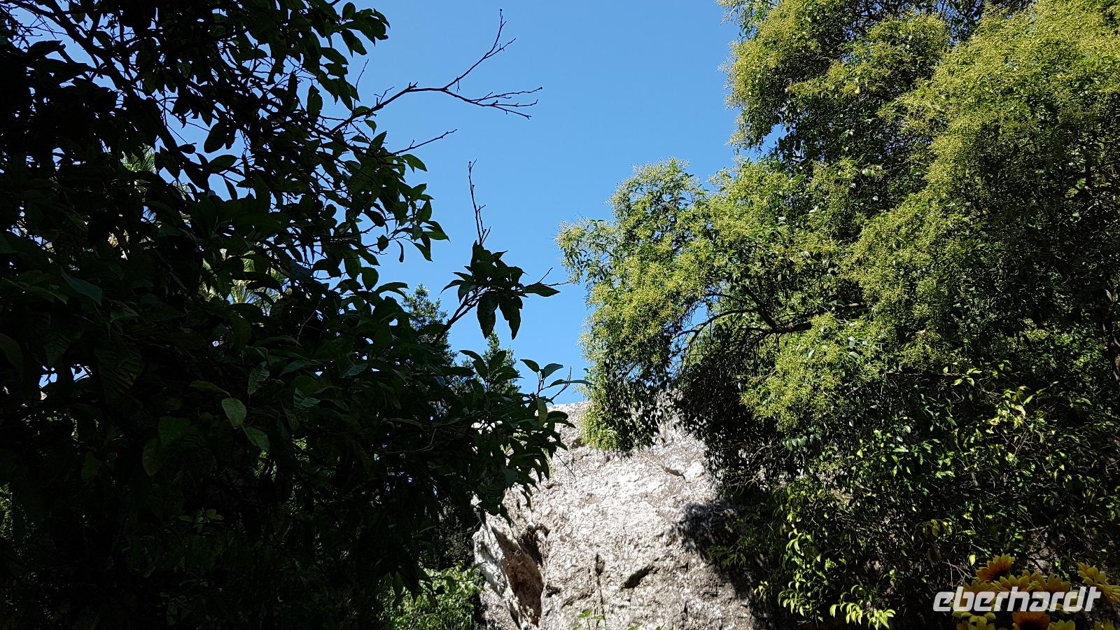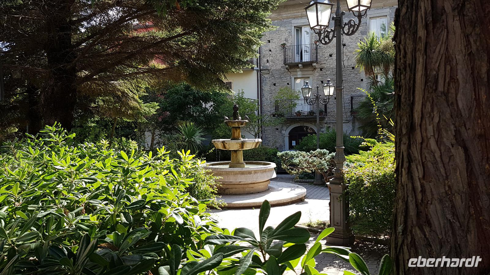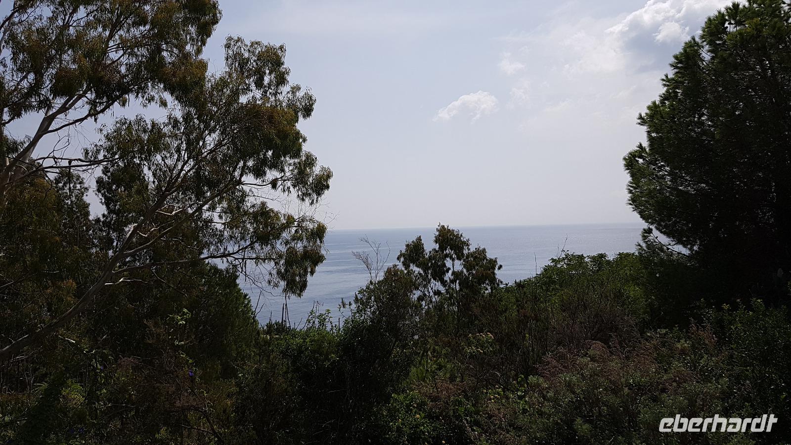 Heute nehmen wir Abschied von der Nordküste, unsere Reise führt uns durch das Nebrodi Gebirge zurück nach Giardini Naxos. Dunkle Wolken sind aufgezogen und wir verabschieden uns von Milazzo mit Blitz und Donner. Unser erstes Ziel dann heißt Montalbano Elicona. Einst eines der schönsten Dörfer Siziliens wird es heute zunehmend ruhiger im Ort. Viele ziehen weg, es fehlt an Arbeit und Perspektiven für junge Leute. In einem Cafe genießen wir erst einmal einen leckeren Espresso, dann geht es weiter. Leider wird das Castell gerade gebaut, so können wir es nicht besuchen, nutzen aber die Zeit für einen Spaziergang durch den Ort. Auf den Straßen sind zum Teil Ornamente aufgemalt und Renate erzählt uns, dass das quasi Vorlagen sind für die Blumenteppiche, die einmal im Jahr ausgelegt werden. Dann treffen sich traditionelle Gruppen hier, alle haben ihr eigenes Enblem und Wappen, das sehen wir auch an vielen Balkonen. Dann geht es weiter und Luca fährt uns sicher durch das Nebrodi-Gebirge mit seinen engen Serpentinen. Dann halten wir und ein kurzer Spaziergang führt uns zum Adlerfelsen.