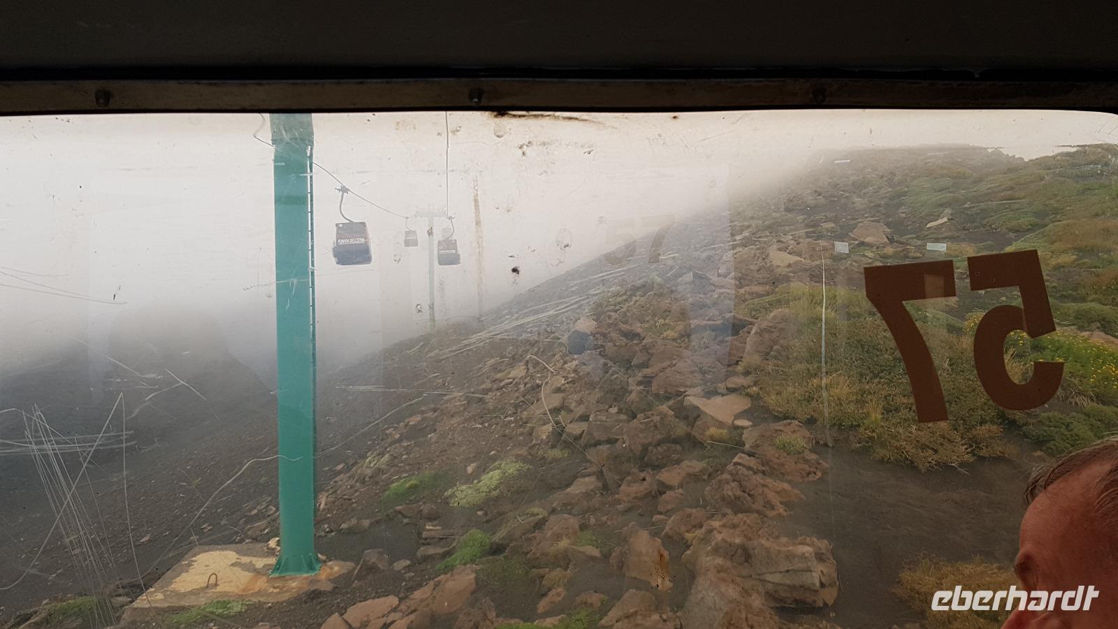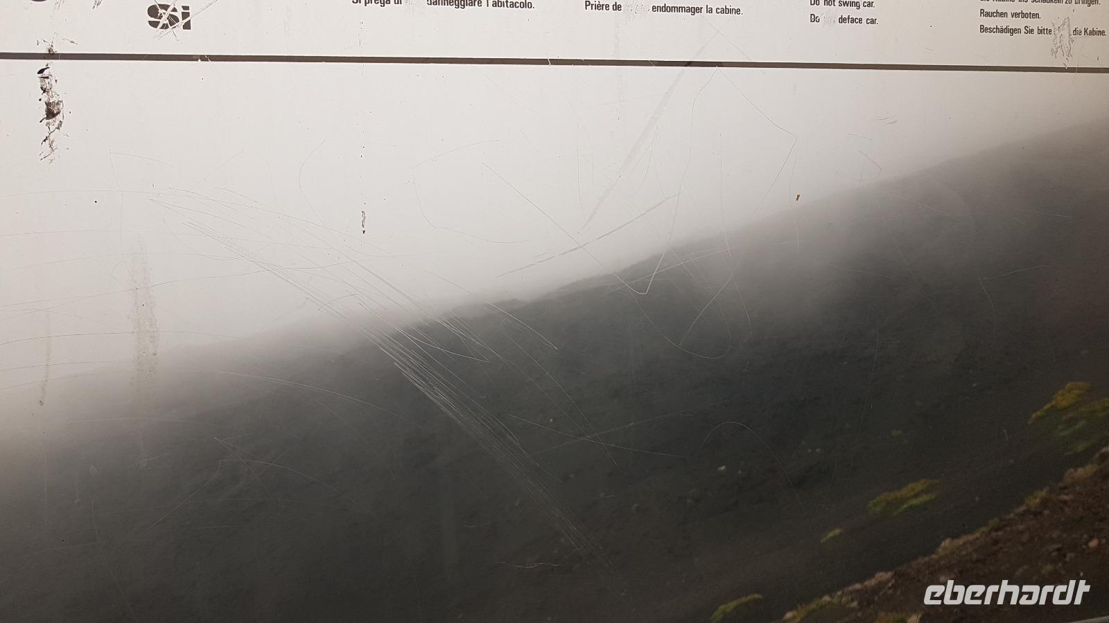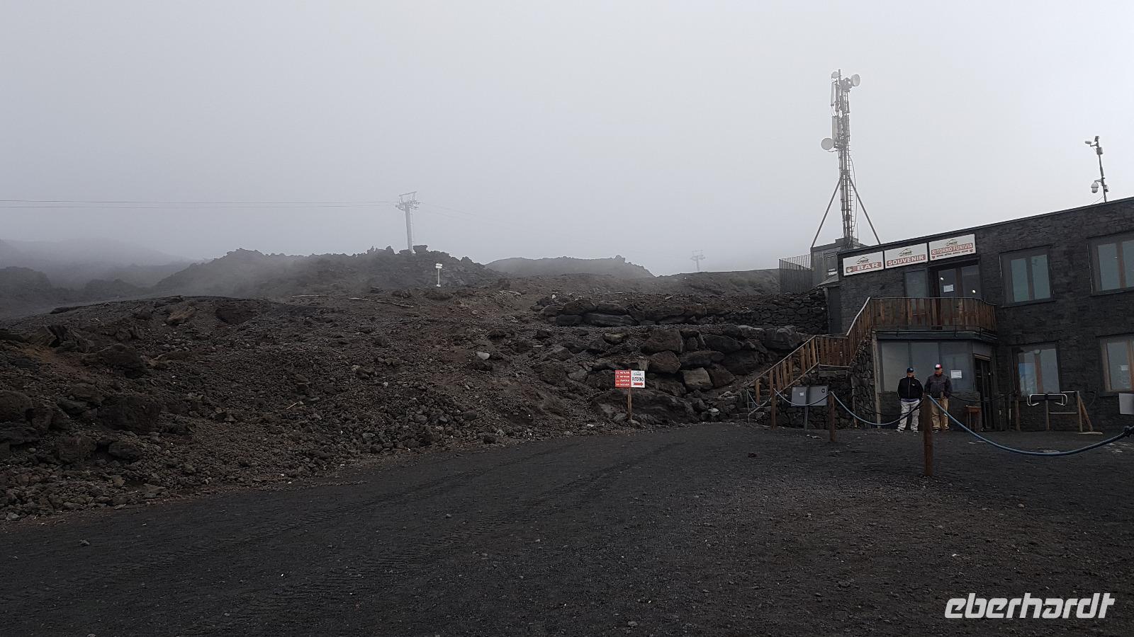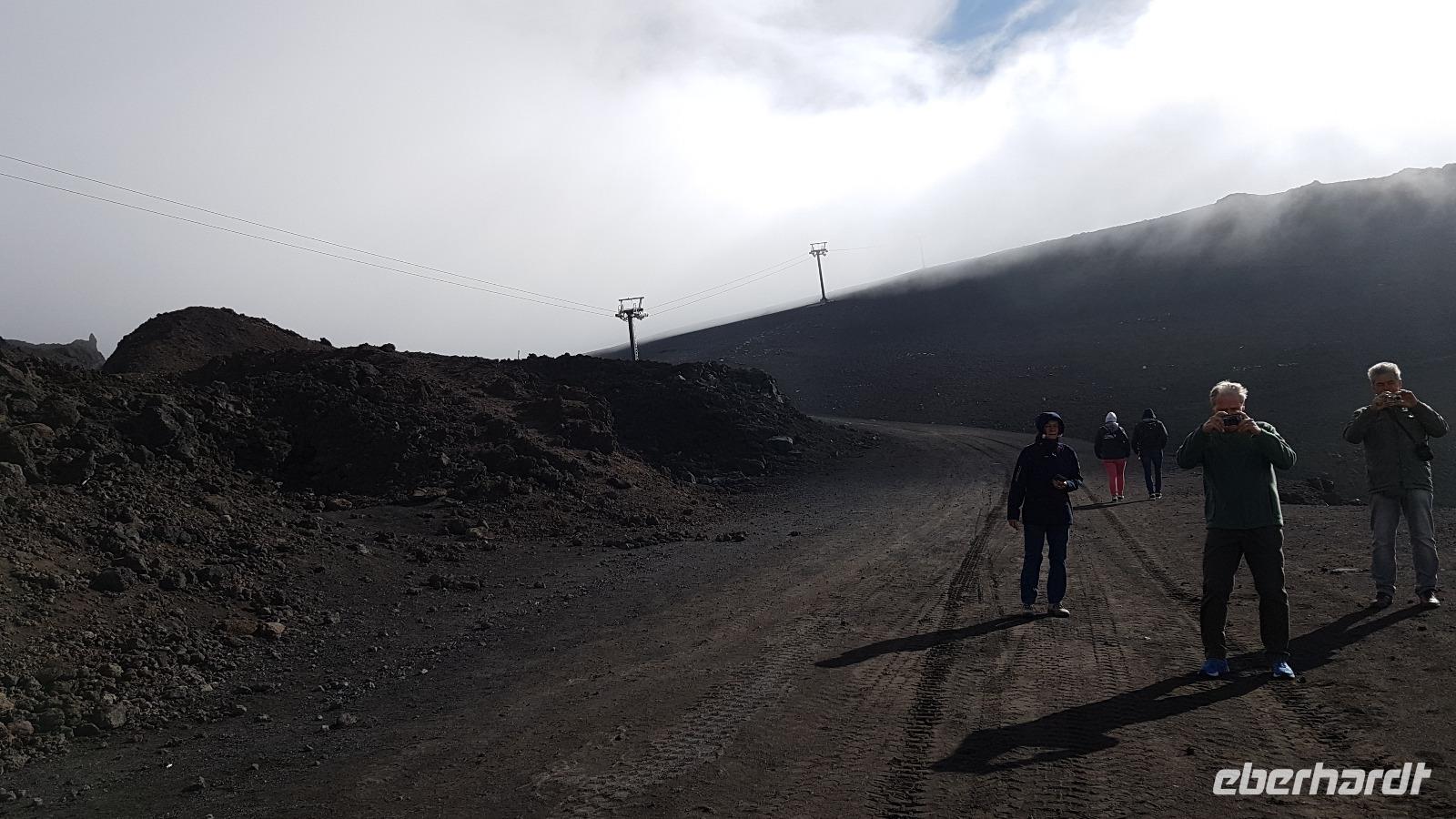 Tatsächlich fuhren wir bereits 7:45 Uhr los und das erwies sich als ziemlich richtig. Noch vor den vielen Ausflüglern erreichten wir den Ätna und konnten mit der Seilbahn nach oben fahren. Doch unterwegs bemerkten wir bereits die vielen Wolken, und selbst die Bergstation der Seilbahn war in den Wolken nicht mehr auszumachen. Da half alles nichts, ein kleiner Spaziergang Richtung Hauptkrater mußte genügen. Die Bergführer verhießen für den Vormittag keine gravierende Wetterbesserung und so blieben auch die Unimogs vorerst unten. Der Wettergott meinte es aber doch gut mit uns, für einige Fotos riss die Wolkendecke auf und wir konnten die Hauptkrater sehen. Dann ging es wieder talwärts, nun kam zwar die Sonne, damit aber auch die vielen, vielen, vielen Besucher...Nach einem kleinen Imbiss vor Ort fuhren wir weiter Richtung Syrakus. Unterwegs stoppten wir noch einmal an einem Aussichtspunkt und als Überraschung hatte ich eine sizilianische Spezialität mitgebracht: es gab Limoncello- wo passte es besser, diesen zu probieren als hier am Ätna, wo bekanntermaßen die leckersten Zitronen wachsen.