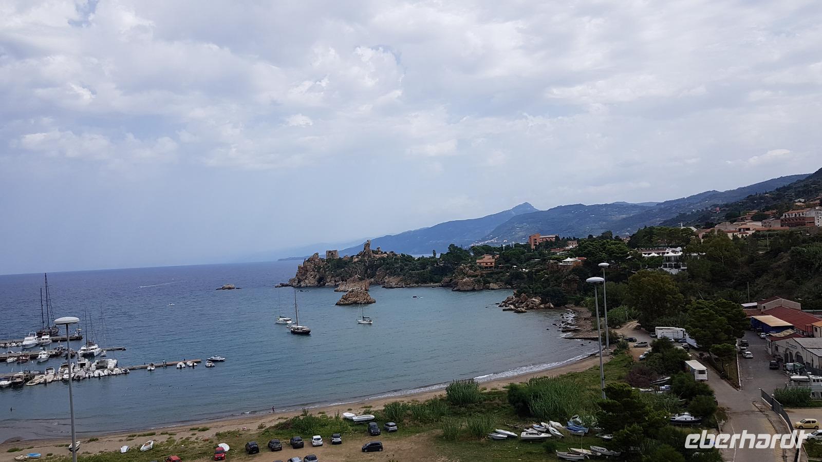 Durch das Gebirge und an der Küstenstraße entlang- wir genossen die Fahrt nach Cefalu besonders. Am Leuchtturm stiegen wir dann aus und spazierten in die Stadt hinunter. Hier besuchten wir die Kathedrale, die ebensolche Mosaiken besaß, wie wir sie in der Capella Palatina gesehen hatten. Ein kleiner Bummel anschließend führte uns zu einer antiken Wasch-Stelle, als die Frauen ihre Wäsche noch hier gemeinsam wuschen und dann weiter hinunter an den wunderschönen Strand. Wieder hatte jeder individuell Gelegenheit, dieses schöne Städtchen kennenzulernen, sei es am Strand, bei einem Bummel oder einfach beim Eis-Essen. So verging der Nachmittag wie im Flug und wir trafen uns am Leuchtturm wieder. Unser Fahrer Luca brachte uns dann sicher nach Milazzo und wir genossen unterwegs wieder die Küstenstraßen und die Berge hier.