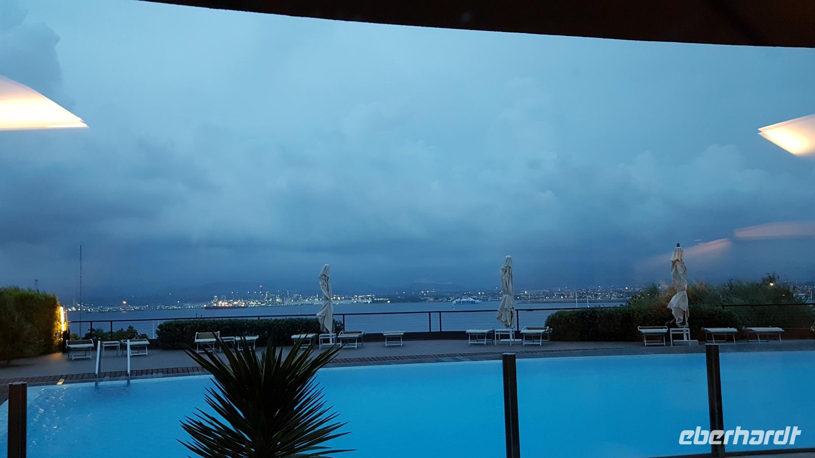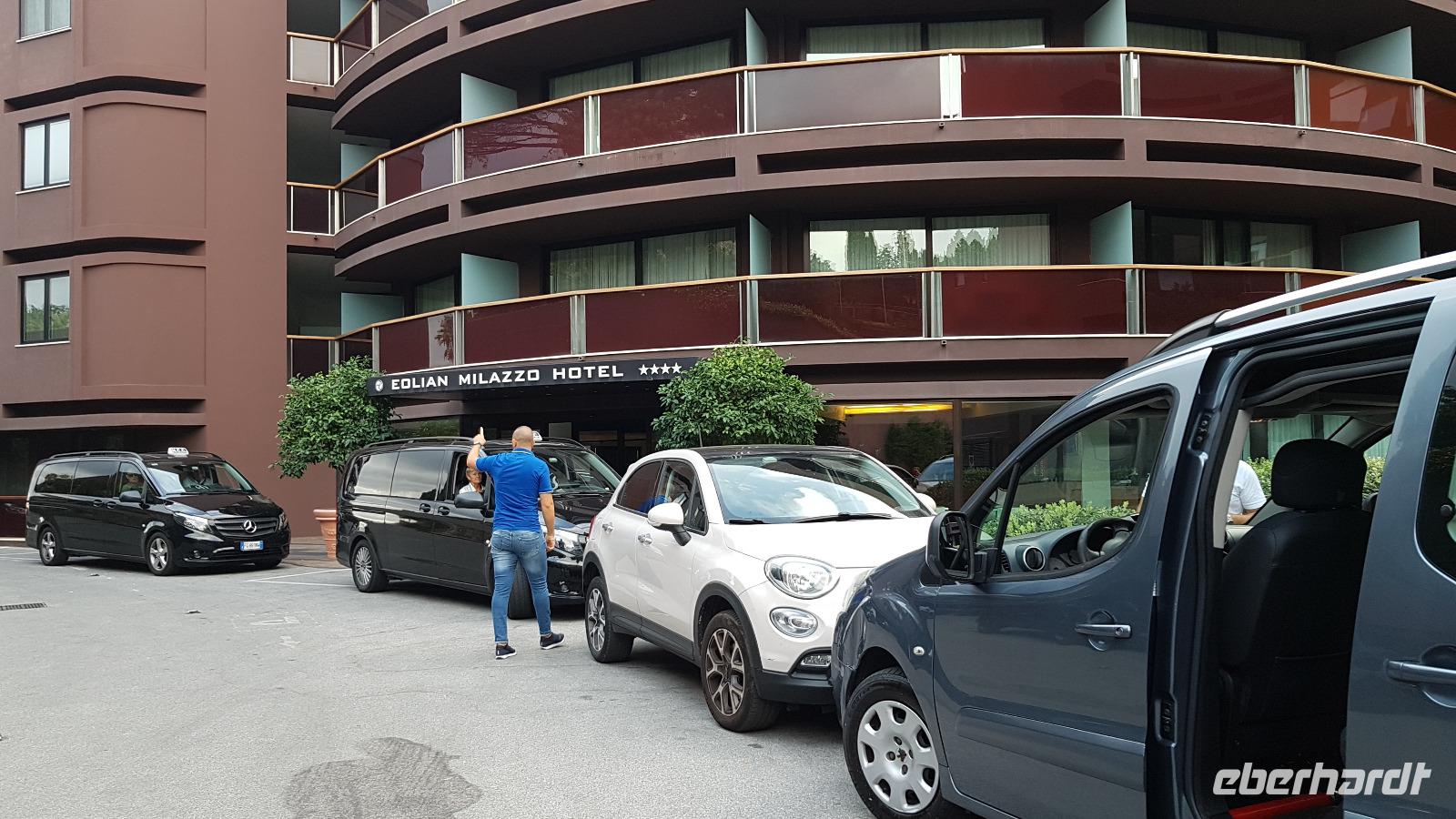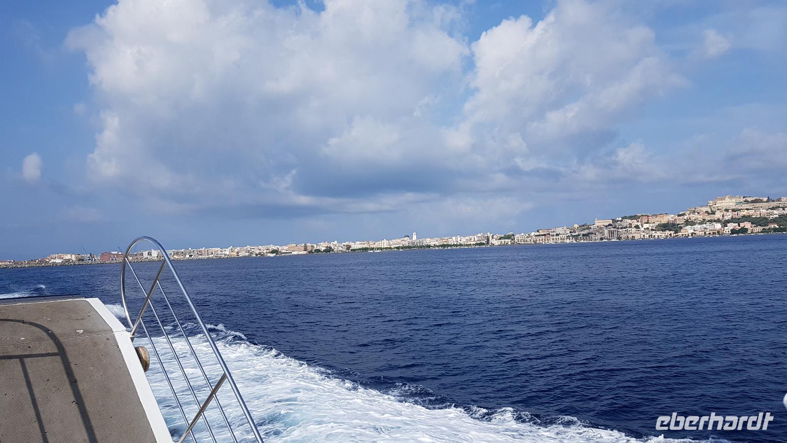 Der Tag heute gehört den Äolischen Inseln. Wir besuchen Lipari und Vulcano. Die Straße am Hotel wurde immer noch gebaut und so brachte uns der Shuttle-Service des Hotels direkt zum Hafen. Dort gingen wir an Bord unserer „Eolian Queen" und fuhren mit einem kurzen Zwischenstopp in Vulcano hinüber nach Lipari. Die größte der 7 Inseln lernten wir dann bei einer Busrundfahrt kennen, verkosteten unterwegs leckeren Wein und nahmen etwas von den Spezialitäten mit, Kapernäpfel oder Gewürze für das nächste Pasta-Gericht zu Hause. Natürlich genossen wir die umwerfende Aussicht und zurück am Hafen hatte jeder noch ein wenig Zeit für sich. Dann fuhr unser Schiff weiter nach Vulcano und jeder konnte selbst entscheiden, was er hier machen möchte, die Schwefel-Schlammbäder probieren oder doch lieber im Meer baden oder einfach die Seele baumeln lassen in einem der Restaurants und genießen. Nur vom Aufstieg auf den Vulkan hatte ich abgeraten. Das wäre bei mehr als 33 °C doch eine Tortur. Uns so hatten wir einen tollen, ruhigen und erholsamen Tag. Am späten Nachmittag legte unser Schiff wieder ab und fuhr noch einmal eine kleine Runde- zu den Felsen, einer davon wird Bischofsmütze genannt, und zu den Grotten, eine hieß das Bad der Venus- auf der Rückfahrt begleitete uns auch ein Delfin für kurze Zeit- was für ein Glück. Unsere Shuttle- Busse warteten bereits am Hafen von Milazzo auf uns und zum Abendessen gab es wieder ein 3-Gänge-Menü im Hotel, das wir uns schmecken ließen.