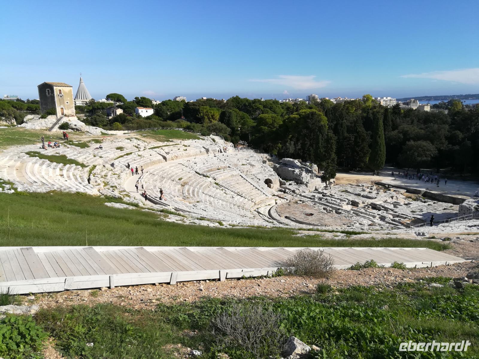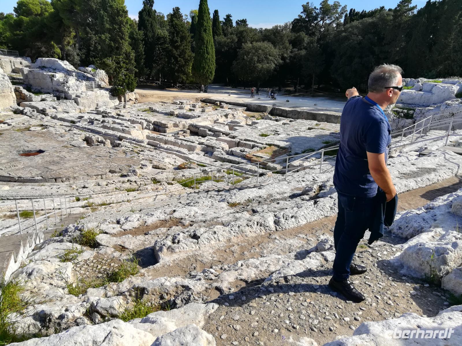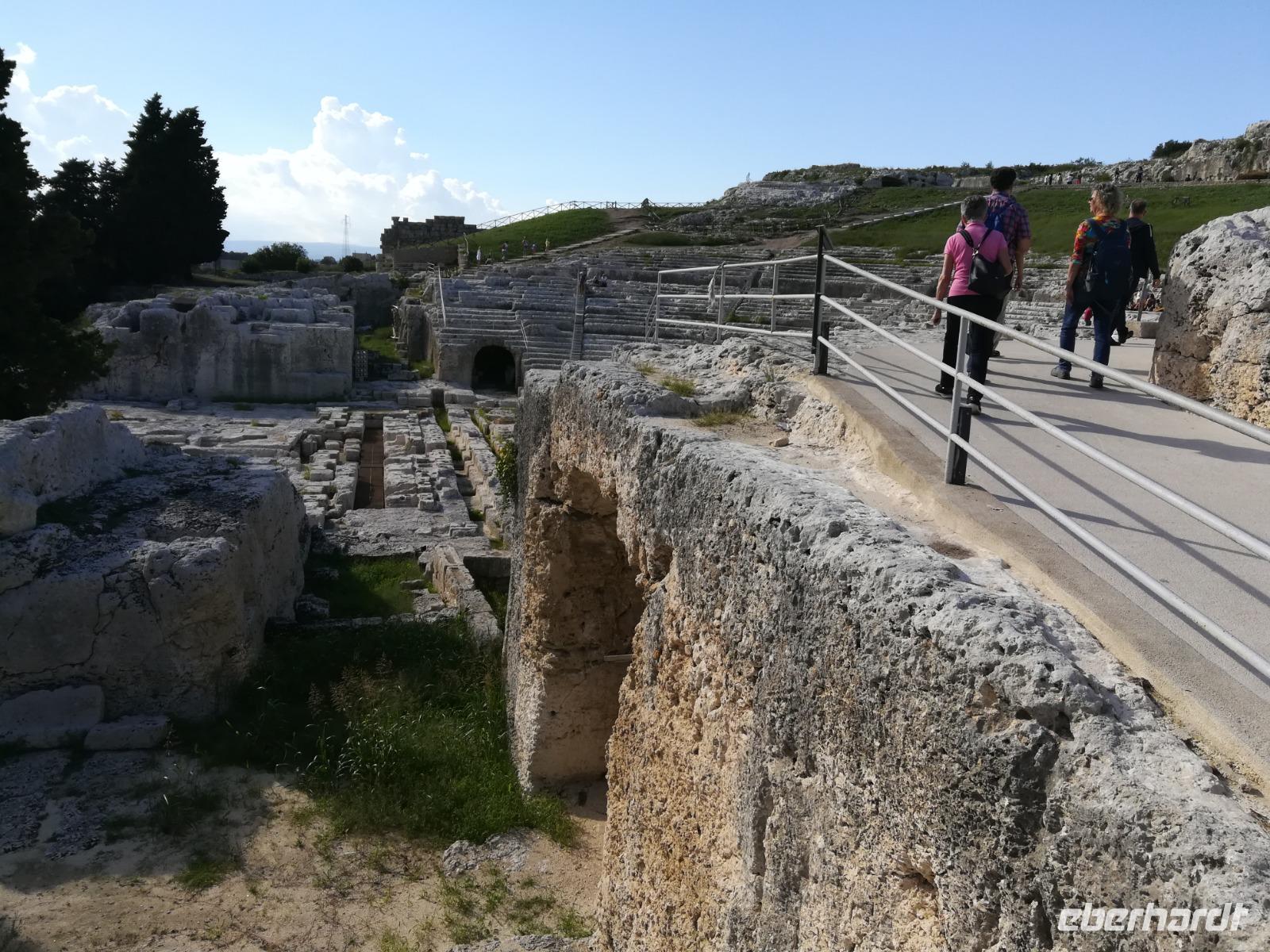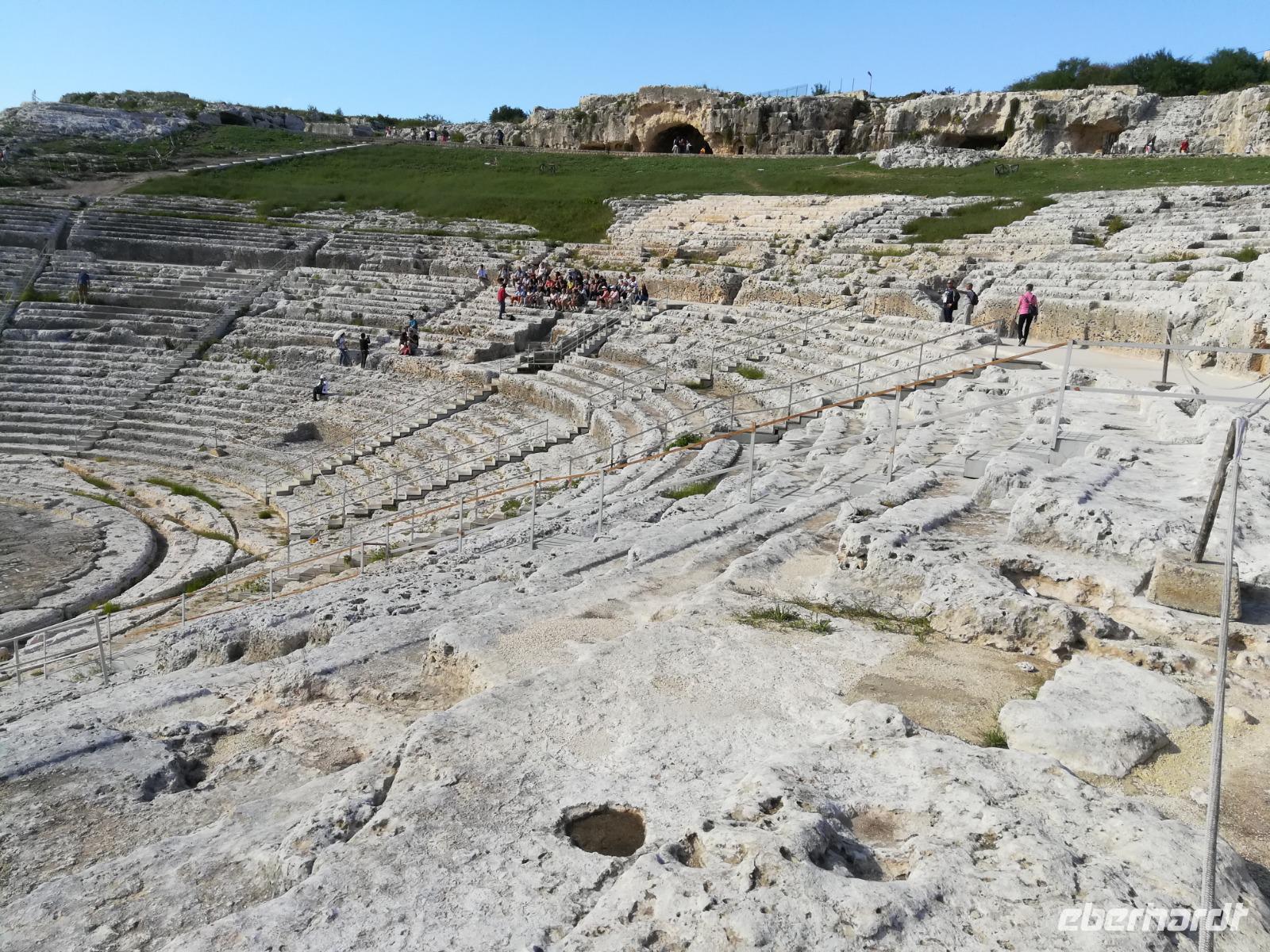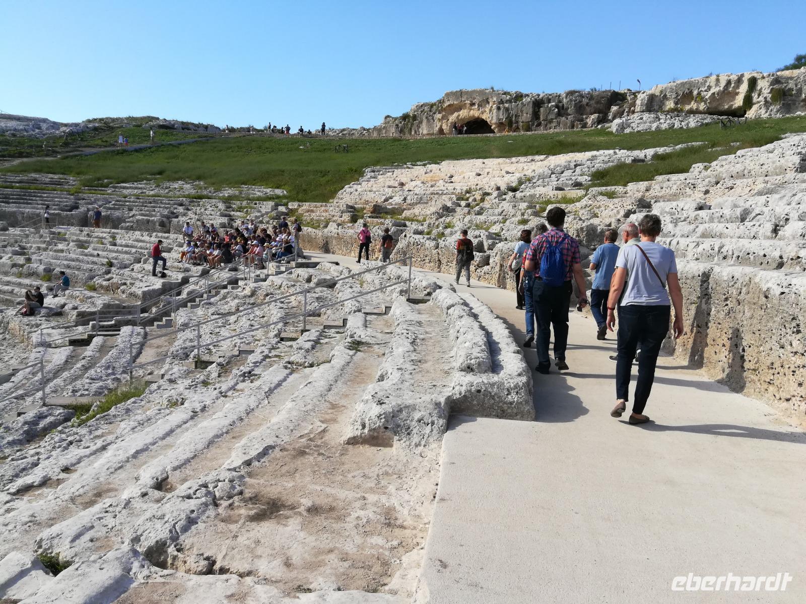 Die Stadt gilt als die Weltmetropole der Antike, die größte Ansiedlung der Griechen außerhalb Griechenlandes. Wahrlich nicht alles können wir uns anschauen! Unser Besuch beginnt bei den archäologischen Ausgrabungen im Park Neapolis mit dem grandiosen griechischen Theater und dem Ohr des Dionysios, einer Grotte mit herrlicher Akustik. Nach Aufforderung unseres Reiseleiters Franco ließen wir uns nicht lange bitten und haben "Sah' ein Knab ein Röslein stehn" gesungen. Ich hoffe, auch zur Freude der anderen Besucher!