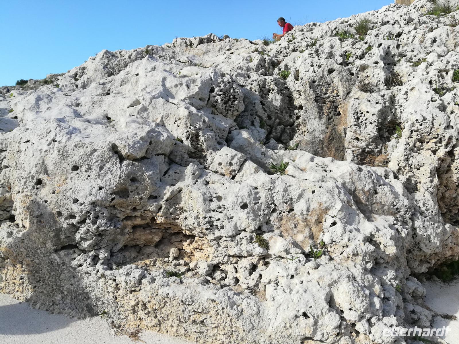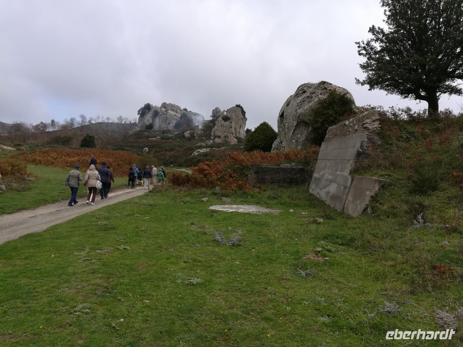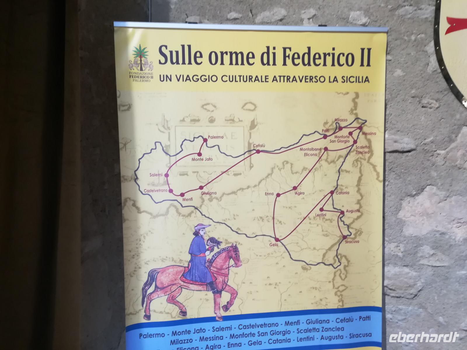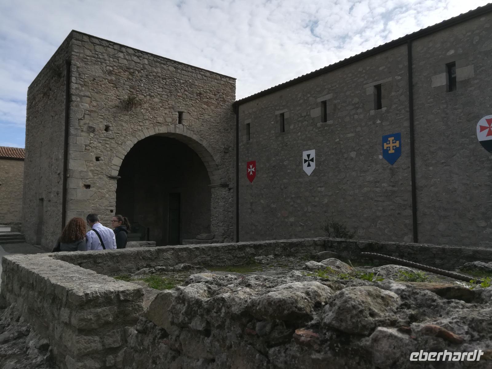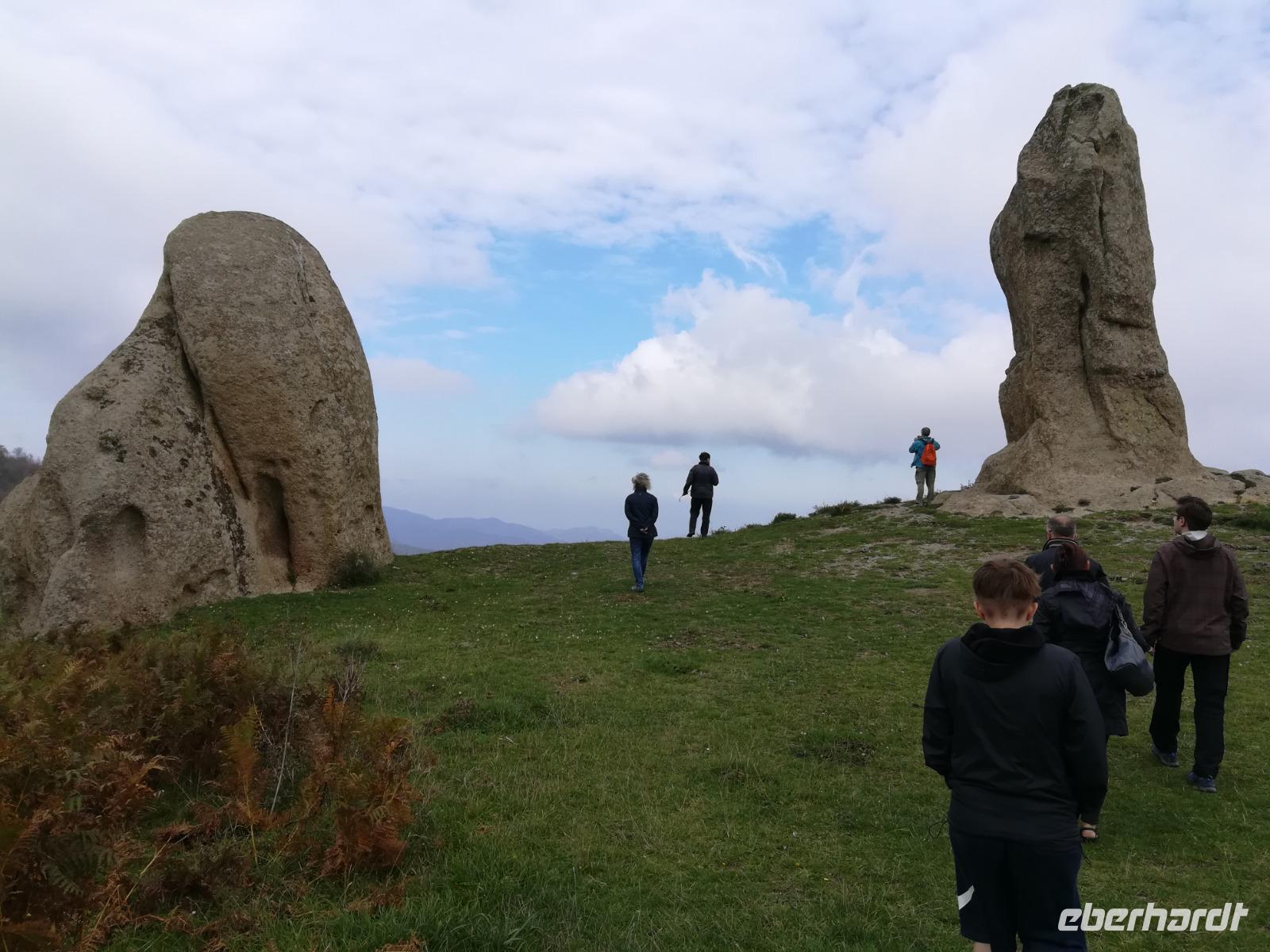 Auf dem Weg dahin geht es in die Berge, bis auf 900 m hoch ins Nebrodigebirge nach Montalbano Elicona. Hier besuchen wir ein hoch oben gelegenes Schloss aus dem 14.Jh, das von Friedrich II. von Aragon bewohnt wurde. Mögliche Ausblicke bis zu den Äolischen Inseln bleiben uns heute durch etwas diesiges Wetter verwehrt. Weiter geht unsere Fahrt auf die Hochebene von Argimusco zu den Megalithen. Dieses sind riesige Felsbrocken in ganz bizarren Formen, die volkstümlich mit Mammut, Elefant und Ochse bezeichnet werden. Dann fahren wir auf einem sehr huckligen Weg zu einer Milchwirtschaft, wo wir verköstigt werden mit typischen regionalen Produkten. Dass der Rotwein aus dem Kühlschrank serviert wurde, war etwas ungewöhnlich, konnte aber den Eindruck der Verkostung nicht weiter mindern.