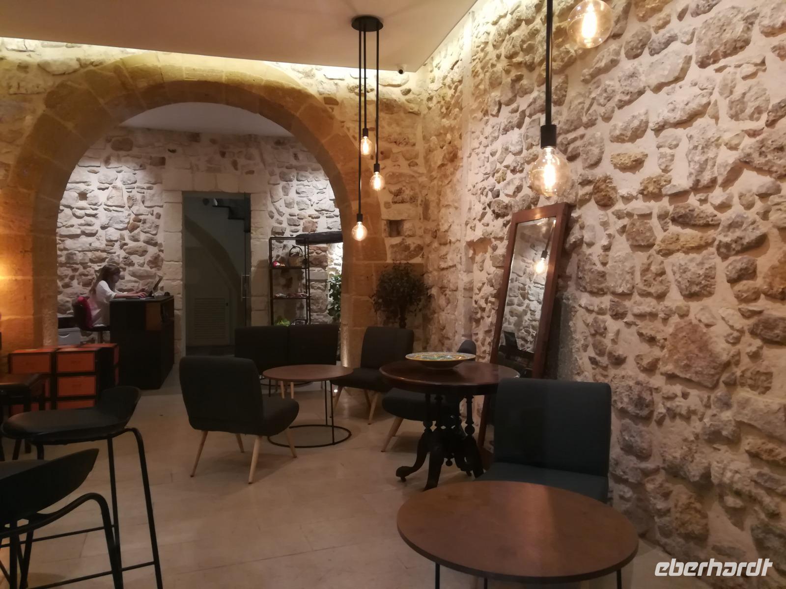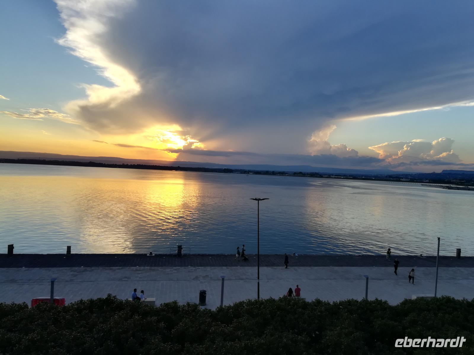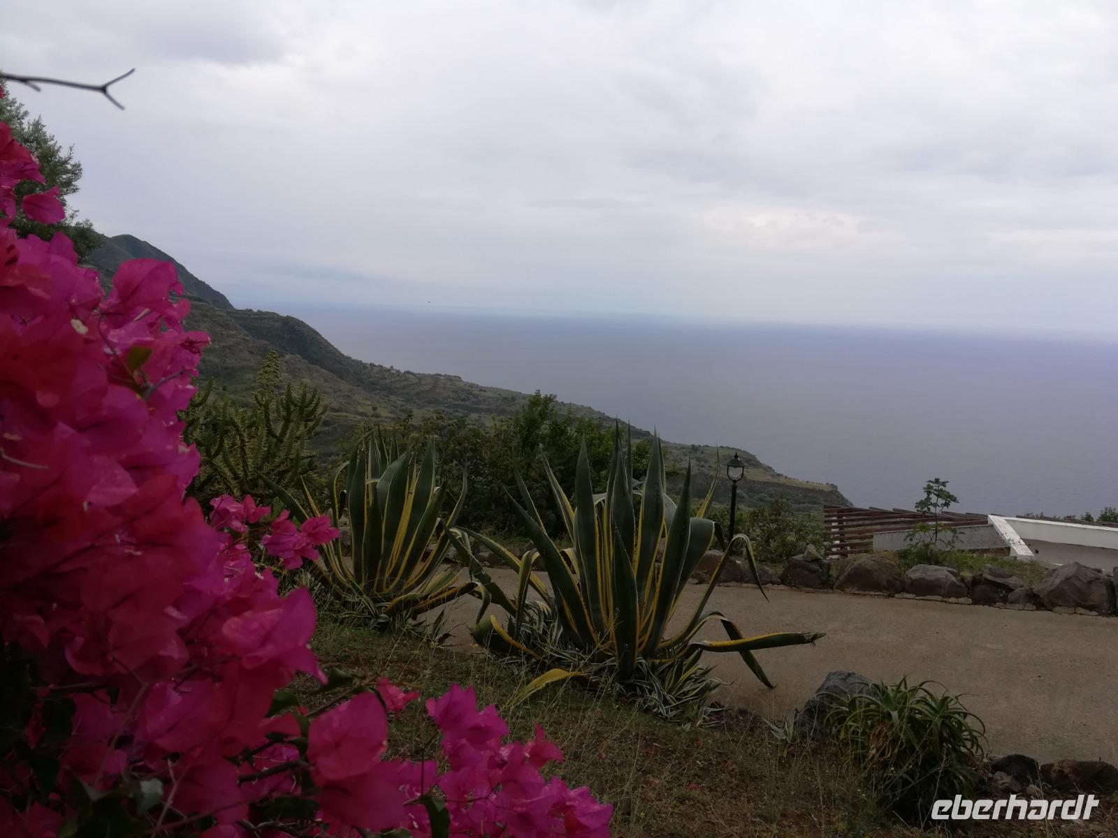 Zu unserem Abendessen in einem besonders schönen Ambiente des Hotels Eolian glaubten wir erst Äolus, der uns nun wohlbekannte Gott des Windes, wäre zu uns gekommen, aber dann war es doch nur die zu kräftig laufende Klimaanlage, die auf unsere Bitte schnell abgestellt werden konnte.