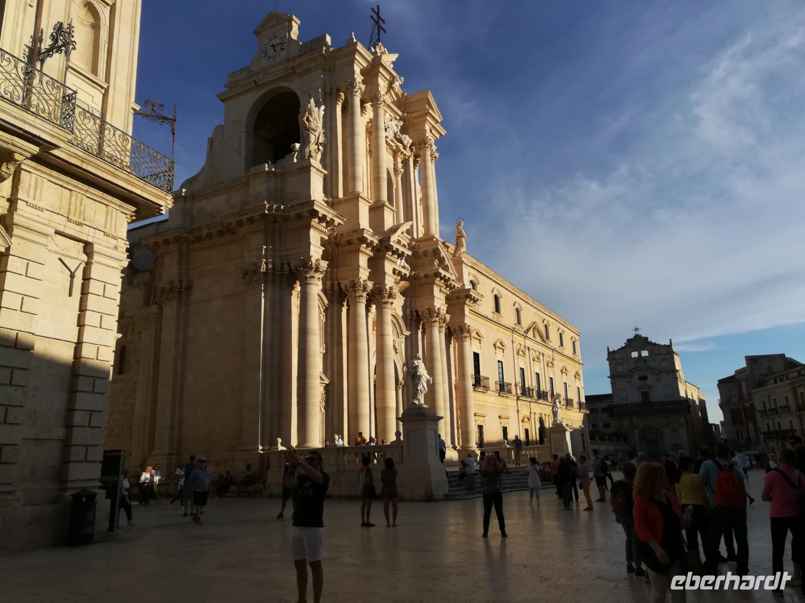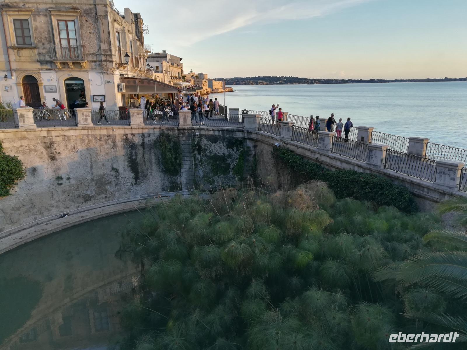 Von Neapolis, der Neustadt von Syrakus, laufen wir nach Ortigia, der Altstadt, die auf einer Insel liegt. Nach dem Besuch der Kathedrale geht es zur Fonte Aretusa einer legendenbehafteten Süßwasserquelle nahe dem Meer.