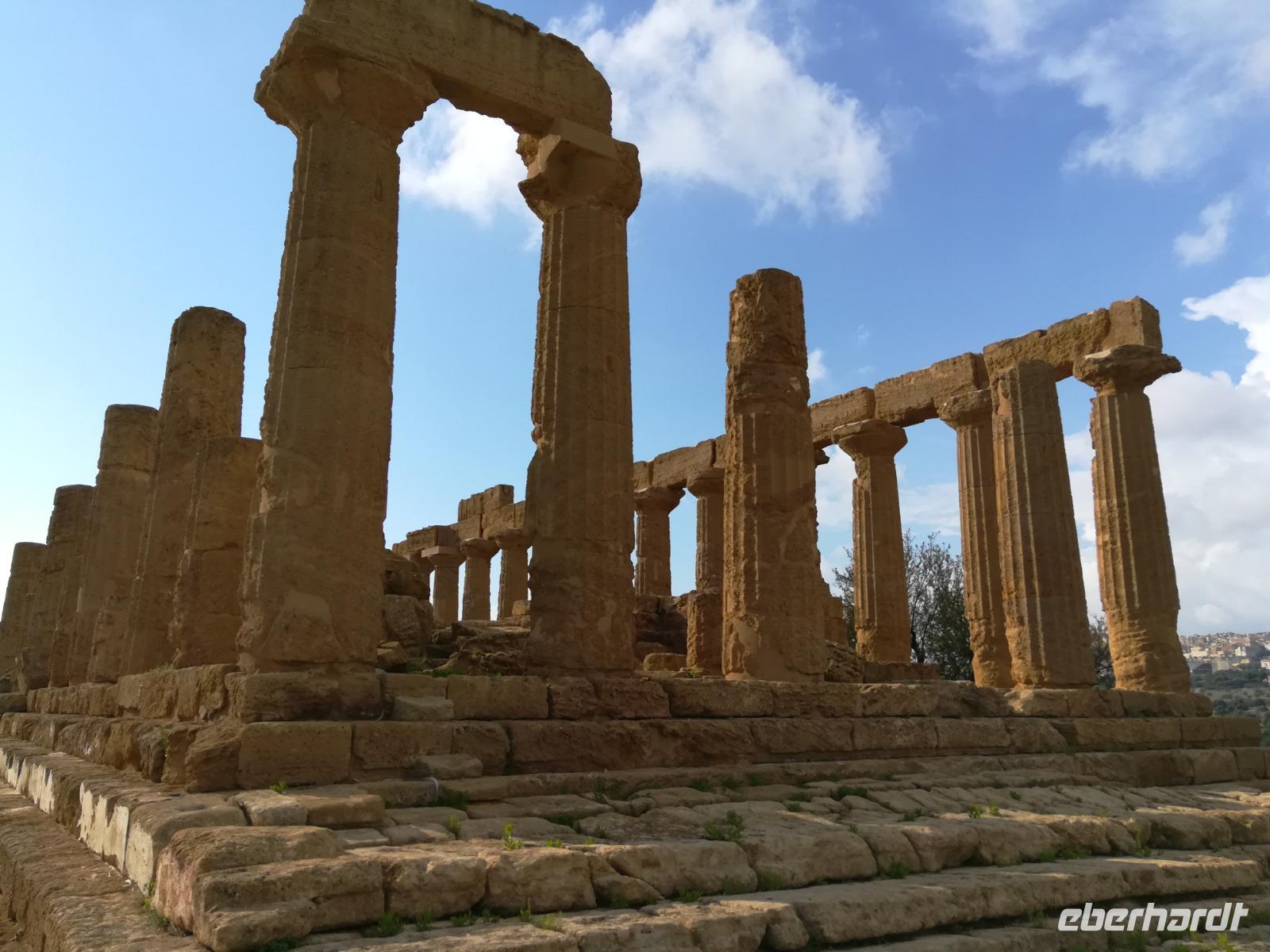 Agrigent ist dann unser nächstes Ziel. Bei den Griechen noch Akragas genannt. Die Stadtgründung geht zurück auf das Jahr 527 v.Chr. Hier im Tal der Tempel befindet sich eine riesige Ausgrabungsstätte mit gut erhaltenen Tempeln wie dem Heratempel, dem dorischen Concordiatempel, dem Herkulestempel und dem Zeustempel. Weitere Tempelruinen, die meist Erdbeben zum Opfer gefallen waren, komplettieren diese antike Stätte.