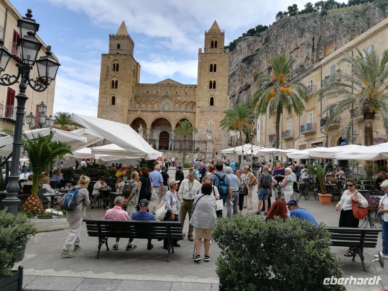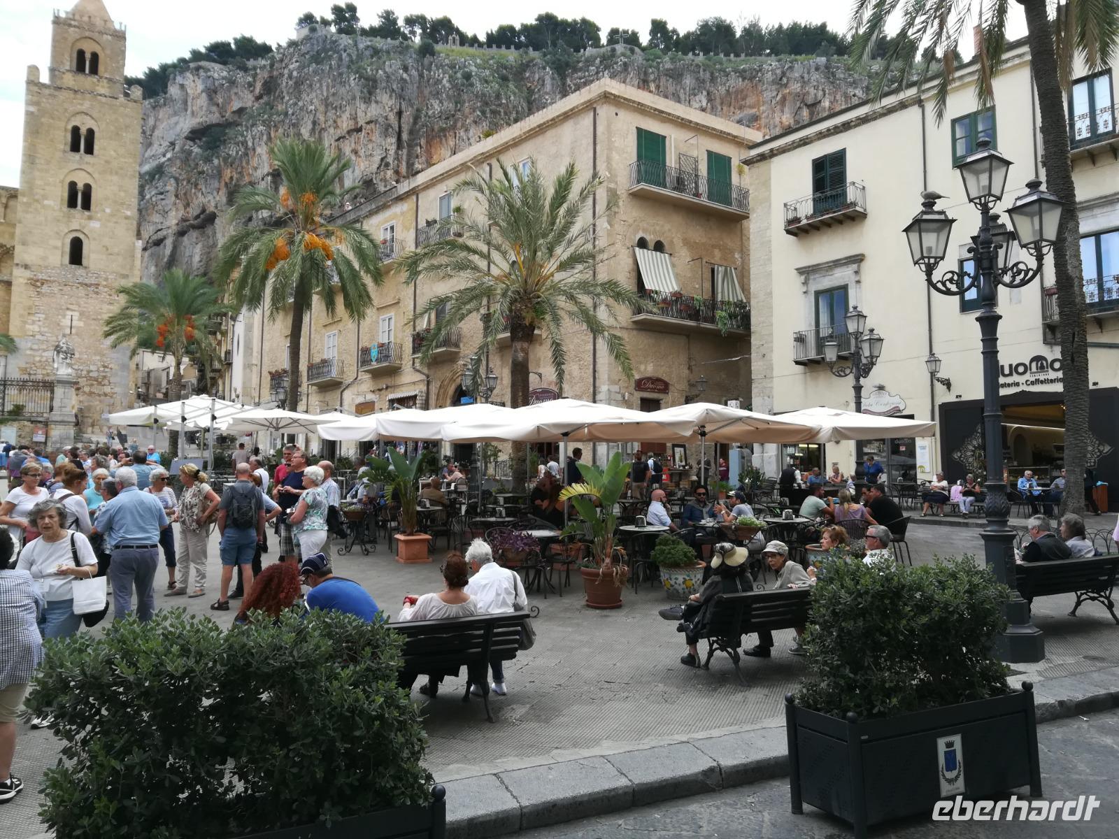 Das nächste Ziel unserer Rundfahrt ist Cefalu, eine Küstenstadt im Norden Siziliens. Hier besuchen wir den Dom, ebenfalls UNESCO Weltkulturerbe und dann lassen wir uns durch die kleinen Strassen treiben in einer sehr lebendigen Kleinstadt von 14 T Einwohnern. Cefalu liegt zwischen Meer und Berg, einem hoch aufragenden Felsen, dem Rocca. Für Badeurlauber ein Paradies, nicht zuletzt, durch einen der längsten Sandstrände auf Sizilien.