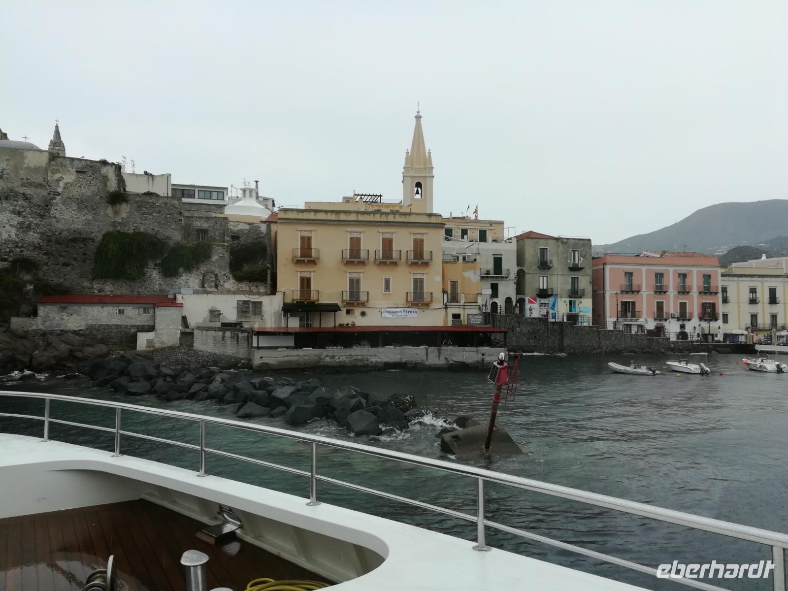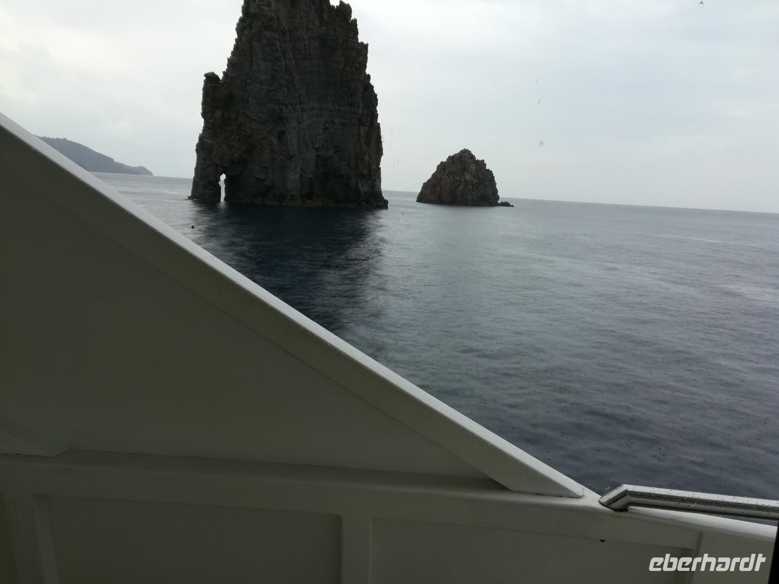 Dann mahnt die Schiffsglocke zum Aufbruch und zurück geht es in den Hafen von Milazzo. Wir hatten eine wunderschöne Überfahrt zu den beiden Äolischen Inseln und können nun auch aus eigener Anschauung gut verstehen, dass diese Inselkette zum UNESCO Weltnaturerbe gehört.