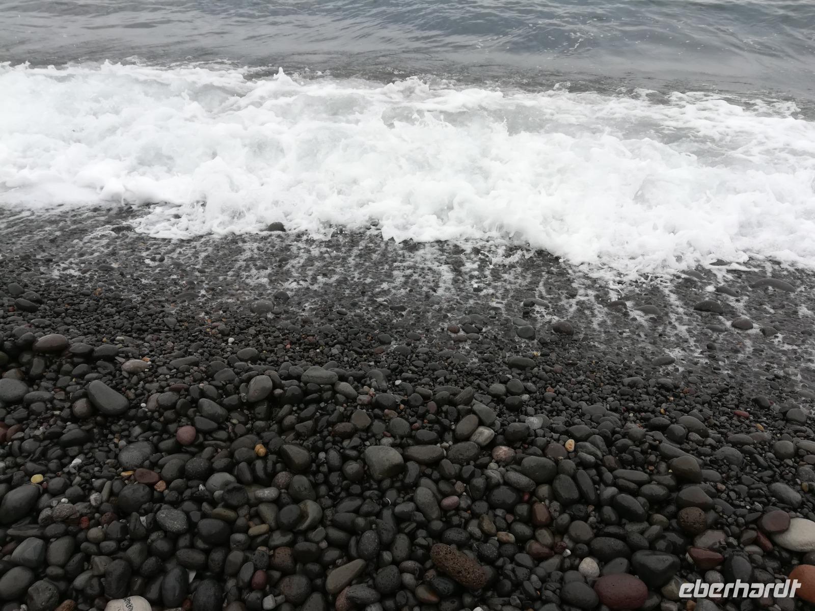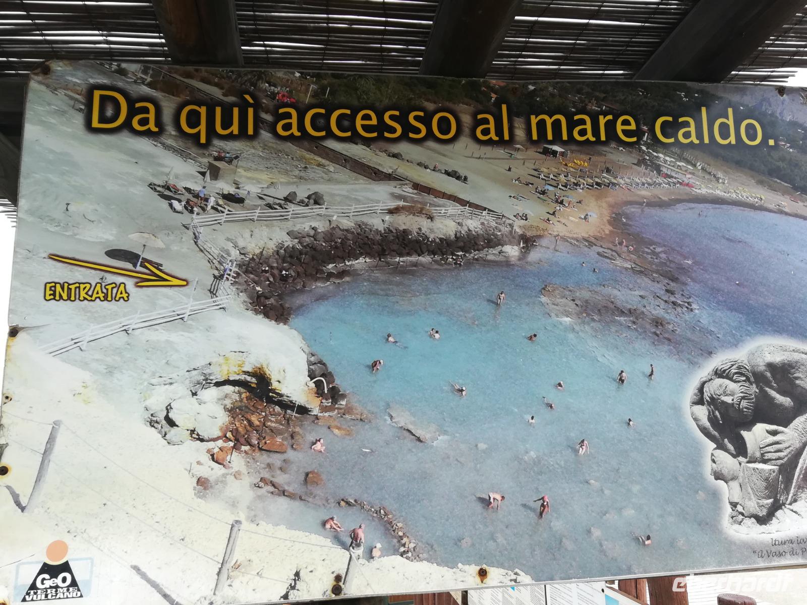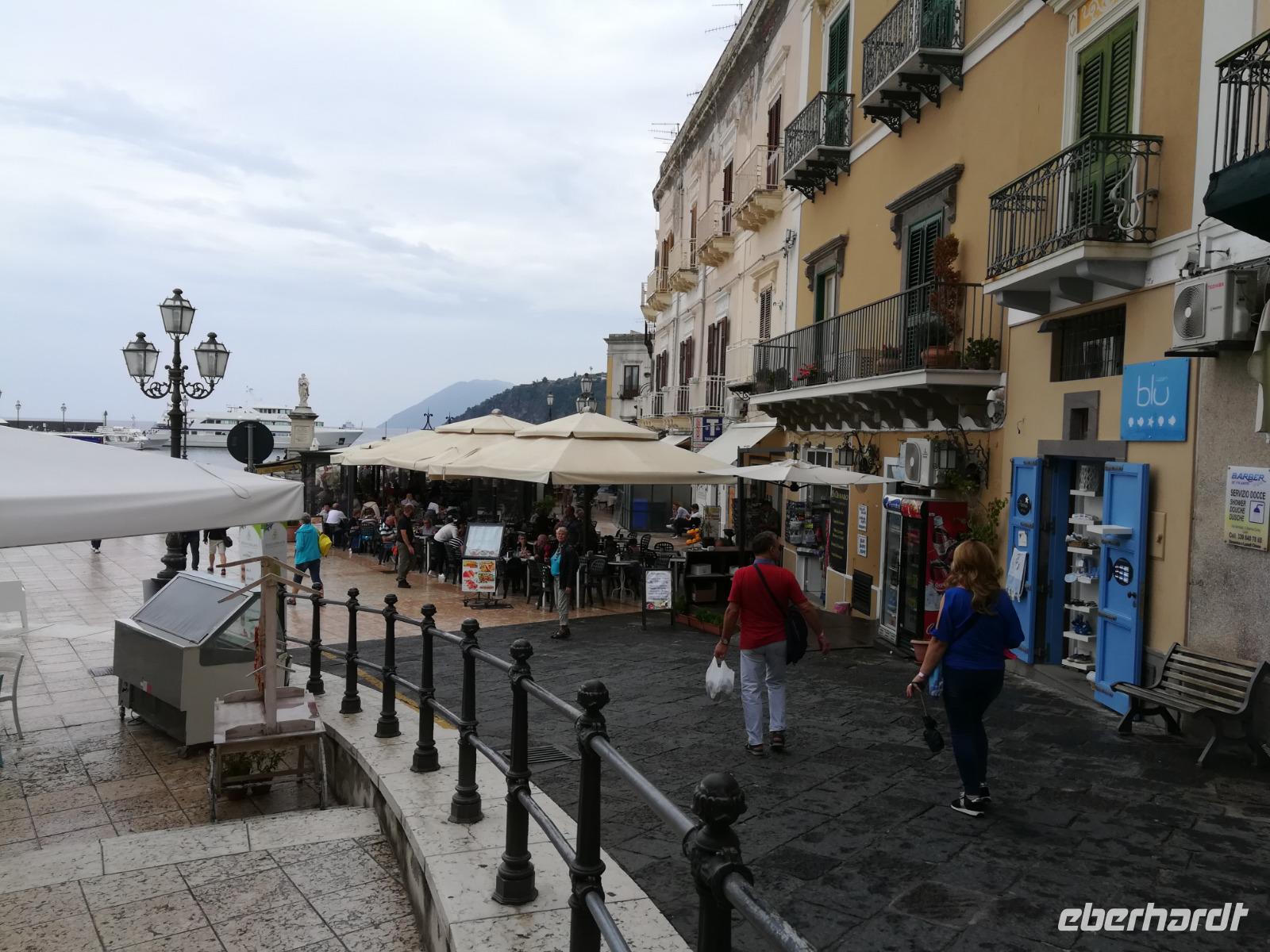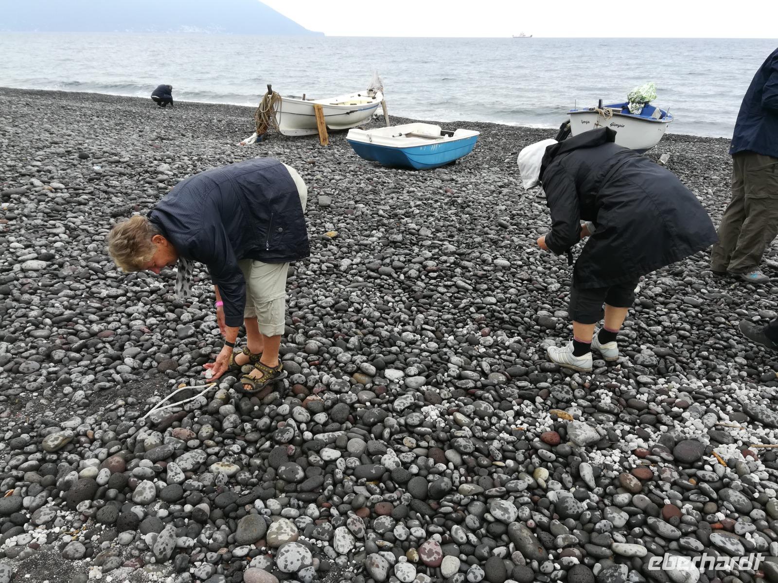 Diese Insel besteht dem Grund nach nur aus dem 391 m hohen Vulkan, den man besteigen könnte aber unsere 2 Stunden Aufenthalt reichen dafür kaum aus. Eine Besonderheit aber wird von ein paar unserer Gäste genutzt, ein Schlammbad nämlich, dessen schwefelhaltige Substanzen dem menschlichen Körper gut tun sollen. Freilich müßte man für solch positive gesundheitliche Effekte ein paar Tage diese Anwendungen genießen. Jedenfalls haben auch wir, die wir nicht ins Bad eingetaucht sind, bereits bei der Ankunft den schwefelhaltigen Geruch riechen können, der uns beim Verlassen des Schiffes entgegenwabert. Wer nicht badet, bummelt durch die eine Strasse, trinkt einen Espresso oder bummelt am lavaschwarzen Strand entlang.