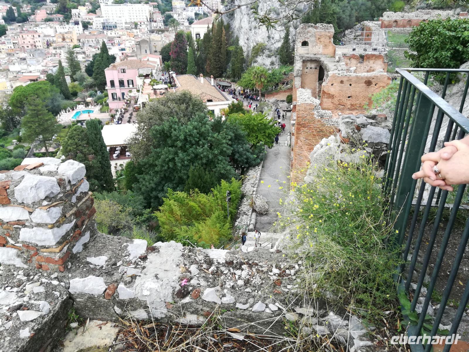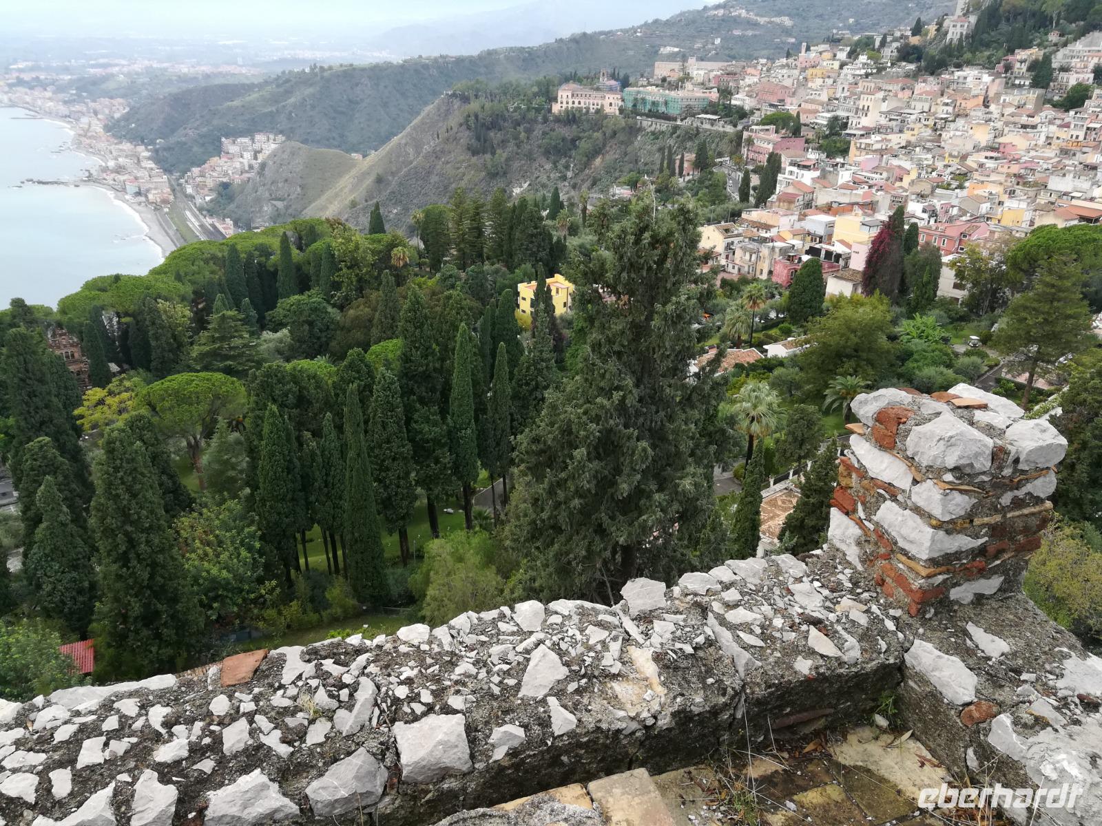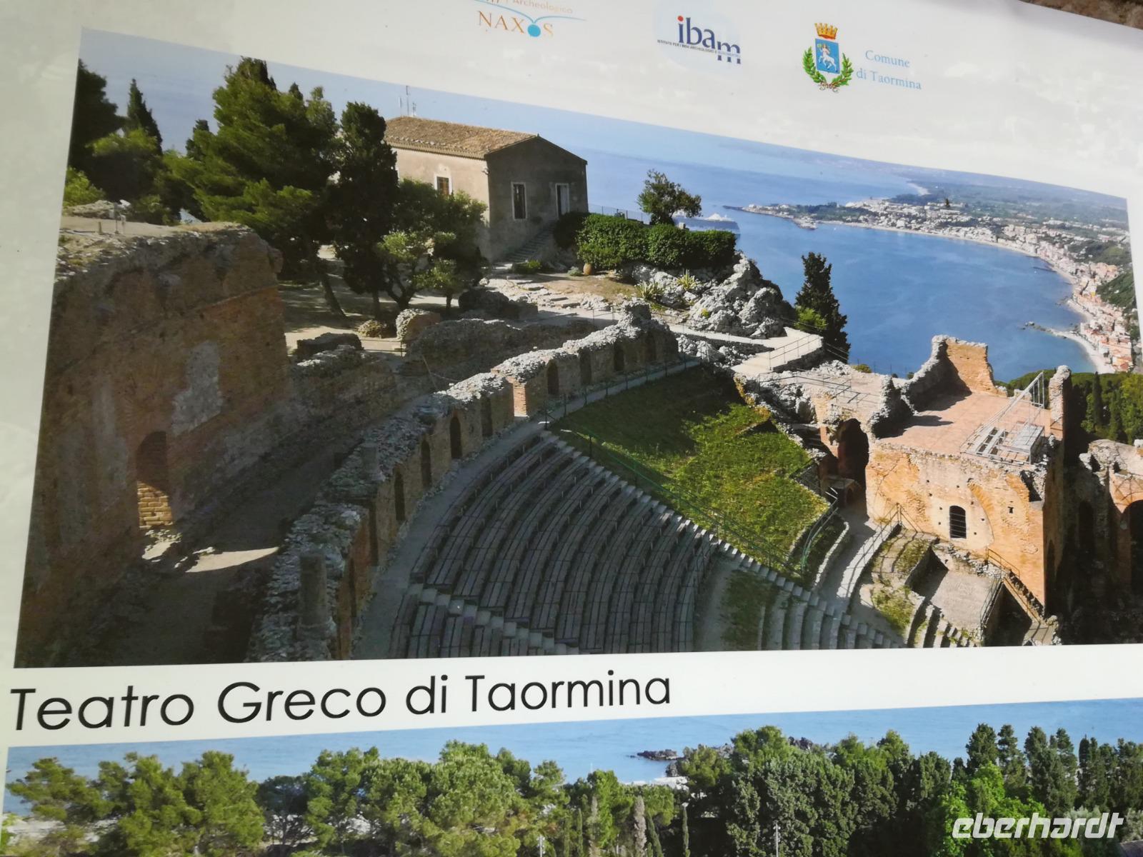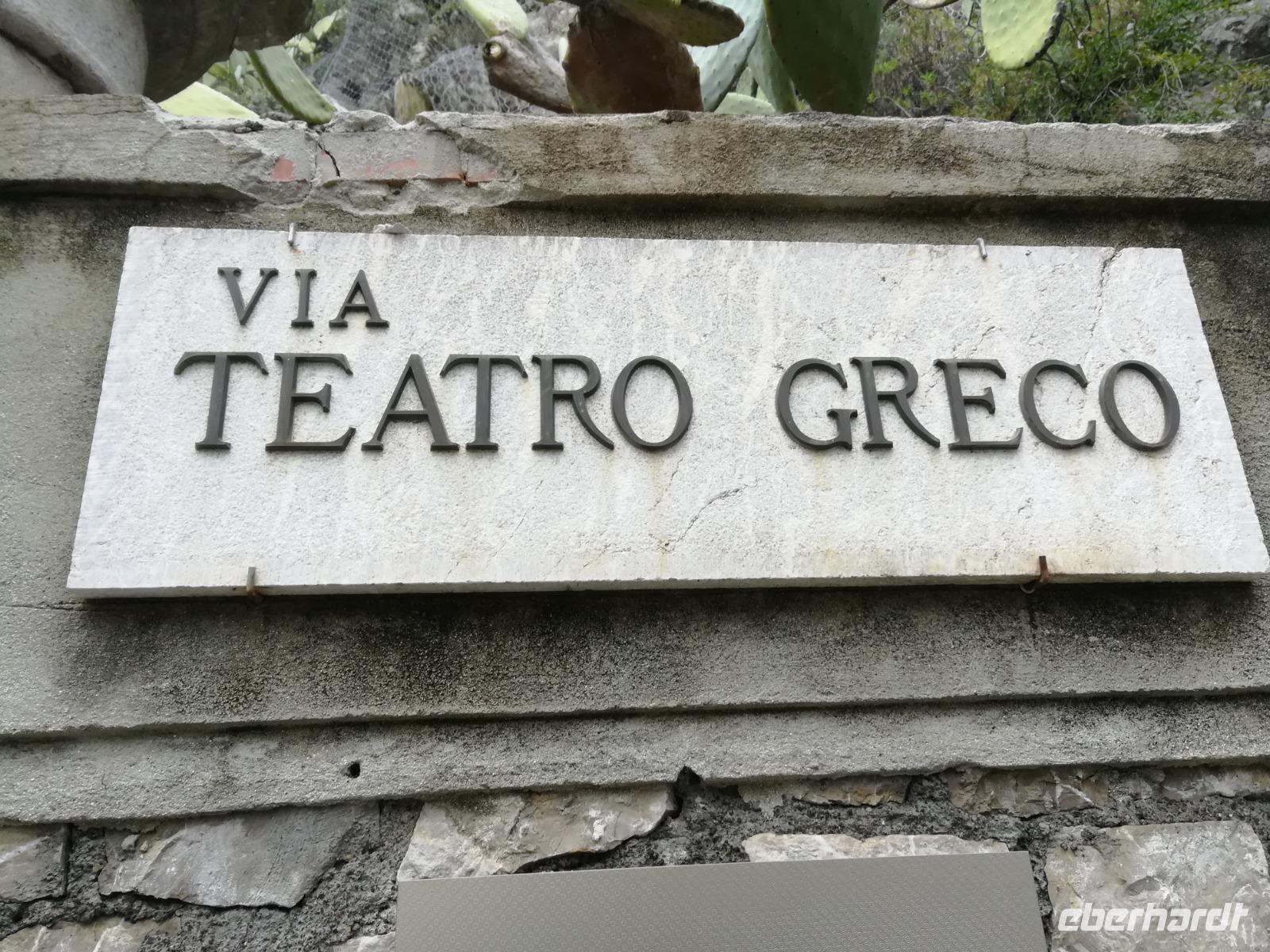 Berühmt und weltbekannt ist das Teatro Greco, was trotz des Namens ein römisches Bauwerk ist. Es ist noch so gut erhalten, dass auch heute bedeutende Veranstaltungen dort stattfinden. Von hier oben kann man auf die Strasse von Messina und damit zum italienischen Festland hinüber schauen.