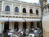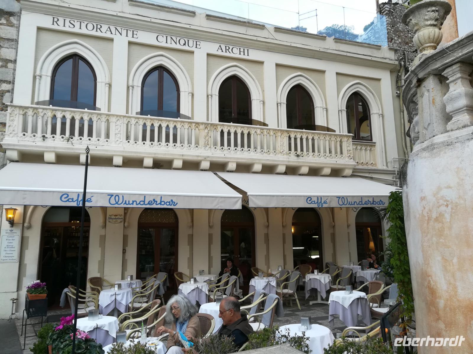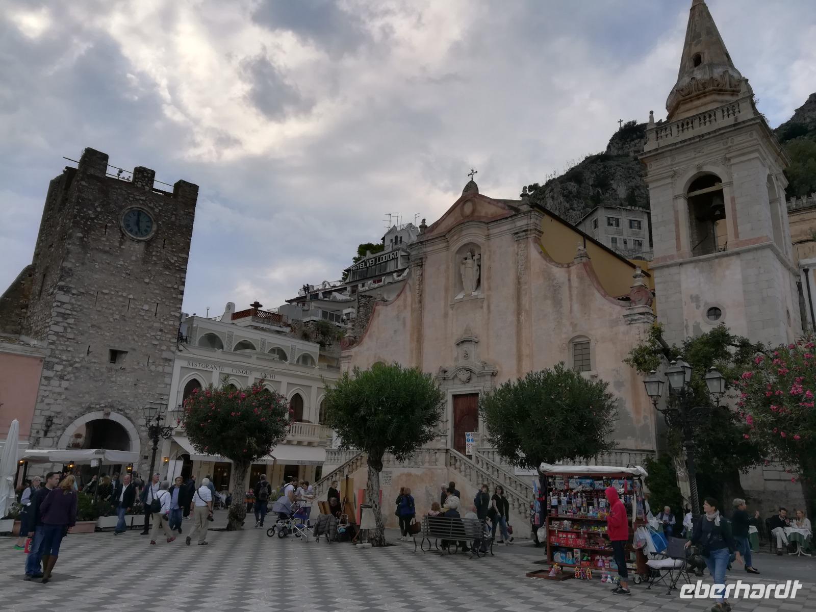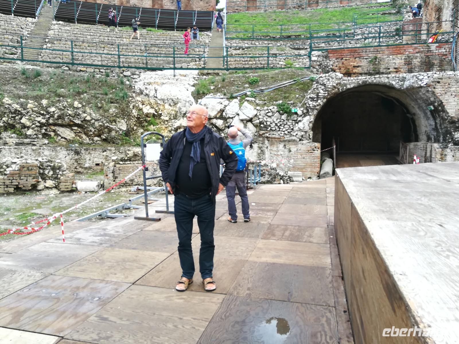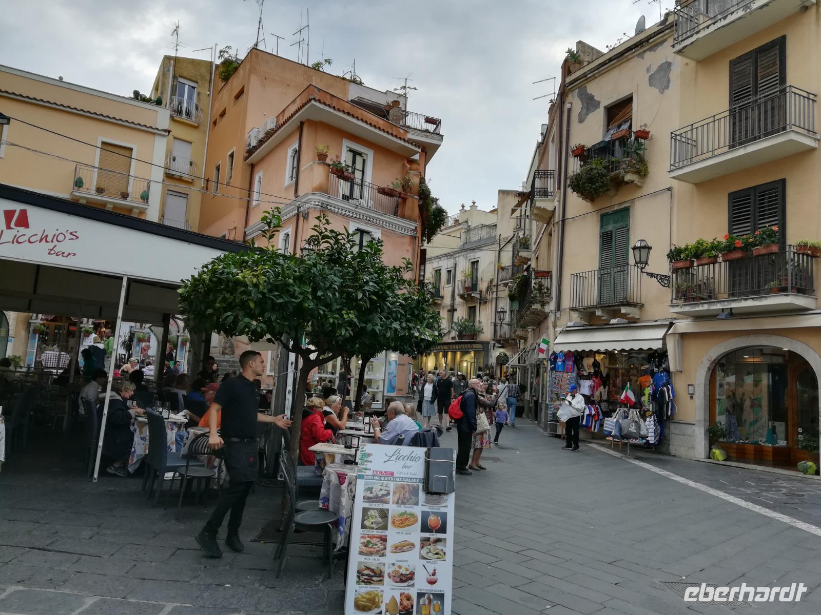 Berühmt und weltbekannt ist das Teatro Greco, was trotz des Namens ein römisches Bauwerk ist. Es ist noch so gut erhalten, dass auch heute bedeutende Veranstaltungen dort stattfinden. Von hier oben kann man auf die Strasse von Messina und damit zum italienischen Festland hinüber schauen.