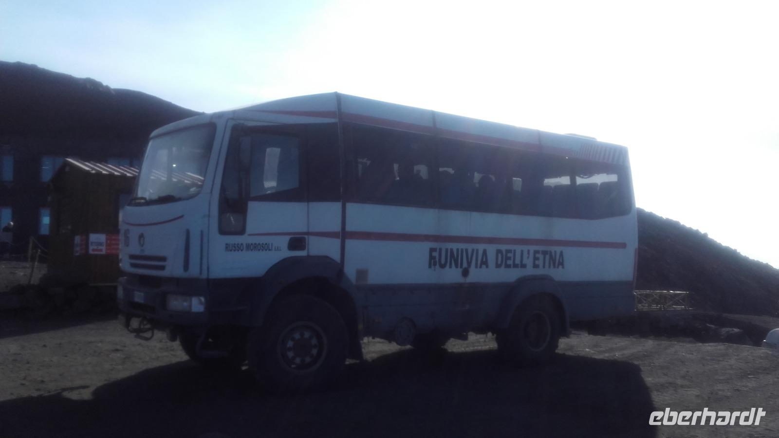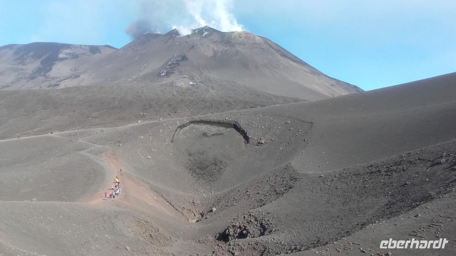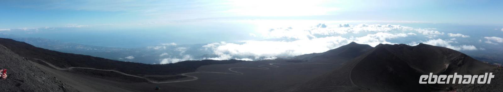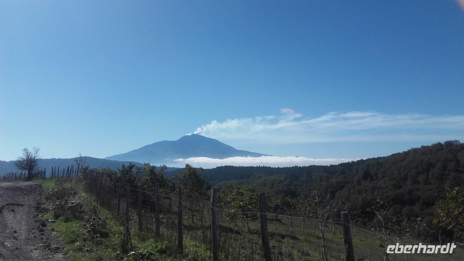 Gleich nach dem Frühstück beginnt unser erster Ausflug. Die Reise zum Ätna führt uns durch die wunderschöne Vegetation der Südküste und die romantischen Straßen Zafferanos. Zwischendurch können wir durch einen Fotostopp erste Fernaufnahmen von "Dem Berg", wie ihn die Sizilianer nennen, machen und seine Schönheit, dank der klaren Sicht bewundern. Auf der Weiterfahrt erzählt Enza über den Vulkan, seine Geschichte und warum die Sizilianer ihn sowohl als Fluch, als auch als Segen betrachten. Anschaulich zeigt Sie uns, wie die Sizilianer die zu Stein erkaltete Lava für alltägliche Bauten nutzen und auch wie die so landestypischen Verzierungen hervorragend in das Städtebild einfließen. Aufmerksam folgen wir ihren Ausführungen über das Zustandekommen der Vegetation auf der Insel. Viele von uns überrascht, dass der Ätna, anders als der Versuv, den Einwohnern Siziliens nur selten zum Verhängnis wurde, da er statt heißer Asche nur die schleichende Lava ausspuckt.