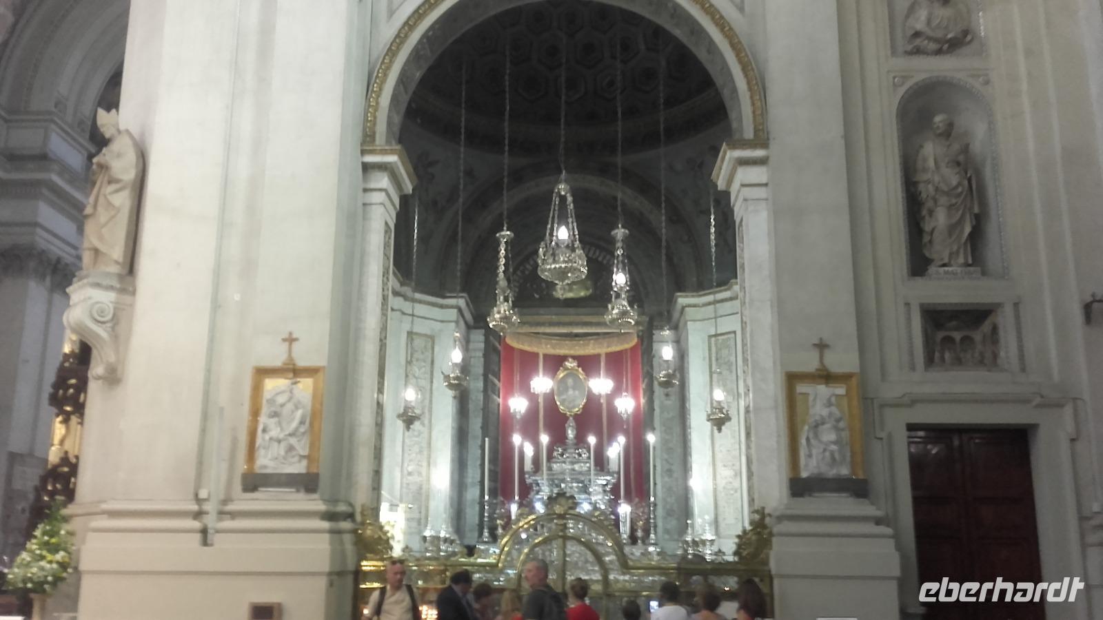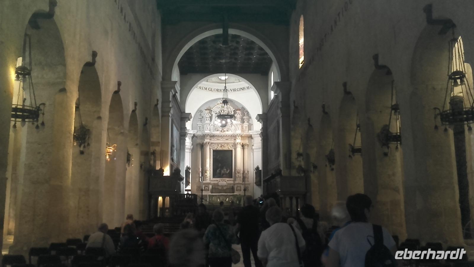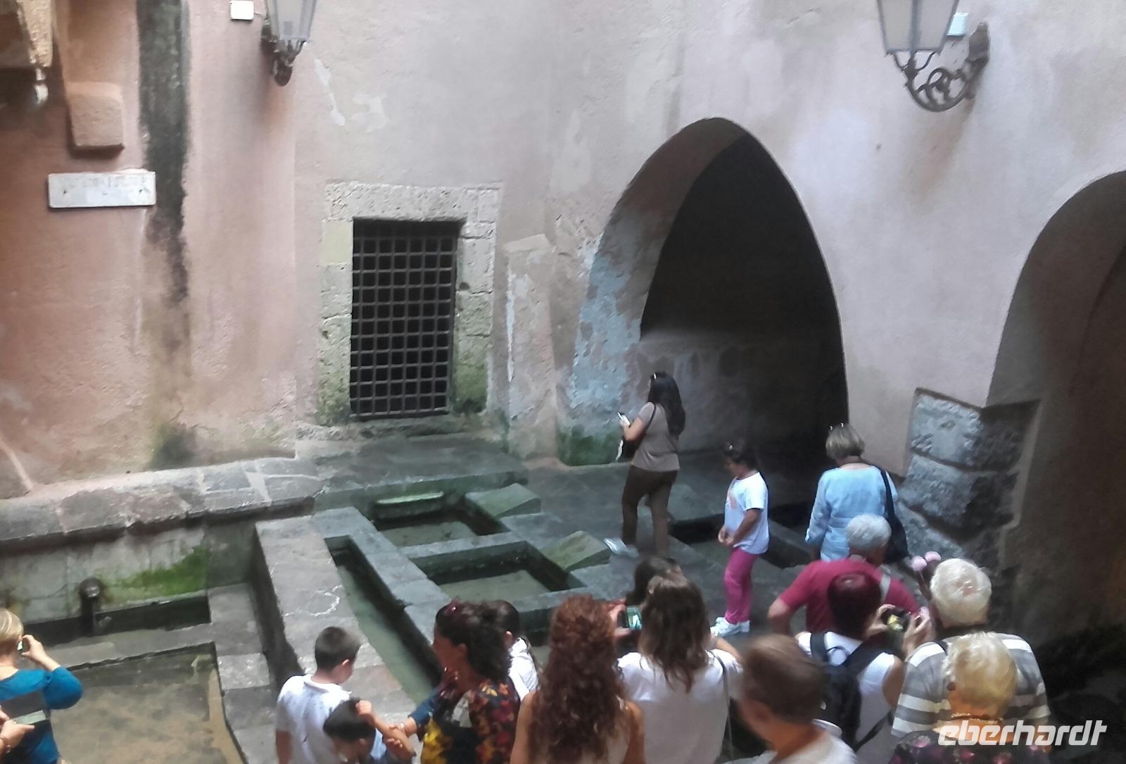 Am späten Morgen erreichen wir dann den imposanten Vulkan und fahren in kleinen Gondeln bis auf 2500 m in die Höhe. Auf der Zwischenstation angelangt, stehen wir vor der Entscheidung, ob wir mit Enza auf der Ebene verweilen oder mit den Jeeps bis nach ganz oben weiterreisen möchten. Mit dezimierter Anzahl geht es nun mit den Jeeps durch die graue Mondlandschaft bis auf 3000 m Höhe. Oben angekommen, können wir den beeindruckenden Hauptkrater so nahe wie nie wahrnehmen, welcher nun auch beginnt graue Wolken auszuspeien. Aufgrund der plötzlichen Aktivität des Kraters, ist es uns nicht mehr möglich den Vulkan noch weiter zu erklimmen. Zu unserem Glück zeigt uns ein englischsprachiger Guide stattdessen einen kleineren Seitenkrater, von wo aus man die austretende Wärme förmlich spüren kann. Dank der guten Sicht bietet sich uns ein wunderschöner Blick über die zahlreichen Krater und selbst die Südküste der Insel lässt sich in der Ferne ausmachen. Wieder sicher unten angekommen, geht es nun weiter Richtung Syrakus. Ausgestattet mit Audiogeräten und nach einer kurzen Einweisung, bringt uns Enza die Geschichte der Eruptionen nahe. Immer entlang der Südküste, fahren wir vorbei an einer Olivenölraffinerie und erreichen am frühen Nachmitag schließlich Syrakus. Unser Weg führt uns durch die bunten Einkaufsstraßen, am Hafen vorbei, bis zur Kathedrale der heiligen Lucia. Der Domplatz blendet uns mit dem durchdringenden Weiß der Villen und Kirchen rundum. Enza erzählt uns auf der Tour mehr über die Geschichte des Marktplatzes und der kleinen feinen Einkaufsstraße, die wir durchqueren. An der Kathedrale von Syrakus erfahren wir näheres über die Historie des antiken Bauwerks und der Heiligen Lucie. Wir erkunden die prächtigen Glasmosaike, die Kammern der Heiligen sowie ihrer Statuen, die Linke Absyss, den verzierten Altar und die alten Reliquien. Anschließend bleibt Zeit für eine kleine Mittagspause. Gestärkt geht es weiter per Bus quer durch die weiße Küstenstadt bis hin zur archäologischen Zone. Beherrschend ragt über der Stadt die Wallfahrtskirche der Tränenmadonna auf, welche ihren Namen anhand der pechschwarz weinenden Madonnastatue erhielt. Heute ist die weinende Madonna hinter einer Glasvitrine verwahrt. Unser Weg führt uns durch einen magischen Tunnel der Natur, auf dem wir mehr über die Person des Caravaggio und die Sage vom Ohr des Dionysius kennenlernen. Natürlich betreten wir auch die imposante Gruft, welche mit der verriegelten Seilagrotte die einzigen des Ortes waren. Im Anschluss führt uns Enza entlang des 'kleinen Paradieses' vorbei an Orangenbäumen zum griechischen Theater. Geschafft geht es nun per Bus wieder entlang der sprießenden Südküste zurück zum Hotel, in welchem schon ein leckeres 3-Gänge Abendessen auf uns wartet...