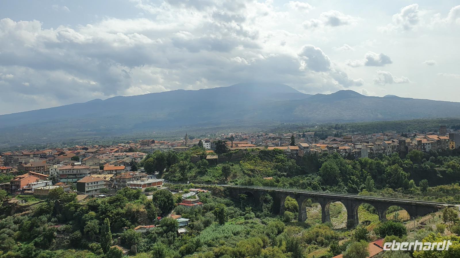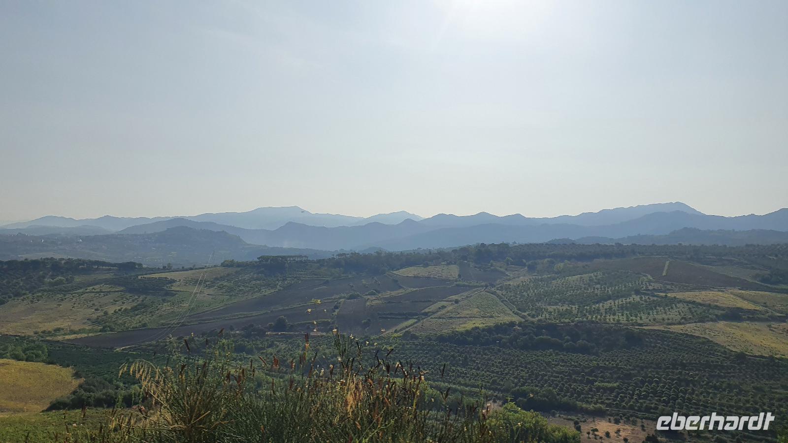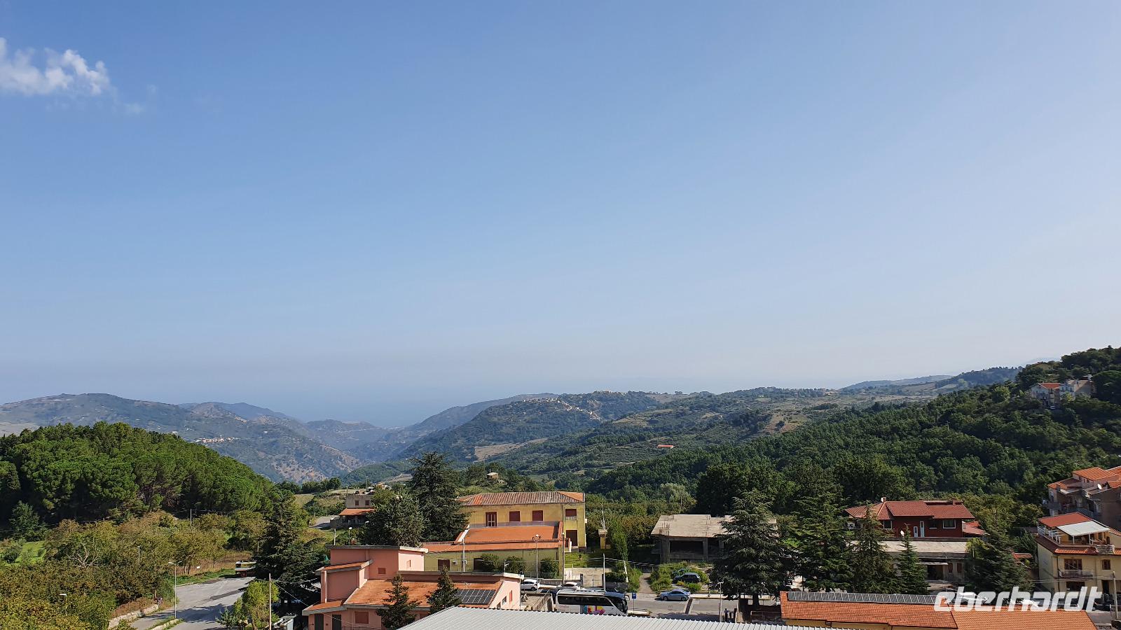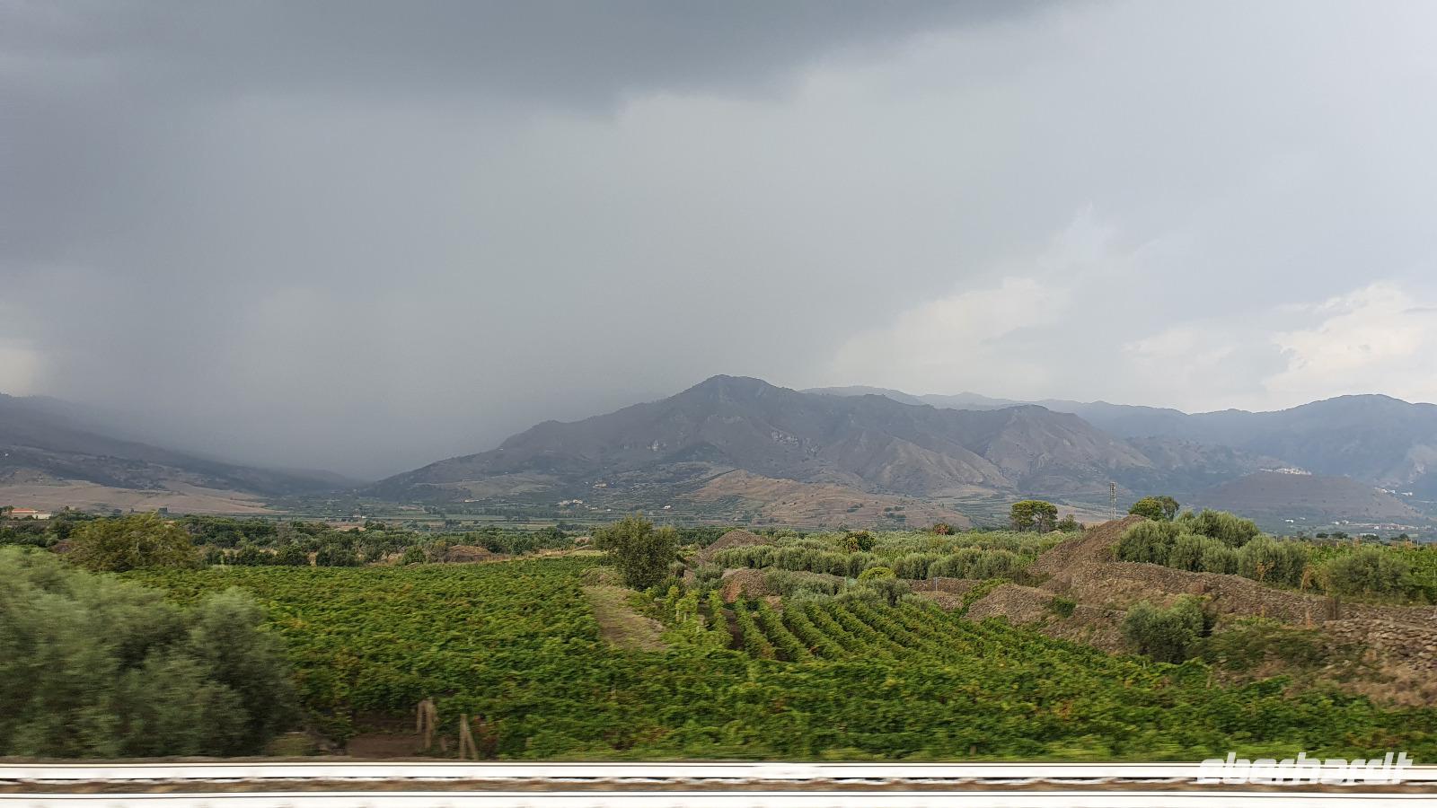 Wieder verabschieden wir uns von einem Ort, es heißt Koffer packen und zurück zur Südküste Siziliens. Dieses Mal nehmen wir aber nicht die Küstenstraße sondern fahren durchs Landesinnere. Eines der schönsten Dörfer Siziliens ist unser erstes Ziel: Montalbano Elicona. Diesen Titel hat es vor einigen Jahren verliehen bekommen- leider ist die erhoffte touristische Belebung ausgeblieben und so ziehen viele Menschen hier weg- leider. Das Leben ist nicht einfach, es braucht den guten Familienzusammenhalt, füreinander dazusein und sich zu helfen. Am Markt steigen wir aus und spazieren hinauf zur Burg. Es ist eine Normannenburg, sie beherbergt ein kleines Museum und so können wir hautnah mittelalterliche Wappen, Waffen und Kleidung erleben, aber auch Musikinstrumente aus aller Welt und aus allen Epochen. Wer möchte steigt zum Burgturm hinauf und genießt die Aussicht von hier oben. Dann geht es die verwinkelten Gassen zurück zum Bus und unsere Fahrt führt uns nun weiter ins Nebrodi Gebirge. Auf der Hochebene von Agrimusco machen wir einen Stopp und einen Ausflug zu den Megalithen. Manch einer sieht in den Felsen reine Naturformen, anderen sind sie heilige Kultstätten, wie auch immer, wir genießen den Spaziergang. Begrüßen den "Adlerfelsen" und dann endlich auch wieder den Ätna. Wieder am Bus angekommen gibt es eine kleine Überraschung: ich hatte Trauben und Cracker besorgt, dazu den versprochenen süßen Marsala und da war ja auch noch etwas Limoncello...Alle freuen sich, genießen die Kleinigkeiten und den Aufenthalt hier oben. Nun aber geht es weiter zu unserer Mittagspause: ein Agriturismo wieder- dasBorgo San Nicolae. Wir werden herzlich begrüßt und können uns erst einmal umsehen. Zum Agriturismo gehört eine Käserei und in die "Schatzkammer"- das Kühlhaus- können wir einen Blick werfen- Käselaibe reifen hier, aber auch der berühmte Schinken. Daneben die Ställe für Pferde, Federvieh... Vorbei an Bäumen voller fast reifer Esskastanien geht es zurück und dann dürfen wir schlemmen. Es gibt eine Vielzahl Antipasti, Brot, Käse, Schinken, Salami und Wein. Was für ein köstliches Mahl! Da waren sich alle einig. Rosario bereitete noch eine Überraschung für uns vor: er sammelte Kaktusfeigen und schälte sie für uns. Die werden wir morgen bekommen.hmmm. Dann geht unsere Reise weiter. An Randazzo vorbei und am ältesten Nebenkrater des Ätna, dem Moio Alcantara. Unterwegs beginnt es heftig zu regnen, es gibt ein Gewitter und dann auch einen Regenbogen. So erreichen wir die Alcantara Schlucht. Wir sind nicht sicher, ob wir aussteigen wollen- aber was solls, mehr als nass werden können wir nicht. In einer kurzen Regenpause geht es zum Aussichtspunkt. Von hier oben kann man die Schluchten sehen und einen Blick auf den Alcantara Fluss werfen, der in der Nähe von Giardini Naxos ins Meer mündet. Über tausende von Jahren hat sich der Fluss bis zu 20 Meter tief ins Lavagestein gegraben und bizarre Schluchten erschaffen. Nach diesem kurzen Stopp geht es weiter zu unserem Hotel der ersten beiden Tage hier. In Letojanni beziehen wir wieder unsere Zimmer im Antares Hotel. Das Gewitter hat uns nun eingeholt und es blitzt und donnert ordentlich. Gut, dass wir uns zwischenzeitlich gut auskennen hier, so müssen wir nicht durch die Außenanlagen und kommen trocken zum Abendessen. Und so verabschieden wir uns nach dem Essen voneinander- bis morgen.