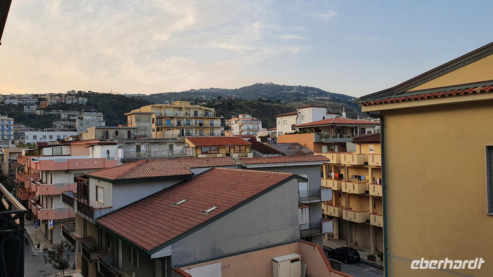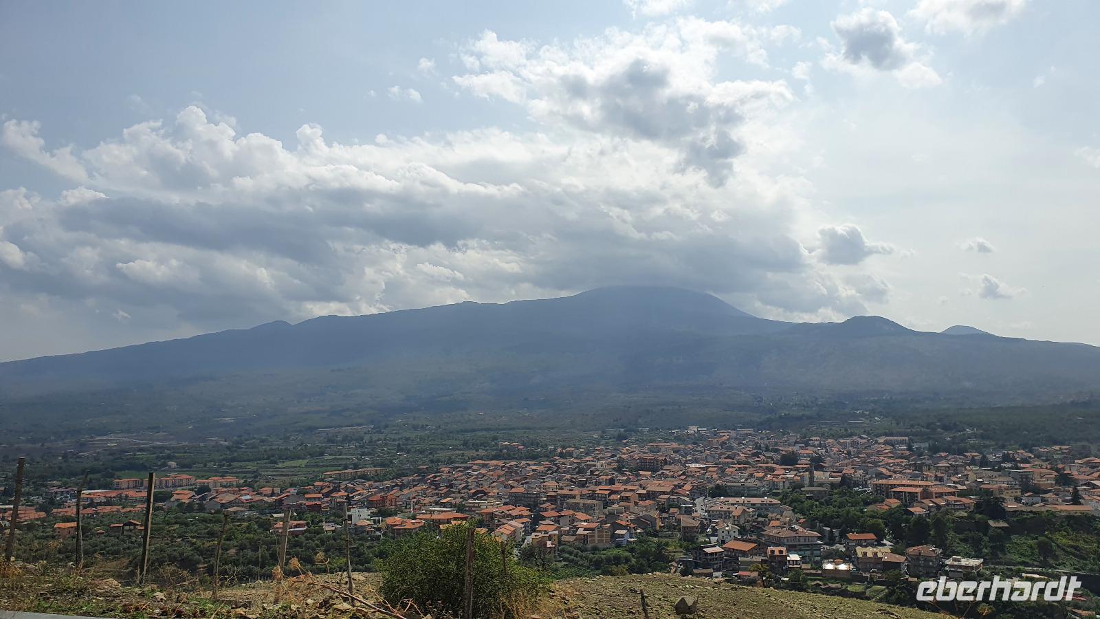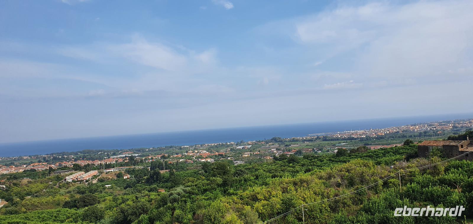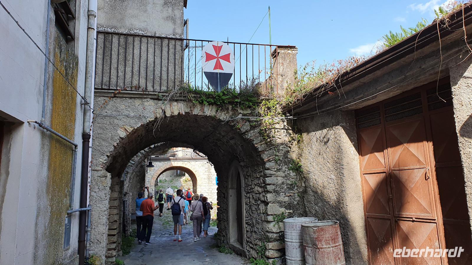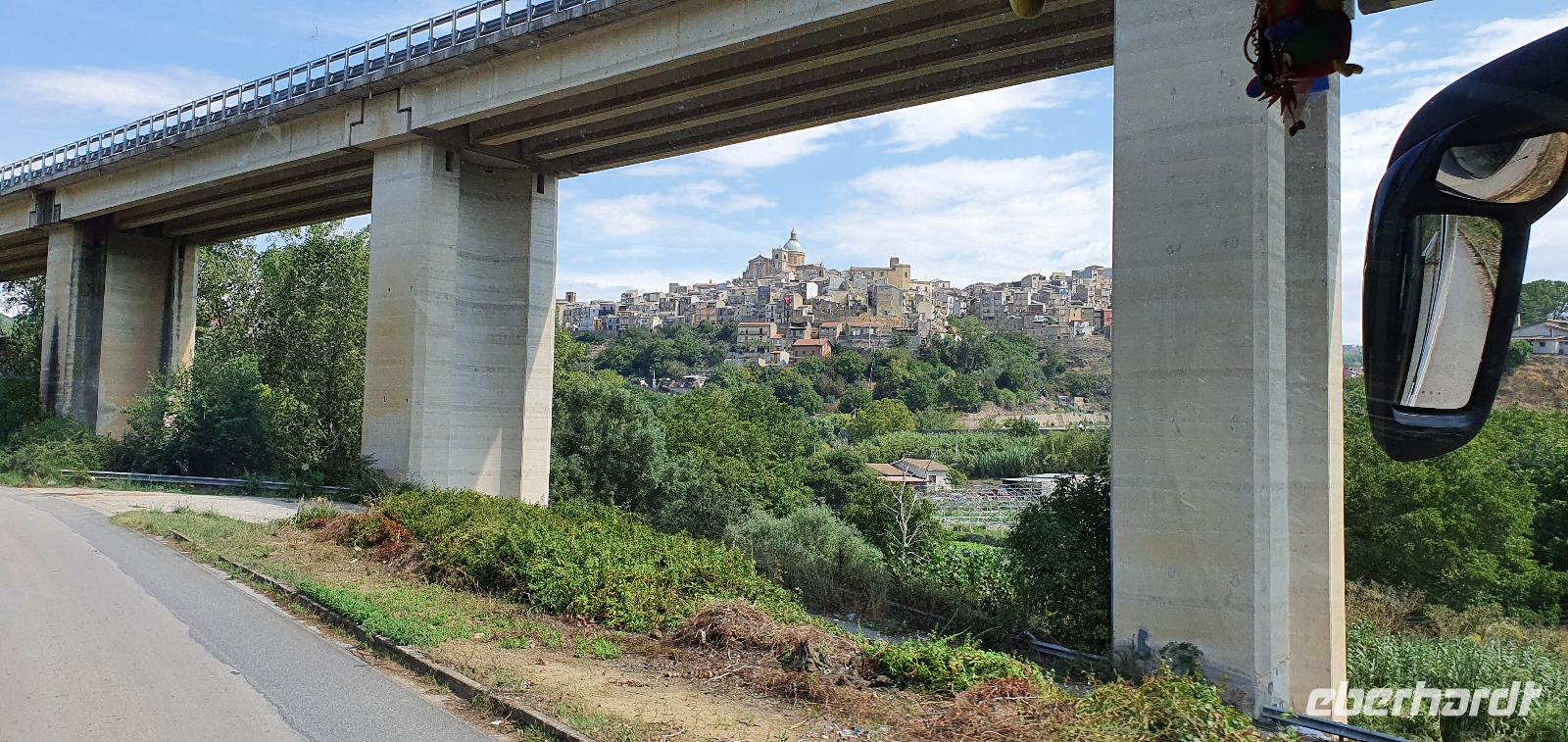 Wieder verabschieden wir uns von einem Ort, es heißt Koffer packen und zurück zur Südküste Siziliens. Dieses Mal nehmen wir aber nicht die Küstenstraße sondern fahren durchs Landesinnere. Eines der schönsten Dörfer Siziliens ist unser erstes Ziel: Montalbano Elicona. Diesen Titel hat es vor einigen Jahren verliehen bekommen- leider ist die erhoffte touristische Belebung ausgeblieben und so ziehen viele Menschen hier weg- leider. Das Leben ist nicht einfach, es braucht den guten Familienzusammenhalt, füreinander dazusein und sich zu helfen. Am Markt steigen wir aus und spazieren hinauf zur Burg. Es ist eine Normannenburg, sie beherbergt ein kleines Museum und so können wir hautnah mittelalterliche Wappen, Waffen und Kleidung erleben, aber auch Musikinstrumente aus aller Welt und aus allen Epochen. Wer möchte steigt zum Burgturm hinauf und genießt die Aussicht von hier oben. Dann geht es die verwinkelten Gassen zurück zum Bus und unsere Fahrt führt uns nun weiter ins Nebrodi Gebirge. Auf der Hochebene von Agrimusco machen wir einen Stopp und einen Ausflug zu den Megalithen. Manch einer sieht in den Felsen reine Naturformen, anderen sind sie heilige Kultstätten, wie auch immer, wir genießen den Spaziergang. Begrüßen den "Adlerfelsen" und dann endlich auch wieder den Ätna. Wieder am Bus angekommen gibt es eine kleine Überraschung: ich hatte Trauben und Cracker besorgt, dazu den versprochenen süßen Marsala und da war ja auch noch etwas Limoncello...Alle freuen sich, genießen die Kleinigkeiten und den Aufenthalt hier oben. Nun aber geht es weiter zu unserer Mittagspause: ein Agriturismo wieder- dasBorgo San Nicolae. Wir werden herzlich begrüßt und können uns erst einmal umsehen. Zum Agriturismo gehört eine Käserei und in die "Schatzkammer"- das Kühlhaus- können wir einen Blick werfen- Käselaibe reifen hier, aber auch der berühmte Schinken. Daneben die Ställe für Pferde, Federvieh... Vorbei an Bäumen voller fast reifer Esskastanien geht es zurück und dann dürfen wir schlemmen. Es gibt eine Vielzahl Antipasti, Brot, Käse, Schinken, Salami und Wein. Was für ein köstliches Mahl! Da waren sich alle einig. Rosario bereitete noch eine Überraschung für uns vor: er sammelte Kaktusfeigen und schälte sie für uns. Die werden wir morgen bekommen.hmmm. Dann geht unsere Reise weiter. An Randazzo vorbei und am ältesten Nebenkrater des Ätna, dem Moio Alcantara. Unterwegs beginnt es heftig zu regnen, es gibt ein Gewitter und dann auch einen Regenbogen. So erreichen wir die Alcantara Schlucht. Wir sind nicht sicher, ob wir aussteigen wollen- aber was solls, mehr als nass werden können wir nicht. In einer kurzen Regenpause geht es zum Aussichtspunkt. Von hier oben kann man die Schluchten sehen und einen Blick auf den Alcantara Fluss werfen, der in der Nähe von Giardini Naxos ins Meer mündet. Über tausende von Jahren hat sich der Fluss bis zu 20 Meter tief ins Lavagestein gegraben und bizarre Schluchten erschaffen. Nach diesem kurzen Stopp geht es weiter zu unserem Hotel der ersten beiden Tage hier. In Letojanni beziehen wir wieder unsere Zimmer im Antares Hotel. Das Gewitter hat uns nun eingeholt und es blitzt und donnert ordentlich. Gut, dass wir uns zwischenzeitlich gut auskennen hier, so müssen wir nicht durch die Außenanlagen und kommen trocken zum Abendessen. Und so verabschieden wir uns nach dem Essen voneinander- bis morgen.