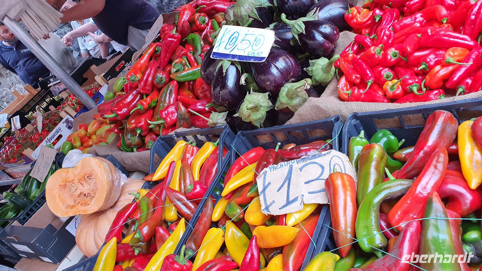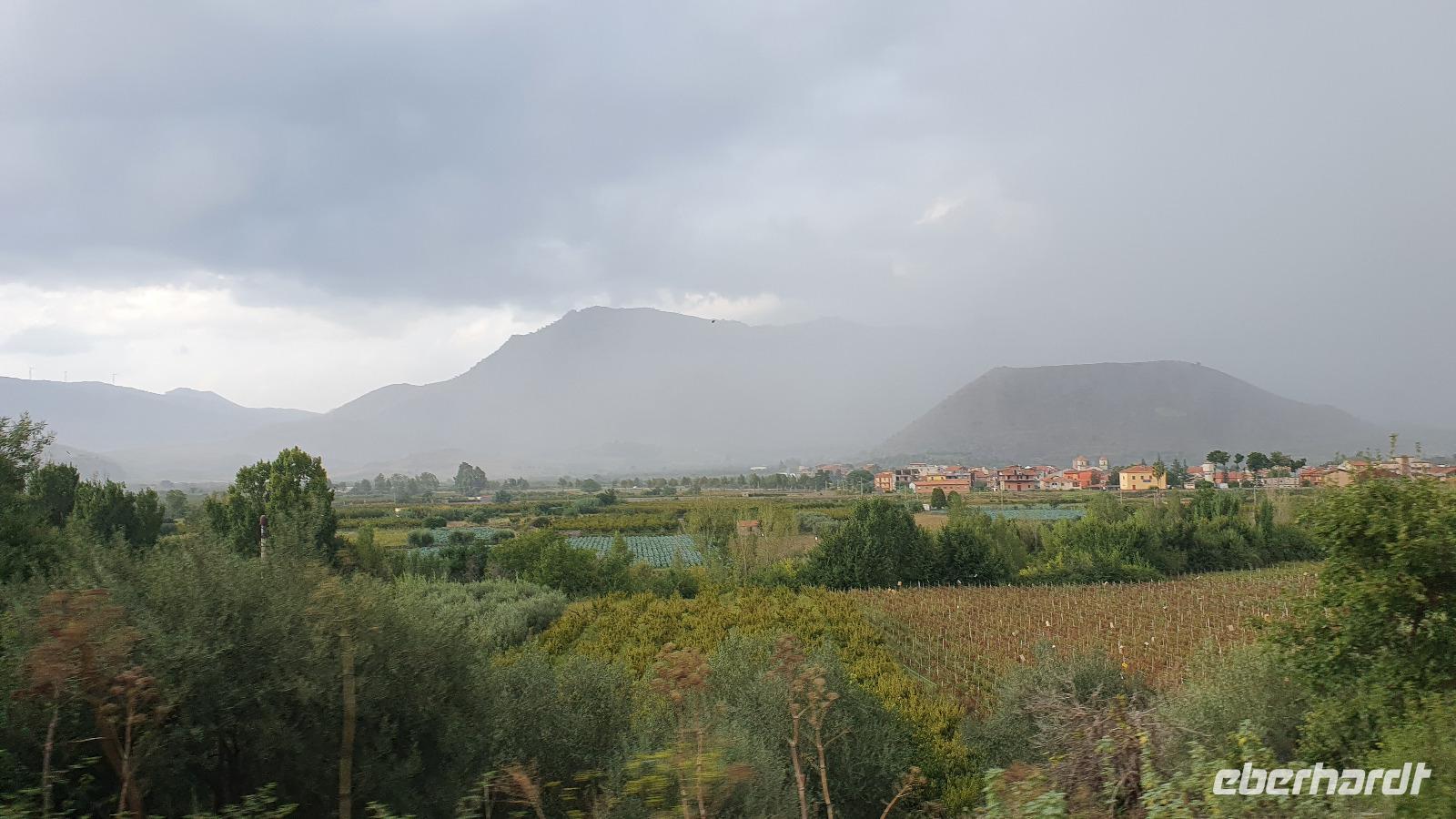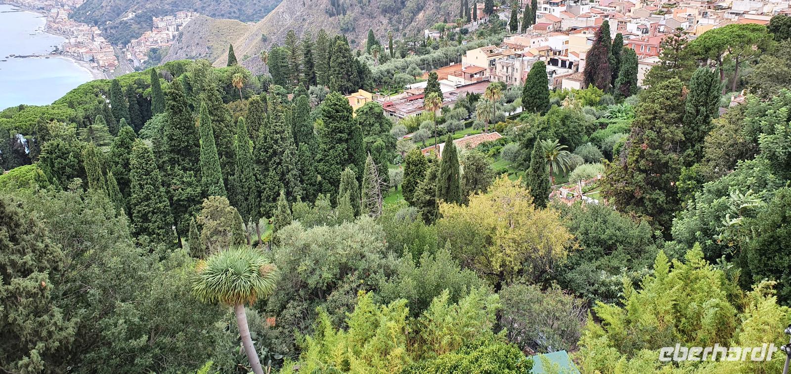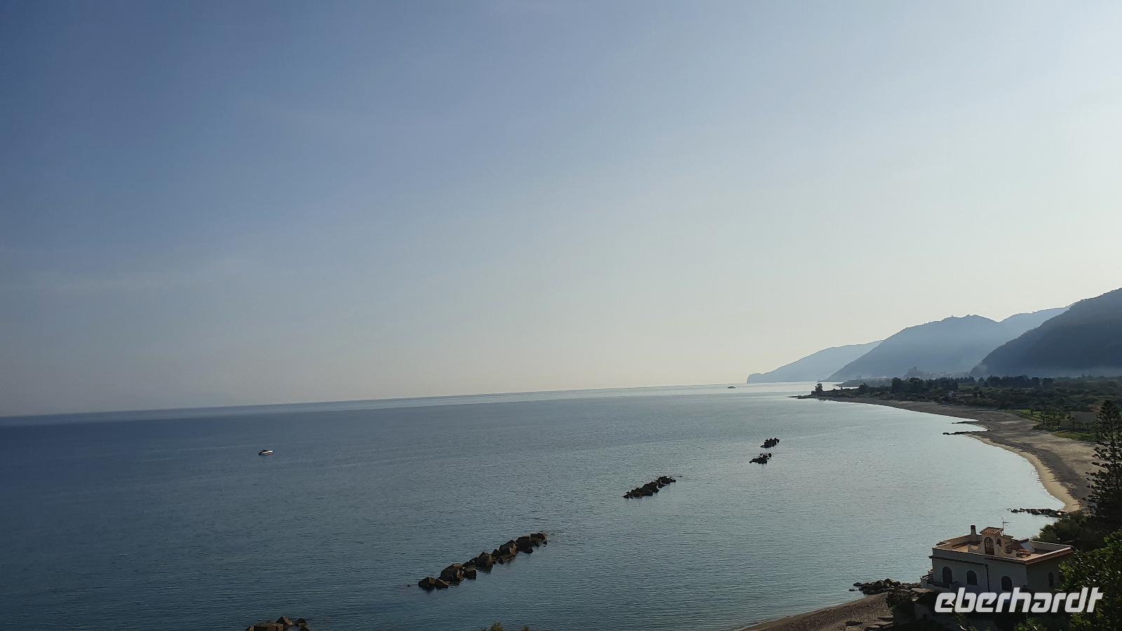 Wieder verabschieden wir uns von einem Ort, es heißt Koffer packen und zurück zur Südküste Siziliens. Dieses Mal nehmen wir aber nicht die Küstenstraße sondern fahren durchs Landesinnere. Eines der schönsten Dörfer Siziliens ist unser erstes Ziel: Montalbano Elicona. Diesen Titel hat es vor einigen Jahren verliehen bekommen- leider ist die erhoffte touristische Belebung ausgeblieben und so ziehen viele Menschen hier weg- leider. Das Leben ist nicht einfach, es braucht den guten Familienzusammenhalt, füreinander dazusein und sich zu helfen. Am Markt steigen wir aus und spazieren hinauf zur Burg. Es ist eine Normannenburg, sie beherbergt ein kleines Museum und so können wir hautnah mittelalterliche Wappen, Waffen und Kleidung erleben, aber auch Musikinstrumente aus aller Welt und aus allen Epochen. Wer möchte steigt zum Burgturm hinauf und genießt die Aussicht von hier oben. Dann geht es die verwinkelten Gassen zurück zum Bus und unsere Fahrt führt uns nun weiter ins Nebrodi Gebirge. Auf der Hochebene von Agrimusco machen wir einen Stopp und einen Ausflug zu den Megalithen. Manch einer sieht in den Felsen reine Naturformen, anderen sind sie heilige Kultstätten, wie auch immer, wir genießen den Spaziergang. Begrüßen den "Adlerfelsen" und dann endlich auch wieder den Ätna. Wieder am Bus angekommen gibt es eine kleine Überraschung: ich hatte Trauben und Cracker besorgt, dazu den versprochenen süßen Marsala und da war ja auch noch etwas Limoncello...Alle freuen sich, genießen die Kleinigkeiten und den Aufenthalt hier oben. Nun aber geht es weiter zu unserer Mittagspause: ein Agriturismo wieder- dasBorgo San Nicolae. Wir werden herzlich begrüßt und können uns erst einmal umsehen. Zum Agriturismo gehört eine Käserei und in die "Schatzkammer"- das Kühlhaus- können wir einen Blick werfen- Käselaibe reifen hier, aber auch der berühmte Schinken. Daneben die Ställe für Pferde, Federvieh... Vorbei an Bäumen voller fast reifer Esskastanien geht es zurück und dann dürfen wir schlemmen. Es gibt eine Vielzahl Antipasti, Brot, Käse, Schinken, Salami und Wein. Was für ein köstliches Mahl! Da waren sich alle einig. Rosario bereitete noch eine Überraschung für uns vor: er sammelte Kaktusfeigen und schälte sie für uns. Die werden wir morgen bekommen.hmmm. Dann geht unsere Reise weiter. An Randazzo vorbei und am ältesten Nebenkrater des Ätna, dem Moio Alcantara. Unterwegs beginnt es heftig zu regnen, es gibt ein Gewitter und dann auch einen Regenbogen. So erreichen wir die Alcantara Schlucht. Wir sind nicht sicher, ob wir aussteigen wollen- aber was solls, mehr als nass werden können wir nicht. In einer kurzen Regenpause geht es zum Aussichtspunkt. Von hier oben kann man die Schluchten sehen und einen Blick auf den Alcantara Fluss werfen, der in der Nähe von Giardini Naxos ins Meer mündet. Über tausende von Jahren hat sich der Fluss bis zu 20 Meter tief ins Lavagestein gegraben und bizarre Schluchten erschaffen. Nach diesem kurzen Stopp geht es weiter zu unserem Hotel der ersten beiden Tage hier. In Letojanni beziehen wir wieder unsere Zimmer im Antares Hotel. Das Gewitter hat uns nun eingeholt und es blitzt und donnert ordentlich. Gut, dass wir uns zwischenzeitlich gut auskennen hier, so müssen wir nicht durch die Außenanlagen und kommen trocken zum Abendessen. Und so verabschieden wir uns nach dem Essen voneinander- bis morgen.