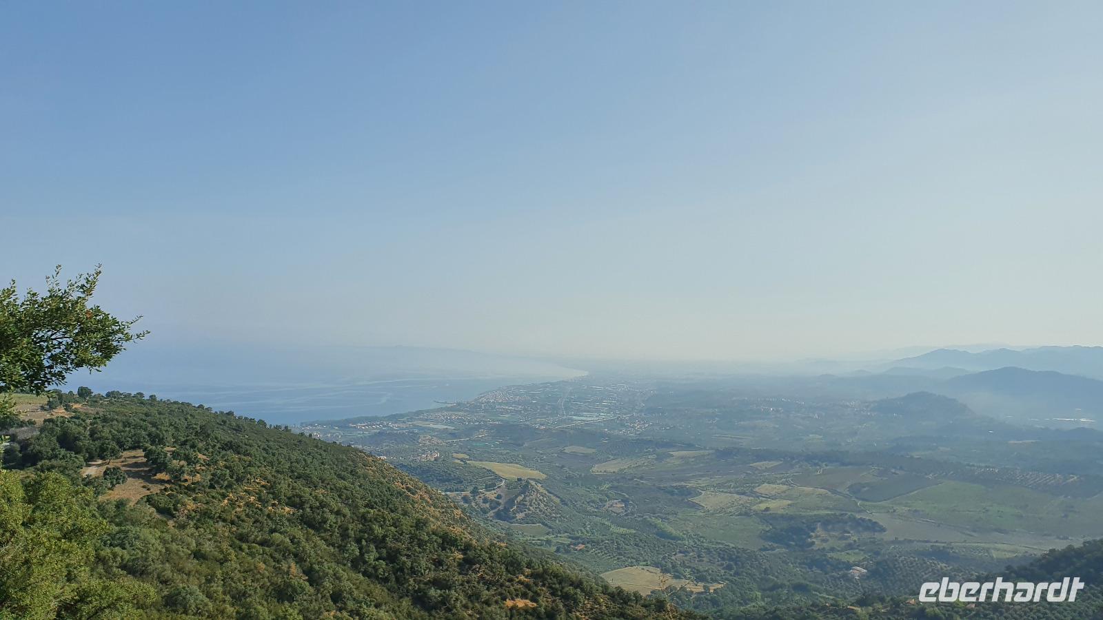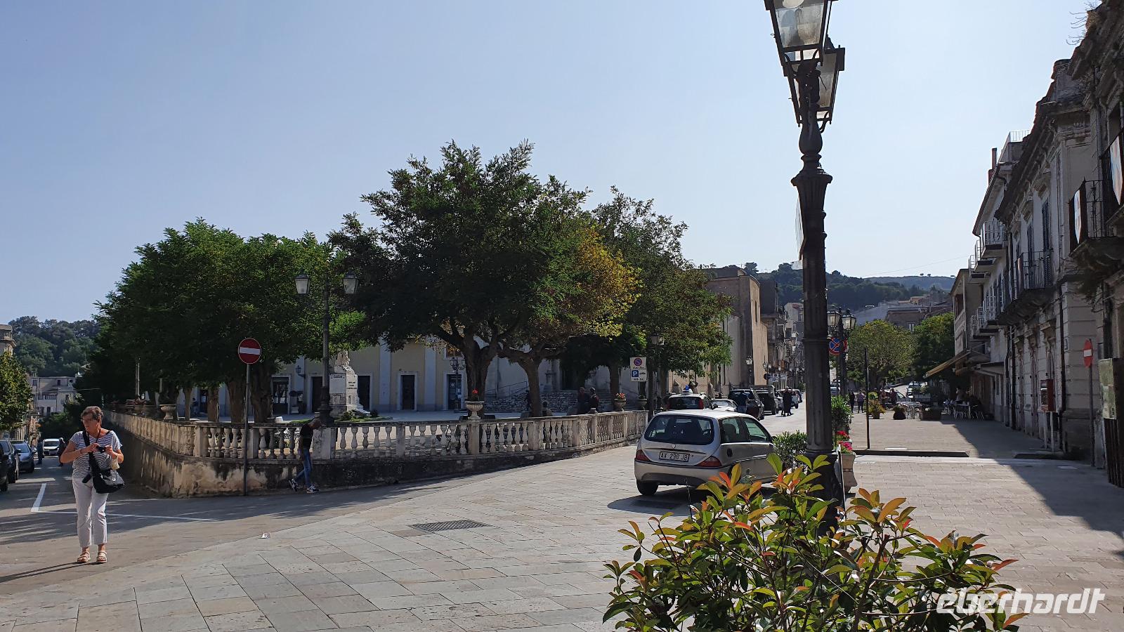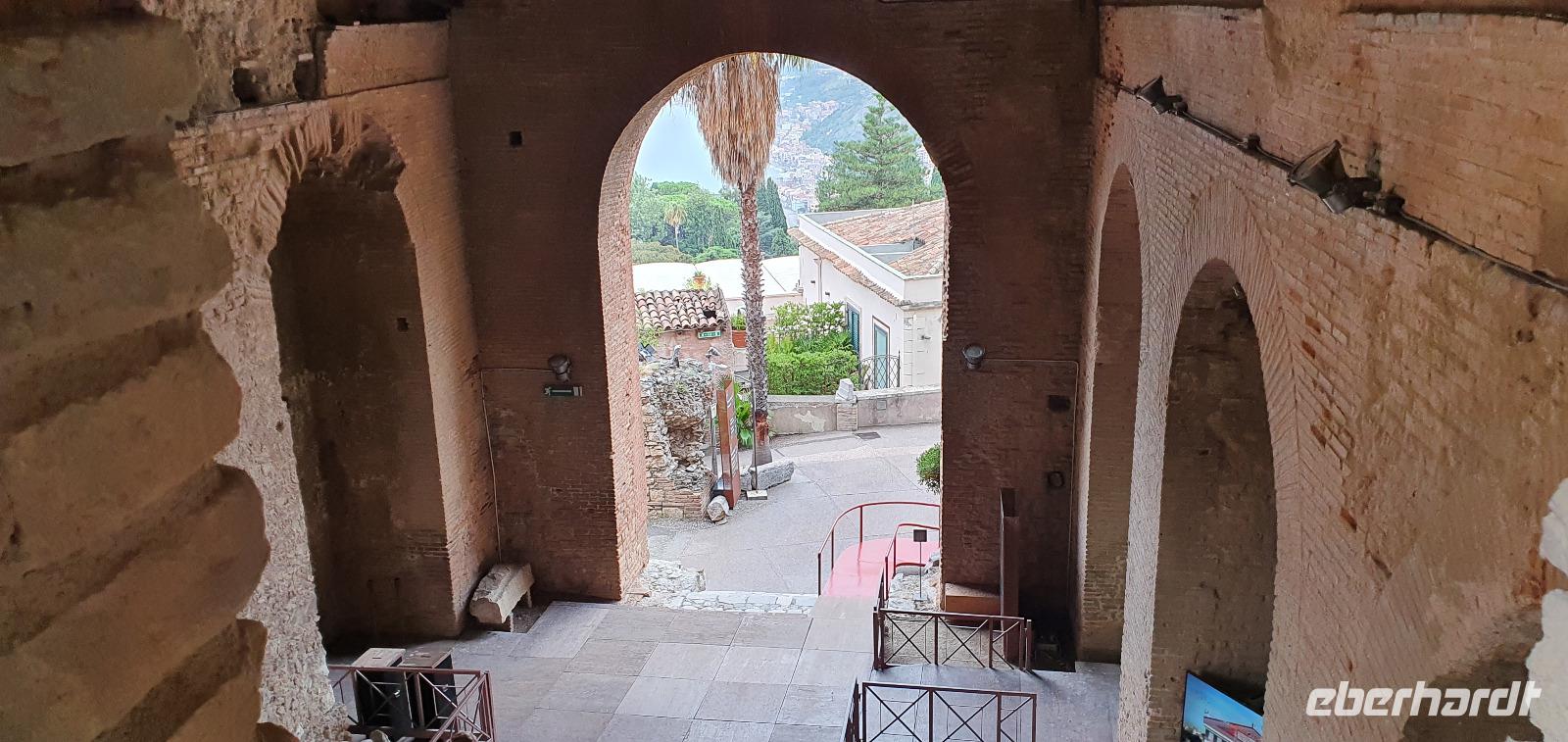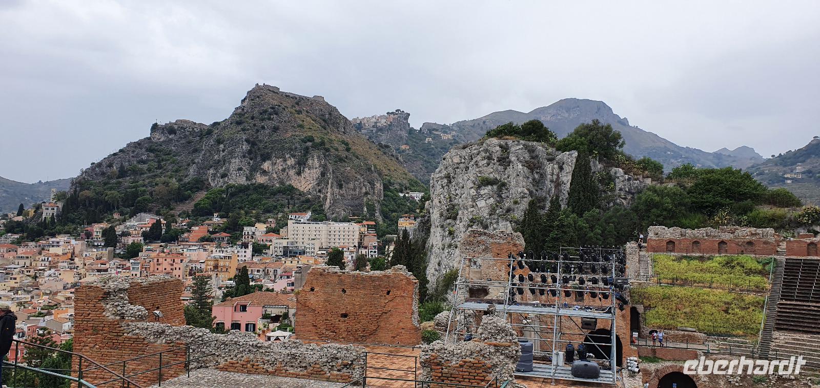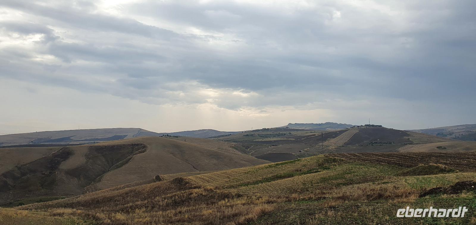 Wieder verabschieden wir uns von einem Ort, es heißt Koffer packen und zurück zur Südküste Siziliens. Dieses Mal nehmen wir aber nicht die Küstenstraße sondern fahren durchs Landesinnere. Eines der schönsten Dörfer Siziliens ist unser erstes Ziel: Montalbano Elicona. Diesen Titel hat es vor einigen Jahren verliehen bekommen- leider ist die erhoffte touristische Belebung ausgeblieben und so ziehen viele Menschen hier weg- leider. Das Leben ist nicht einfach, es braucht den guten Familienzusammenhalt, füreinander dazusein und sich zu helfen. Am Markt steigen wir aus und spazieren hinauf zur Burg. Es ist eine Normannenburg, sie beherbergt ein kleines Museum und so können wir hautnah mittelalterliche Wappen, Waffen und Kleidung erleben, aber auch Musikinstrumente aus aller Welt und aus allen Epochen. Wer möchte steigt zum Burgturm hinauf und genießt die Aussicht von hier oben. Dann geht es die verwinkelten Gassen zurück zum Bus und unsere Fahrt führt uns nun weiter ins Nebrodi Gebirge. Auf der Hochebene von Agrimusco machen wir einen Stopp und einen Ausflug zu den Megalithen. Manch einer sieht in den Felsen reine Naturformen, anderen sind sie heilige Kultstätten, wie auch immer, wir genießen den Spaziergang. Begrüßen den "Adlerfelsen" und dann endlich auch wieder den Ätna. Wieder am Bus angekommen gibt es eine kleine Überraschung: ich hatte Trauben und Cracker besorgt, dazu den versprochenen süßen Marsala und da war ja auch noch etwas Limoncello...Alle freuen sich, genießen die Kleinigkeiten und den Aufenthalt hier oben. Nun aber geht es weiter zu unserer Mittagspause: ein Agriturismo wieder- dasBorgo San Nicolae. Wir werden herzlich begrüßt und können uns erst einmal umsehen. Zum Agriturismo gehört eine Käserei und in die "Schatzkammer"- das Kühlhaus- können wir einen Blick werfen- Käselaibe reifen hier, aber auch der berühmte Schinken. Daneben die Ställe für Pferde, Federvieh... Vorbei an Bäumen voller fast reifer Esskastanien geht es zurück und dann dürfen wir schlemmen. Es gibt eine Vielzahl Antipasti, Brot, Käse, Schinken, Salami und Wein. Was für ein köstliches Mahl! Da waren sich alle einig. Rosario bereitete noch eine Überraschung für uns vor: er sammelte Kaktusfeigen und schälte sie für uns. Die werden wir morgen bekommen.hmmm. Dann geht unsere Reise weiter. An Randazzo vorbei und am ältesten Nebenkrater des Ätna, dem Moio Alcantara. Unterwegs beginnt es heftig zu regnen, es gibt ein Gewitter und dann auch einen Regenbogen. So erreichen wir die Alcantara Schlucht. Wir sind nicht sicher, ob wir aussteigen wollen- aber was solls, mehr als nass werden können wir nicht. In einer kurzen Regenpause geht es zum Aussichtspunkt. Von hier oben kann man die Schluchten sehen und einen Blick auf den Alcantara Fluss werfen, der in der Nähe von Giardini Naxos ins Meer mündet. Über tausende von Jahren hat sich der Fluss bis zu 20 Meter tief ins Lavagestein gegraben und bizarre Schluchten erschaffen. Nach diesem kurzen Stopp geht es weiter zu unserem Hotel der ersten beiden Tage hier. In Letojanni beziehen wir wieder unsere Zimmer im Antares Hotel. Das Gewitter hat uns nun eingeholt und es blitzt und donnert ordentlich. Gut, dass wir uns zwischenzeitlich gut auskennen hier, so müssen wir nicht durch die Außenanlagen und kommen trocken zum Abendessen. Und so verabschieden wir uns nach dem Essen voneinander- bis morgen.