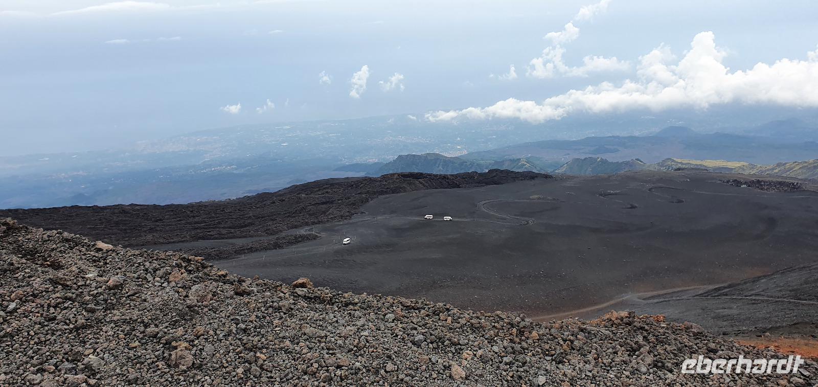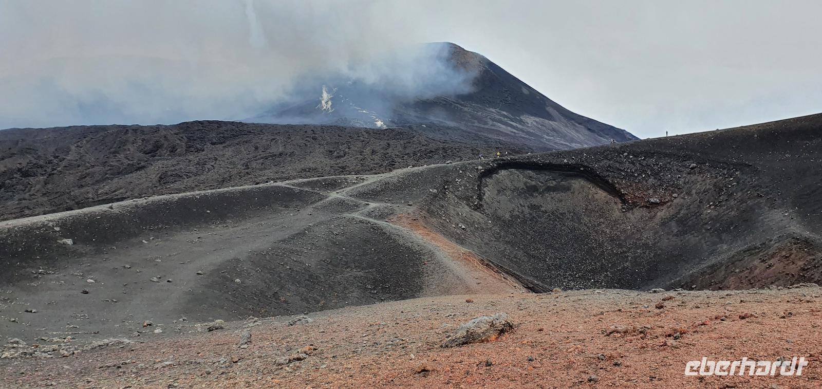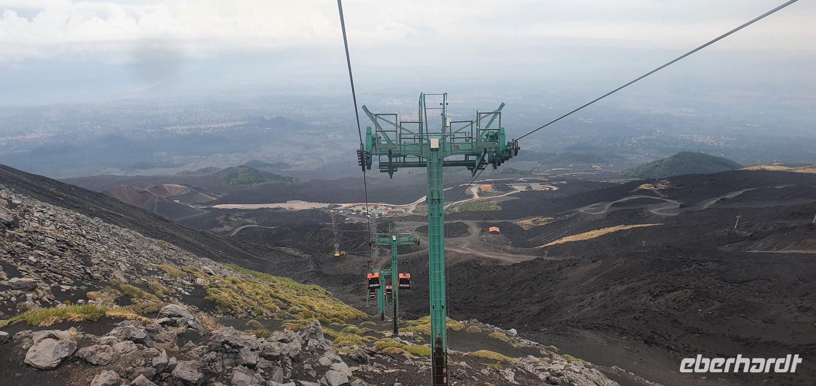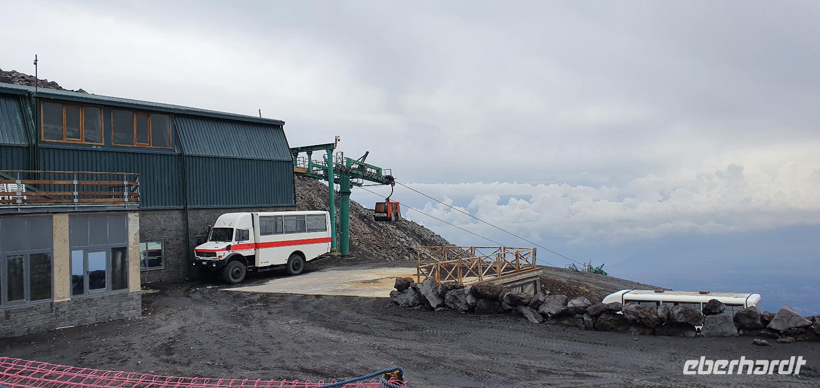 Entwarnung am Morgen: alle haben ihre Zimmer wiedergefunden und auch den Weg zum Restaurant zum Frühstück ;-)aber etwas abenteuerlich war es schon. Abenteuerlich geht es auch weiter: Wir brechen zeitig auf und starten zum Ätna. Unterwegs erzählt uns Renate vom Leben am und mit dem Vulkan. Angst- nein, Respekt-ja. Kein Sizilianer, so sagt sie, würde wegen des Ätna seine Heimatinsel verlassen. Wenn, dann würden wirtschaftliche Gründe der Auslöser sein, aber niemals der Ätna. Die erkaltete Lava wandelt den Boden hier nach Jahren in fruchtbaren, ertragreichen Boden um und so gedeihen Zitronen, Orangen, Nüsse und Esskastanien. Berühmt ist der Honig von den Zitronen- und Orangenblüten, in Zafferana wird dazu eigens einmal im Jahr ein Fest gefeiert. An der Talstation angekommen lösen wir unsere Tickets und mit der Seilbahn geht es hinauf auf 2200 Meter Höhe. Ein toller Blick auf die Silvestri-Krater von hier oben! Links und rechts sehen wir die Ski-Lifte, die im Winter hier gern genutzt werden. Schnee bleibt bis in den April liegen, so erzählt Renate und da ist der Ätna dann beliebtes Skigebiet. Allerdings ist die Auffahrt ziemlich beschwerlich: seit der Naturschutzpark Ätna eingerichtet wurde wird auch nicht mehr gestreut- da braucht es dann doch schon Ketten an den Rädern. Noch aber liegt kein Schnee- wie nah dran wir sind, sollten wir noch erleben. Mit den Unimogs geht es nämlich noch weiter nach oben- bis auf 3000 Meter! Francesco ist unser Guide. Er führt uns zu den Kratern des Ausbruchs von 2002. Es pfeift ganz ordentlich und mit gerade mal 6°C bewegen wir uns deutlich Richtung Frost. Das hält uns natürlich nicht davon ab, diese Krater zu erkunden. Ganz nah heran dürfen wir und können bis in die Tiefe schauen...was für ein Gefühl! Auch den zweiten Krater des Ausbruchs können wir ganz nah erleben, rot gefärbt vom Eisen oder gelb vom Schwefel- ein tolles Bild. Dazu der Ausblick Richtung Catania oder Bucht von Messina- umwerfend. Wir umrunden die Krater weiter und da macht sich nun auch die Höhe bemerkbar. Scheinbar leichte Anstiege erfodern doch ordentlich Puste. Zumal es an der Ostseite richtig stürmt und eisekalt ist. Da erscheint es wie ein Wunder, dass in nur wenigen Zentimetern Tiefe die Erde warm und angenehm ist. Der Hauptkrater des Ätna zeigt uns derweil, wie aktiv er ist: er schickt Wasserdampf-Wolken in den Himmel und an seinen Flanken sieht man weitere kleine Risse, aus denen Wasserdampf quillt. Alle sind froh, dieses Abenteuer miterlebt zu haben. Voller Respekt für den Berg und mit einem tollen Gefühl fahren wir mit den Unimogs wieder zur Seilbahnstation zurück. Hier ist noch etwas Zeit und dann geht es retour zur Talstation. Die Seilbahn bringt uns hinunter und hier wartet Rosario schon mit dem Bus auf uns. Bevor es aber losgeht gibt es noch eine kleine Überraschung: Ätna-Limoncello zum probieren. Wo, wenn nicht hier, sollten wir den probieren? Immerhin sollen am Ätna die leckersten Zitronen wachsen. Dann geht es zu unserer Mittagspause nach Giardini Naxos. Naxos war die erste griechische Siedlung auf Sizilien, schon mehr als 700 Jahre vor Christus gründeten sie hier diesen Ort. Es nieselte vor sich hin und so entschieden wir uns für Tische im Inneren. Spezialität des Hauses waren die gegrillten Schwertfischröllchen und hausgemachte Pasta, die mußten wir natürlich probieren. Wer den Regen nicht scheute genoss noch ein wenig das Wellenspiel, wir waren direkt am Hafen und die Wellen schlugen gegen die Felsen. Meditation pur. Doch schon hieß es Aufbruch: unser neues Ziel ist Taormina. Es soll die schönste Stadt Siziliens sein. Anmutig schmiegt sie sich an den Felsen und Rosario bringt uns mit dem Bus die Küstenstraße entlang hinauf. Am Busbahnhof steigen wir aus und spazieren gemeinsam zur Porta Messina. Hier beginnt der Corso Umberto- die Flaniermeile schlechthin bis zur Porta Catania. Wir biegen aber erst einmal zum griechisch-römischen Theater ab. Nach dem Covid-Prozedere mit Temperatur messen und Maske-tragen gingen wir mit Renate hinauf zu den Zuschauerrängen. Hier konnten wir die Ausmaße erst richtig erkennen. Trotzdem wurde es nicht künstlich vergrößert, vielmehr wurden die natürlichen Gegebenheiten ausgenutzt. Und so thront es hoch oben über der Stadt und gibt wundervolle Ausblicke auf die Buchten und bis nach Kalabrien frei- wenn es nicht gerade regnet (wie bei uns). So können wir den berühmten Blick auf den Ätna auch nur erahnen. So steigen wir wieder hinunter und werfen noch einen Blick auf die Filme, die anschaulich die Geschichte des Theaters wiedergeben. Nun ist Zeit, die Stadt individuell zu erkunden, zu bummeln, einen Caffee zu trinken oder das eine oder andere Souvenir zu erstehen. Viel zu schnell ist unsere Zeit hier vorbei und wir treffen uns am Bus wieder. Rosario bringt uns zu unserem Hotel und wir probieren gleich die Fahrstühle nach oben, die wir morgen früh auch nutzen wollen. So ein Schräg-Fahrstuhl ist schon etwas ganz besonderes. Und einen Hotelkomplex über mehrere Ebenen und Etagen haben wir bisher auch noch nicht gesehen. Wohlbehalten kommen alle in ihren Zimmern an und ein gemeinsames Abendessen beschließt den Tag für heute.