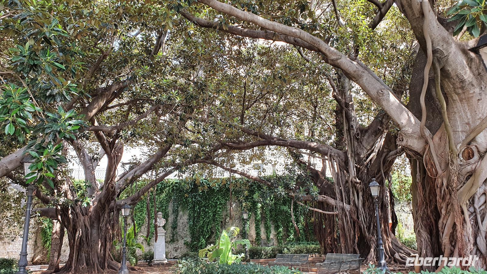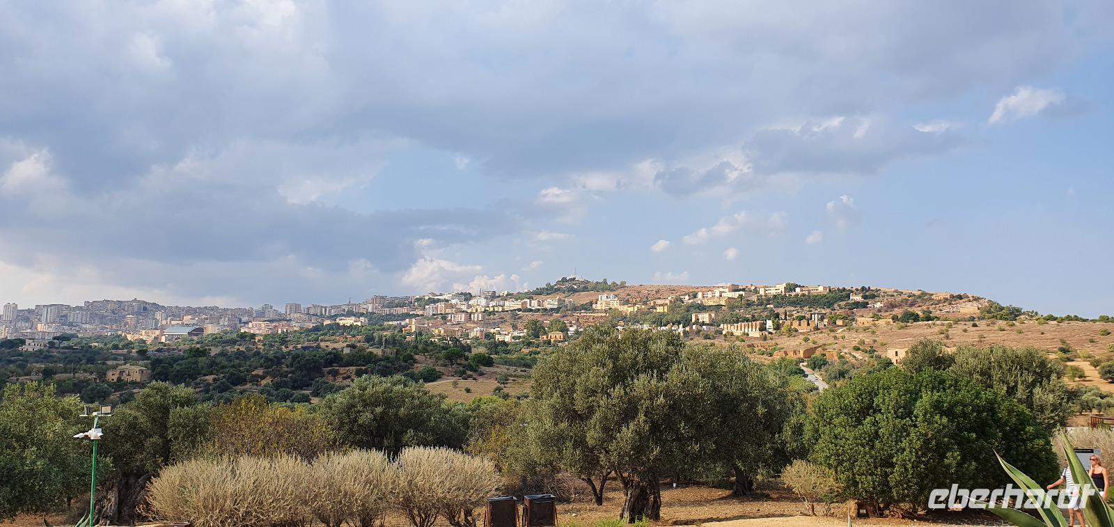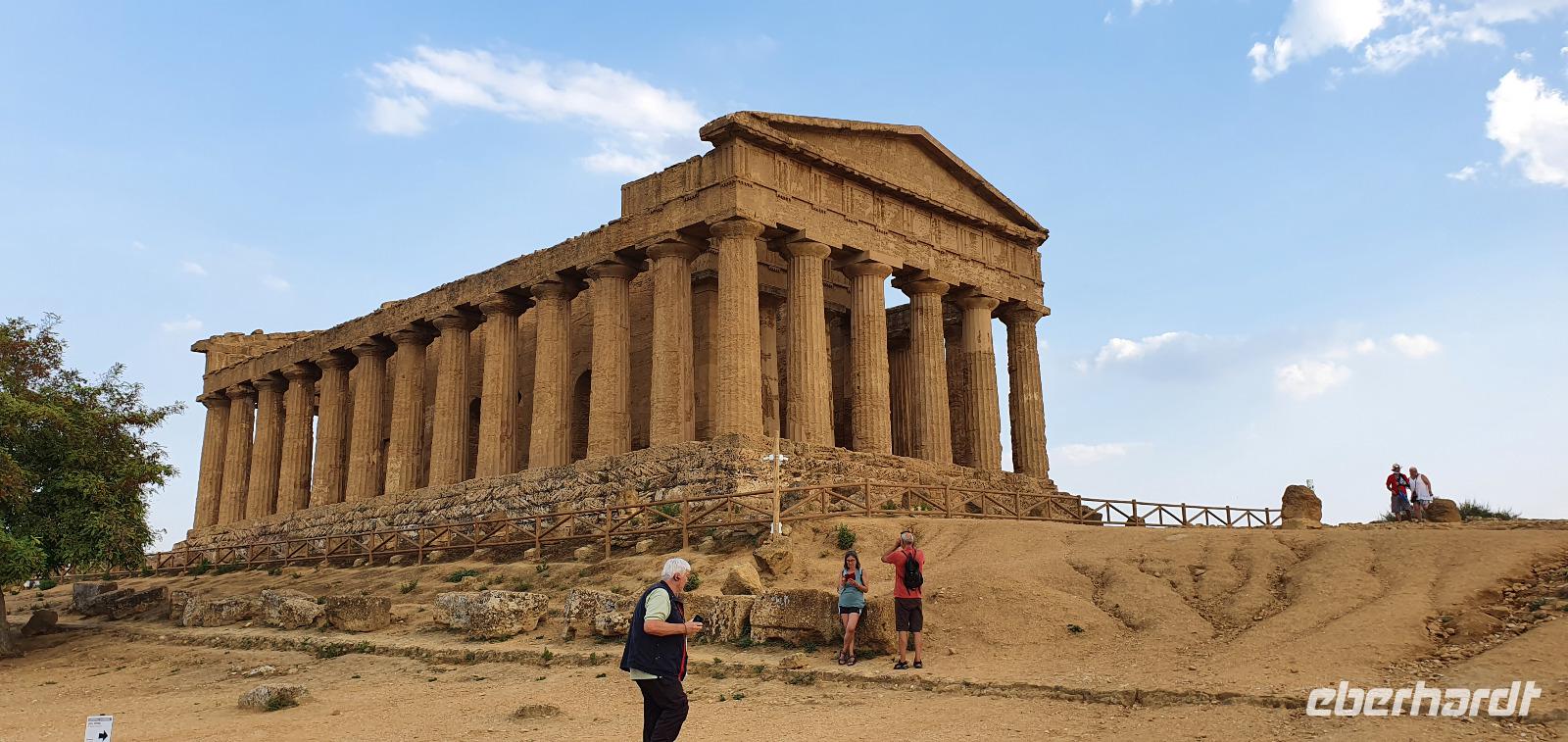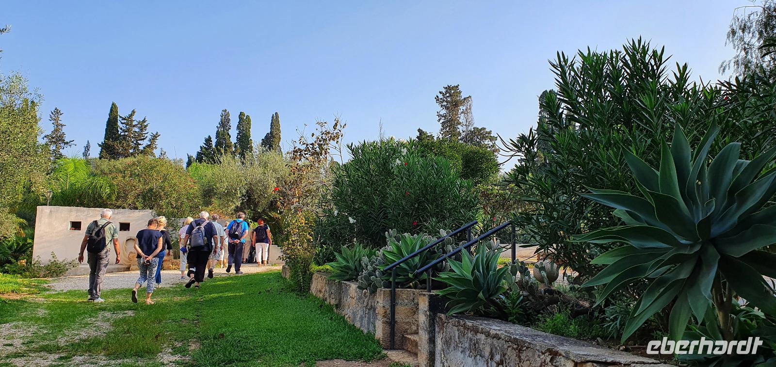 Zeitig geht es heute morgen los. Entsprechend ruhig ist es noch im Hotel. Wie sind (wieder) die ersten am Frühstücks-Buffett und wir können danach ungestört die Fahrstühle nach unten nehmen. Hier wartet Rosario mit dem Bus auf uns und auch der Kofferservice funktioniert reibungslos. Unsere Rundreise kann weitergehen. Sie führt uns heute ins Landesinnere nach Piazza Armerina. Hier wurden 1926 bei Bauarbeiten Mosaiken gefunden, die alles bisherige übertrafen. Nach und nach wurde eine römische Villa freigelegt, die nach einem Erdrutsch begraben worden war. Die Mosaiken wurden dadurch quasi konserviert- was für ein Glück für uns heute. Mehr als 3000 qm Fussbodenmosaik kann man jetzt bewundern. Die UNESCO hat die Villa Romana in ihr Weltkulturerbe aufgenommen und so werden große Anstrengungen unternommen, die Mosaiken zu schützen. Auf eigens konstruierten Plattformen können wir die Mosaiken in den einzelnen Räumen und Hallen anschauen. Renate erläutert uns die einzelnen Szenen, Besonderheiten wie den Einsatz von Porphyrsteinchen, die wunderbar dunkelrot leuchten. Jedes Zimmer hat seine eigene Charakteristik, da sind die Gästezimmer mit Ornamenten, ein anderes mit der sogenannten "Kleinen Jagd"- Darstellungen von Jagdszenen auf Tiere, die es einmal auf Sizilien gab wie Wölfe oder Wildschweine. Und dann ist da die "Große Jagd"- mehr als 70 Meter Mosaike zeigen das Fangen und Verladen wilder Tiere Afrikas. Absolut beeindruckend. Und so viel mehr gibt es zu entdecken: die berühmten Bikini-Mädchen in ihrem Fünfkampf oder die Kinderzimmer mit den detailreichen Mosaiken- deutlich zu sehen, dass Mathe auch früher schon keinen Spass gemacht hat. Oder die Darstellung des Polyphem, der von Odysseus überlistet wird, die Herrenzimmer...Ein Rundgang draußen schließt unseren Besuch ab, ein Erdbeerbaum wird bestaunt und dann gehen wir durch die Souvenirstände zurück zum Bus. Er bringt uns in die Stadt und Rosario fährt auch durch die engsten Gassen souverän durch. Bei "da Toto" genießen wir ein leckeres Mittagessen bevor es zum nächsten Highlight geht: dem Tal der Tempel in Agrigent. Wir genießen die vorbeiziehende Landschaft. Getreidefelder haben nun die Zitrusplantagen abgelöst. Wir lernen ein neues Gesicht Siziliens kennen. Dann können wir schon von weitem hoch oben die Tempel sehen. Sie schauen aufs Meer und scheinen zu sagen- wage nicht, in feindlicher Absicht zu kommen- sieh, wozu unsere Erbauer fähig sind! Rosario fährt uns hinauf, durch eine Allee aus Pinienbäumen und dann können wir bereits den Tempel der Hera ausmachen. Bevor wir diesen aber besichtigen können heißt es: Sicherheitskontrolle wie am Flughafen. Die passieren wir problemlos, lösen unsere Tickets und dann kann es losgehen. Auf unserem Spaziergang zum Tempel werden wir von Hera standesgemäß begrüßt: mit einem deutlichen Grollen grüßt ein vorbeiziehendes Gewitter. Wir müssen schmunzeln und einige hegen den Verdacht, dass Zeus wohl wieder einmal untreu geworden war. Renate erzählt uns zur Geschichte und Architektur des Tempels bevor sie uns den ältesten Olivenbaum Siziliens zeigt. Manche sagen, er sei mehr als 2000 Jahre alt, andere wieder, es seien nicht mehr als 900- was solls, es ist ein Prachtexemplar. Dann spazieren wir weiter, eigentlich ist es ja kein Tal sondern eine Hochebene, die wir hinablaufen. An der ehemaligen Stadtmauer geht es ein Stück entlang, diese wurde aus dem vorhandenen Felsen gehauen und ergänzt. Später wurde sie als Bestattungsplatz genutzt, Höhlen erinnern daran. Der nächste, der Concordia-Tempel, ist der am besten erhaltene in ganz Sizilien. Im 6. Jahrhundert wurde er in eine Kirche umgewandelt und teilweise zugemauert, erst im 18. Jahrhundert wurde er in seinen ursprünglichen Zustand zurück versetzt und war dadurch quasi konserviert. Vor dem Tempel liegt eine riesige Bronze-Figur: Ikarus mit zerstörten Flügeln. Ein polnischer Bildhauer hat ihn erschaffen und schließlich dem Tal der Tempel geschenkt. Ein überaus beliebtes Fotomotiv! Im angrenzenden Olivenhain begegnen wir ungewöhnlichen Ziegen. Mit ihren gedrehten Hörnern sind sie eine eigenständige Rasse, so erklärt es uns Renate. Dann sehen wir tiefen Fuhrrinnen im Fels- hier haben sich im Laufe der Zeit die Wagenräder eingegraben, die die Wagen mit den Steinen transportierten. So tiefe Furchen- wieviele Tonnen müssen da wohl von den Stieren gezogen worden sein? Wir schauen uns den Herakles-Tempel an und auch den Tempel des Zeus, ein riesiger Telamon liegt davor (als Kopie, das Original ist im Museum), diese Figuren trugen das Dachgebälk und waren fast 8 Meter groß. Es soll der größte aller Tempel hier gewesen sein. Dann aber beenden wir unseren Besuch hier. Es ist schon später Nachmittag und wir müssen noch eine ordentliche Strecke zu unserem Agriturismo fahren, in dem wir die nächsten beiden Nächte verbringen werden. Es geht am Meer entlang und mit der untergehenden Sonne erreichen wir das Case di Latomie. Michele begrüßt uns feundlich, wir bekommen unsere Zimmerschlüssel und treffen uns dann zum Abendessen wieder. Hier können wir als erstes das preisgekrönte Olivenöl des Agriturismo probieren, dem folgen leckere Antipasti, Pasta und schließlich Schwertfisch mit Salat. Ein toller Abschluss eines tollen Tages.