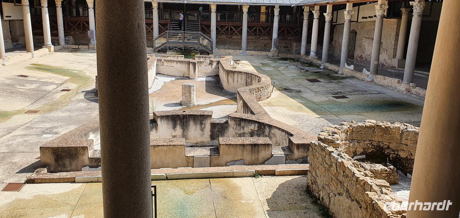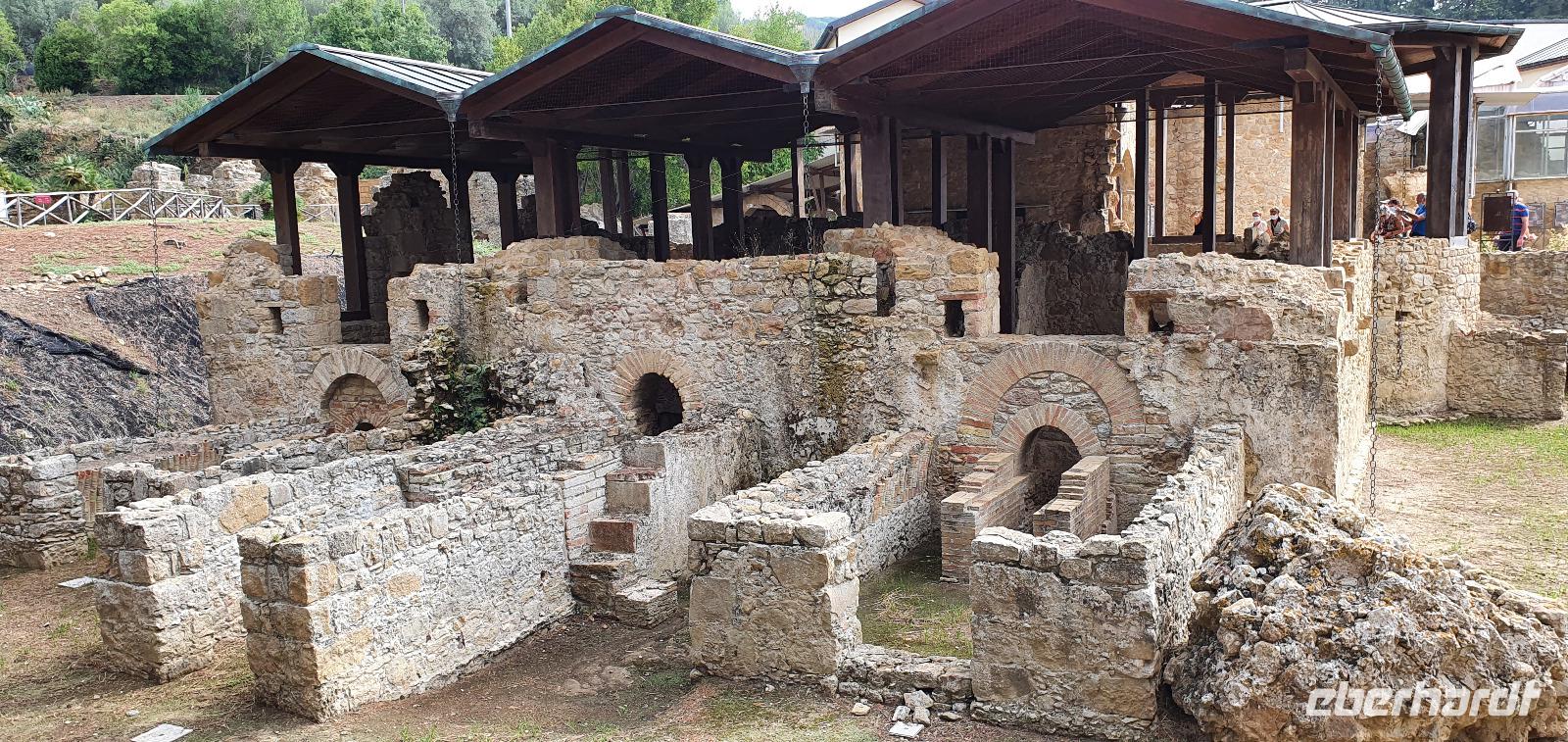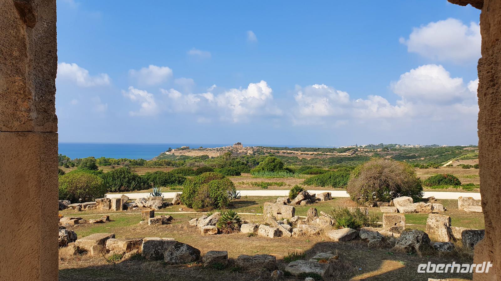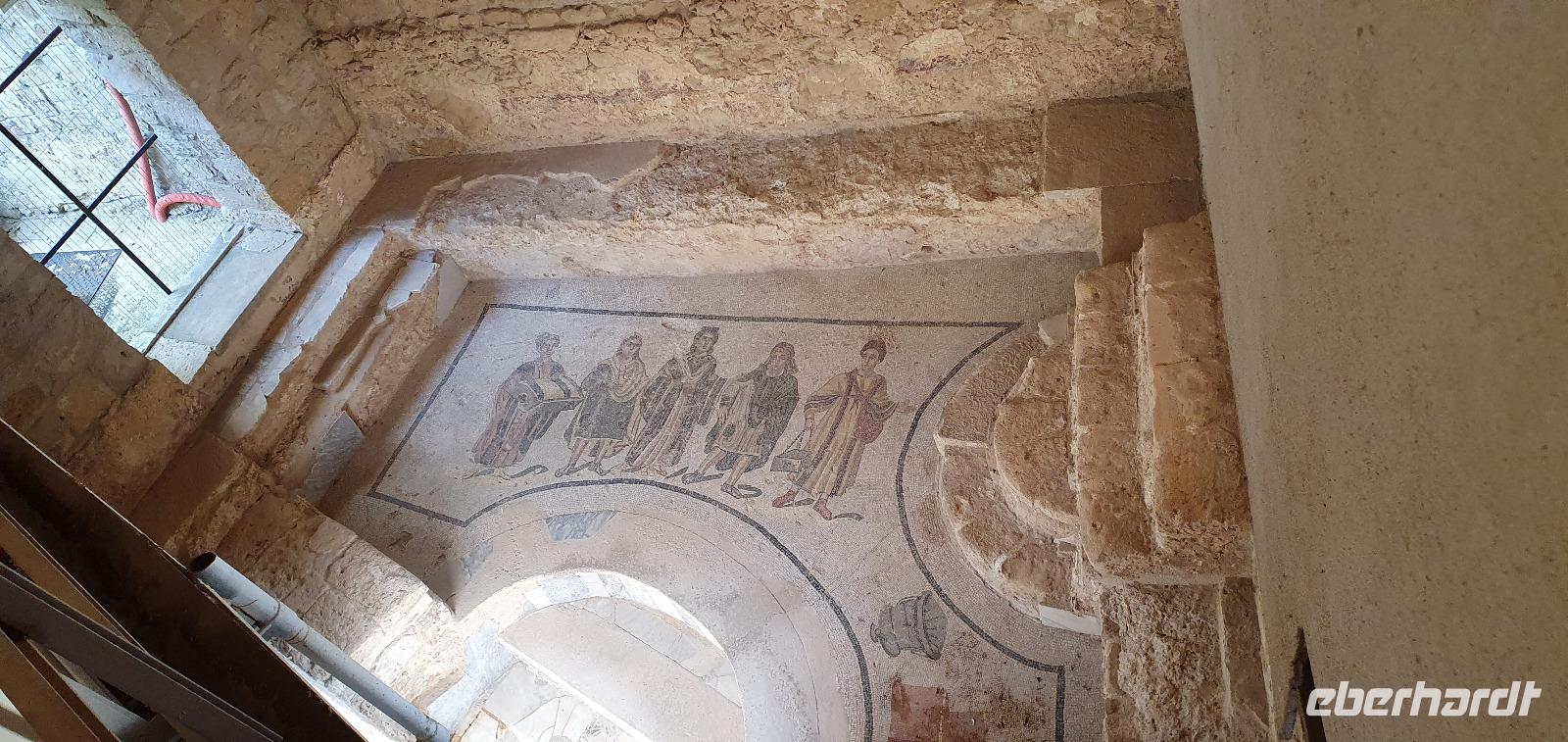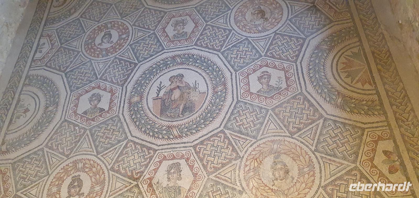 Zeitig geht es heute morgen los. Entsprechend ruhig ist es noch im Hotel. Wie sind (wieder) die ersten am Frühstücks-Buffett und wir können danach ungestört die Fahrstühle nach unten nehmen. Hier wartet Rosario mit dem Bus auf uns und auch der Kofferservice funktioniert reibungslos. Unsere Rundreise kann weitergehen. Sie führt uns heute ins Landesinnere nach Piazza Armerina. Hier wurden 1926 bei Bauarbeiten Mosaiken gefunden, die alles bisherige übertrafen. Nach und nach wurde eine römische Villa freigelegt, die nach einem Erdrutsch begraben worden war. Die Mosaiken wurden dadurch quasi konserviert- was für ein Glück für uns heute. Mehr als 3000 qm Fussbodenmosaik kann man jetzt bewundern. Die UNESCO hat die Villa Romana in ihr Weltkulturerbe aufgenommen und so werden große Anstrengungen unternommen, die Mosaiken zu schützen. Auf eigens konstruierten Plattformen können wir die Mosaiken in den einzelnen Räumen und Hallen anschauen. Renate erläutert uns die einzelnen Szenen, Besonderheiten wie den Einsatz von Porphyrsteinchen, die wunderbar dunkelrot leuchten. Jedes Zimmer hat seine eigene Charakteristik, da sind die Gästezimmer mit Ornamenten, ein anderes mit der sogenannten "Kleinen Jagd"- Darstellungen von Jagdszenen auf Tiere, die es einmal auf Sizilien gab wie Wölfe oder Wildschweine. Und dann ist da die "Große Jagd"- mehr als 70 Meter Mosaike zeigen das Fangen und Verladen wilder Tiere Afrikas. Absolut beeindruckend. Und so viel mehr gibt es zu entdecken: die berühmten Bikini-Mädchen in ihrem Fünfkampf oder die Kinderzimmer mit den detailreichen Mosaiken- deutlich zu sehen, dass Mathe auch früher schon keinen Spass gemacht hat. Oder die Darstellung des Polyphem, der von Odysseus überlistet wird, die Herrenzimmer...Ein Rundgang draußen schließt unseren Besuch ab, ein Erdbeerbaum wird bestaunt und dann gehen wir durch die Souvenirstände zurück zum Bus. Er bringt uns in die Stadt und Rosario fährt auch durch die engsten Gassen souverän durch. Bei "da Toto" genießen wir ein leckeres Mittagessen bevor es zum nächsten Highlight geht: dem Tal der Tempel in Agrigent. Wir genießen die vorbeiziehende Landschaft. Getreidefelder haben nun die Zitrusplantagen abgelöst. Wir lernen ein neues Gesicht Siziliens kennen. Dann können wir schon von weitem hoch oben die Tempel sehen. Sie schauen aufs Meer und scheinen zu sagen- wage nicht, in feindlicher Absicht zu kommen- sieh, wozu unsere Erbauer fähig sind! Rosario fährt uns hinauf, durch eine Allee aus Pinienbäumen und dann können wir bereits den Tempel der Hera ausmachen. Bevor wir diesen aber besichtigen können heißt es: Sicherheitskontrolle wie am Flughafen. Die passieren wir problemlos, lösen unsere Tickets und dann kann es losgehen. Auf unserem Spaziergang zum Tempel werden wir von Hera standesgemäß begrüßt: mit einem deutlichen Grollen grüßt ein vorbeiziehendes Gewitter. Wir müssen schmunzeln und einige hegen den Verdacht, dass Zeus wohl wieder einmal untreu geworden war. Renate erzählt uns zur Geschichte und Architektur des Tempels bevor sie uns den ältesten Olivenbaum Siziliens zeigt. Manche sagen, er sei mehr als 2000 Jahre alt, andere wieder, es seien nicht mehr als 900- was solls, es ist ein Prachtexemplar. Dann spazieren wir weiter, eigentlich ist es ja kein Tal sondern eine Hochebene, die wir hinablaufen. An der ehemaligen Stadtmauer geht es ein Stück entlang, diese wurde aus dem vorhandenen Felsen gehauen und ergänzt. Später wurde sie als Bestattungsplatz genutzt, Höhlen erinnern daran. Der nächste, der Concordia-Tempel, ist der am besten erhaltene in ganz Sizilien. Im 6. Jahrhundert wurde er in eine Kirche umgewandelt und teilweise zugemauert, erst im 18. Jahrhundert wurde er in seinen ursprünglichen Zustand zurück versetzt und war dadurch quasi konserviert. Vor dem Tempel liegt eine riesige Bronze-Figur: Ikarus mit zerstörten Flügeln. Ein polnischer Bildhauer hat ihn erschaffen und schließlich dem Tal der Tempel geschenkt. Ein überaus beliebtes Fotomotiv! Im angrenzenden Olivenhain begegnen wir ungewöhnlichen Ziegen. Mit ihren gedrehten Hörnern sind sie eine eigenständige Rasse, so erklärt es uns Renate. Dann sehen wir tiefen Fuhrrinnen im Fels- hier haben sich im Laufe der Zeit die Wagenräder eingegraben, die die Wagen mit den Steinen transportierten. So tiefe Furchen- wieviele Tonnen müssen da wohl von den Stieren gezogen worden sein? Wir schauen uns den Herakles-Tempel an und auch den Tempel des Zeus, ein riesiger Telamon liegt davor (als Kopie, das Original ist im Museum), diese Figuren trugen das Dachgebälk und waren fast 8 Meter groß. Es soll der größte aller Tempel hier gewesen sein. Dann aber beenden wir unseren Besuch hier. Es ist schon später Nachmittag und wir müssen noch eine ordentliche Strecke zu unserem Agriturismo fahren, in dem wir die nächsten beiden Nächte verbringen werden. Es geht am Meer entlang und mit der untergehenden Sonne erreichen wir das Case di Latomie. Michele begrüßt uns feundlich, wir bekommen unsere Zimmerschlüssel und treffen uns dann zum Abendessen wieder. Hier können wir als erstes das preisgekrönte Olivenöl des Agriturismo probieren, dem folgen leckere Antipasti, Pasta und schließlich Schwertfisch mit Salat. Ein toller Abschluss eines tollen Tages.