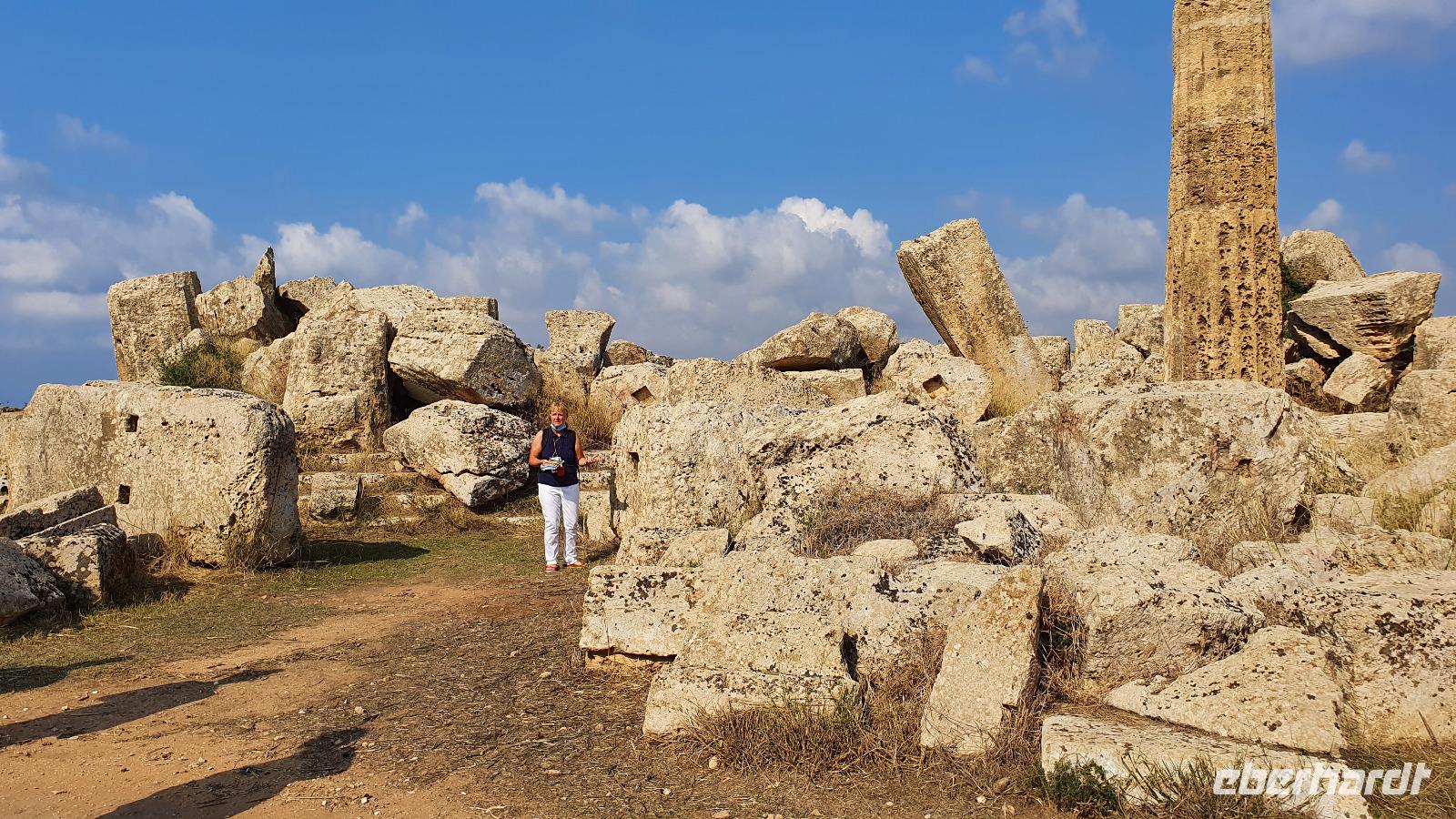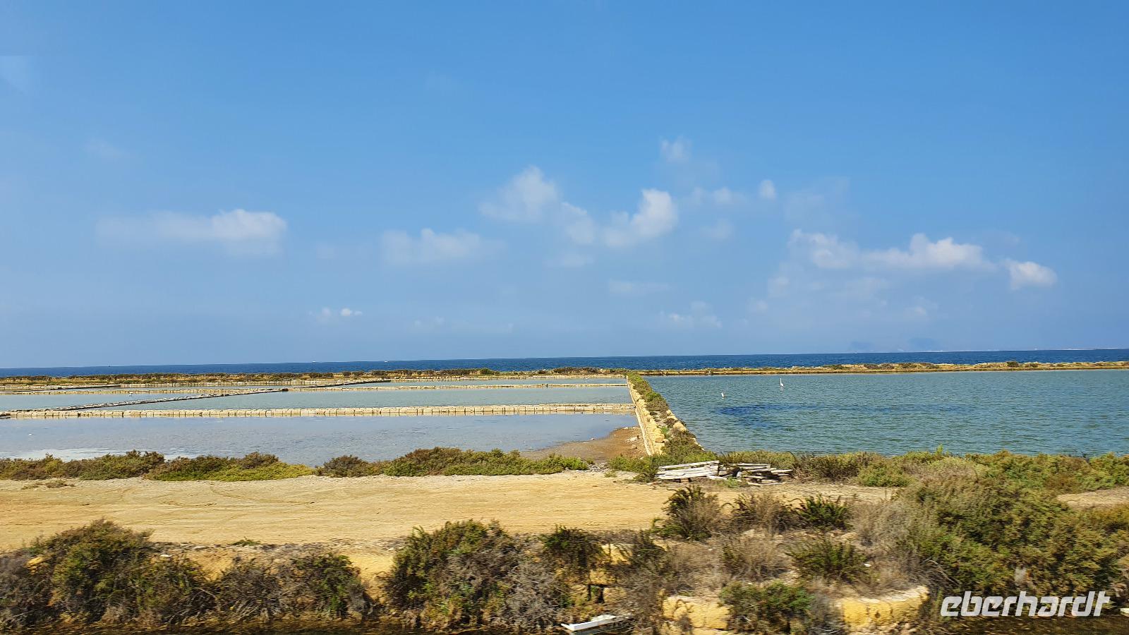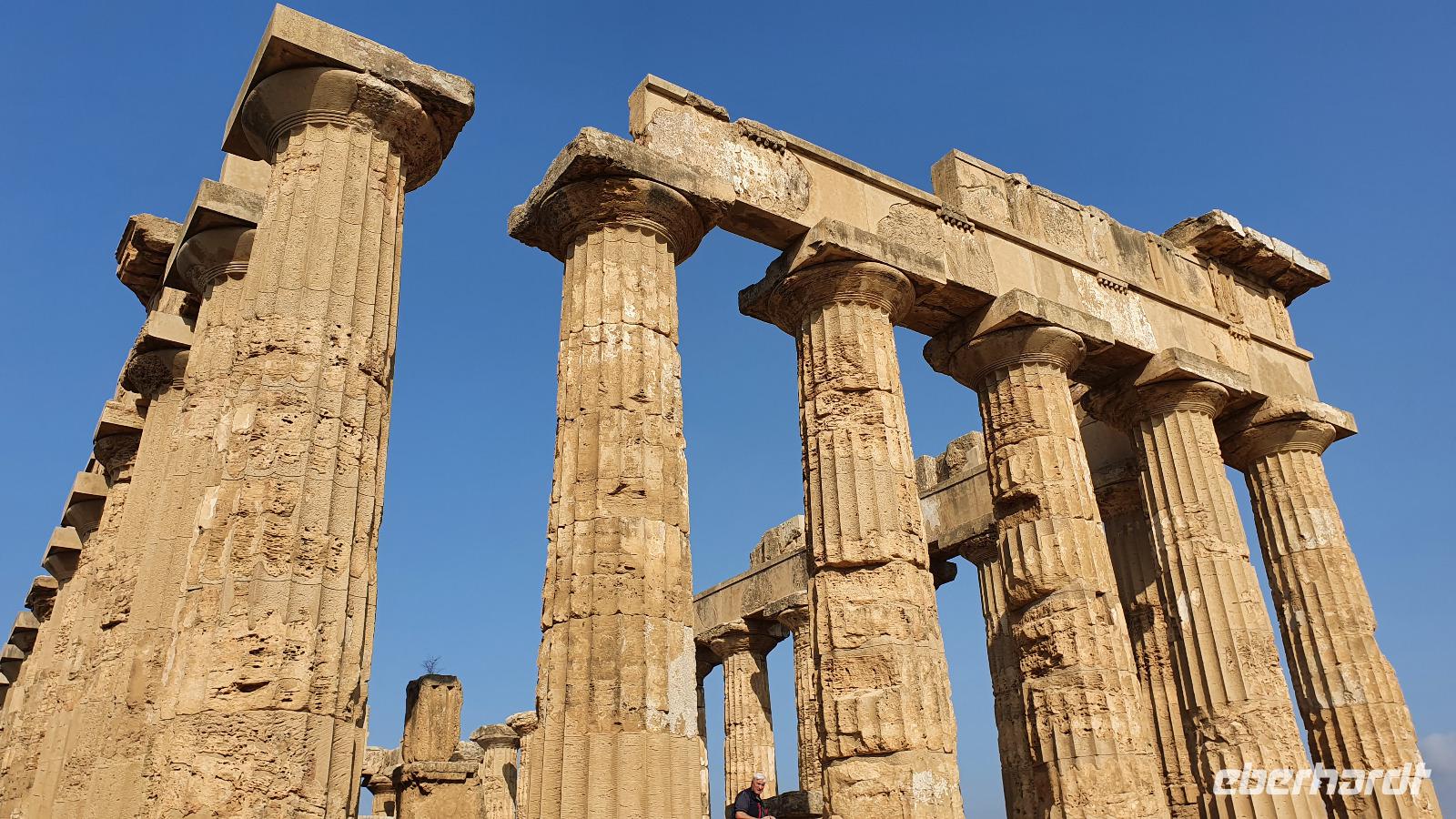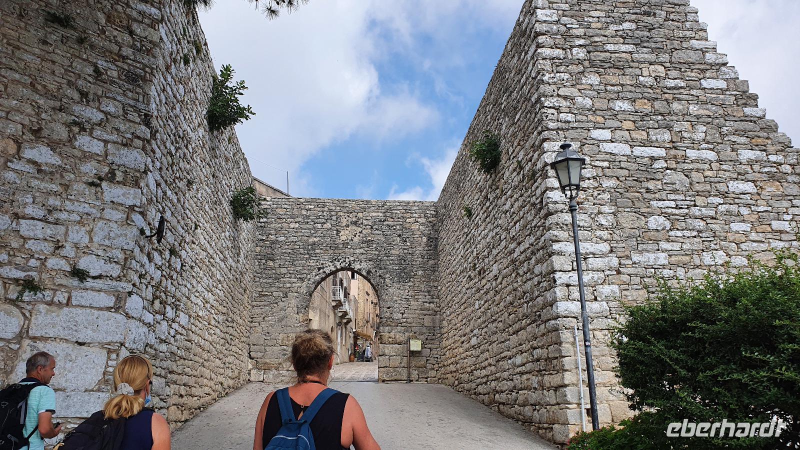 Unser Tag beginnt mit einem leckeren Frühstück. Für sizilianische Verhältnisse ausgesprochen üppig. Renate hatte uns erzählt, dass sie eigentlich nur eine Brioche essen und eventuell eine Granita dazu (im Sommer)- das hätte wohl den meisten von uns nicht wirklich gereicht ;-) Gestärkt folgen wir dann dem Hausherren auf einen kleinen Rundgang. Ein ehemaliger Steinbruch (=Latomie) war es hier, er verleiht den Oliven einzigartigen Geschmack. Heute lädt ein Pool zum Entspannen und Genießen ein und ein uralter Olivenbaum - 1200 Jahre alt!- schaut zu. Was der wohl alles schon gesehen hat? Daneben ein Bananenbaum- mit Früchten und Blüten. Umwerfend schön. Dann machen wir uns auf den Weg, Selinunte liegt quasi gleich um die Ecke und wir sind kaum mehr als 20 Minuten unterwegs. Hier besuchen wir den Archäologischen Park Selinunte. Nach dem obligatorischen Prozedere mit Maske, Fieber messen und eigens ausgewiesenen Wegen können wir dann zum Tempel E starten. Da niemand eindeutig sagen kann, wem die Tempel zuzuschreiben waren, haben sie eben Buchstaben bekommen. Die Tempelanlagen hier wurden einst von Erdbeben und Tsunami verwüstet, ein Wiederaufbau undenkbar. Nur der Tempel E kippte so zur Seite um, dass er quasi wieder aufgerichtet wurde. So können wir ihn heute besichtigen, auch die Heiligtümer im Inneren sind noch nachvollziehbar. Besonders angetan hat es uns aber die tolle Aussicht zur Akropolis und zum Meer. Was für ein Blick! Schön, dass wir den Tempel betreten und so den tollen Ausblick genießen konnten. Unser Spaziergang führt uns zu Überresten weiterer Tempel- F und G. Man vermutet, dass Tempel G Zeus geweiht gewesen sei, er soll mehr als 100 Meter lang gewesen sein und wurde vermutlich nie fertiggestellt. Riesige Kapitelle und Säulen liegen heute verstreut als hätte ein Riese mit seinem Bauklötzen gewürfelt. Wir umrunden das Areal und genießen die Sonne, strahlendblauen Himmel, die einzigartige Atmosphäre und das Meer. Dann heißt es weiterfahren. Jenseits der Autobahnen fährt uns Rosario nach Marsala zu den Salinen hier. Unterwegs bekommen wir so einen guten Eindruck vom tatsächlichen Leben hier. Wir passieren den Hafen von Marsala und sind schon an den Salzgewinnungsbecken angekommen. Ein Fotostopp darf natürlich nicht fehlen, dann geht es zu unserem nächsten Ziel: die Salinen von Paceco. Hier haben wir auch unsere Mittagspause und wieder genießen wir landestypische Antipasti, Pasta und Fisch. Dazu ein Glas Wein- so läßt es sich leben. Wer wollte versorgte sich noch mit einem groben oder feinen Salz von hier und dann ging unsere Fahrt auch schon weiter. Unterwegs sehen wir Flamingos in den Salzbecken stehen - was für ein Glück. Dann geht es in die Höhe- genauer auf 760 Meter hinauf auf den Monte Giuliano. Hier oben thront Erice. Souverän fährt Rosario die Serpentinen hinauf und Renate erzählt uns zur Geschichte der Stadt. Ein Großteil der Einwohner wohnt heute am Fusse des Berges, hier entstand Valderice. Nur wenige Hundert wohnen noch ständig oben in Erice. Wir betreten die Stadt durch das Stadttor, die Porta Trapani, und fühlen uns tatsächlich ins Mittelalter versetzt, sehen schmale Gassen, das Starßenpflaster ist in Ornamenten gelegt, und natürlich steht die Hauptkirche gleich am Ortseingang. Wir statten der Kirche der Mutter Gottes natürlich einen Besuch ab. Sie ist die einzig gotische Kirche von einstmals bis zu 60 Kirchen im Ort. Besonders besticht die weiße Decke mit manuelinischen Elementen. Unser Spaziergang führt uns durch die Gassen zur wohl berühmtesten Pasticceria der Stadt- zu Maria Grammatico und ihrem köstlichen Mandelgebäck. Das konnte, wer wollte, probieren bevor es weiterging hinauf zur Burg. Hier befand sich vorher der Venustempel, der Liebesgöttin huldigte man früher auch in Form der Tempelprostitution. Wir jedenfalls genießen den Ausblick von hier oben und als kleine Überraschung einen Marsala- ein Wein aus der Region. Ein echtes WOW von Eberhardt Travel eben. Individuell erkundeten wir nun die Stadt bevor es zurück ging zum Bus. Wieder genossen wir bei der Rückfahrt die spektakulären Aussichten über die Bucht bis zum Monte Cofano. Angekommen in unserem Agriturismo bei Castelvetrano blieb noch etwas Zeit bevor wir uns unser Abendessen schmecken ließen. Neben lecker Vorspeisen und Pasta konnten wir heute Involtinis probieren, gefüllte Rindfleischröllchen.