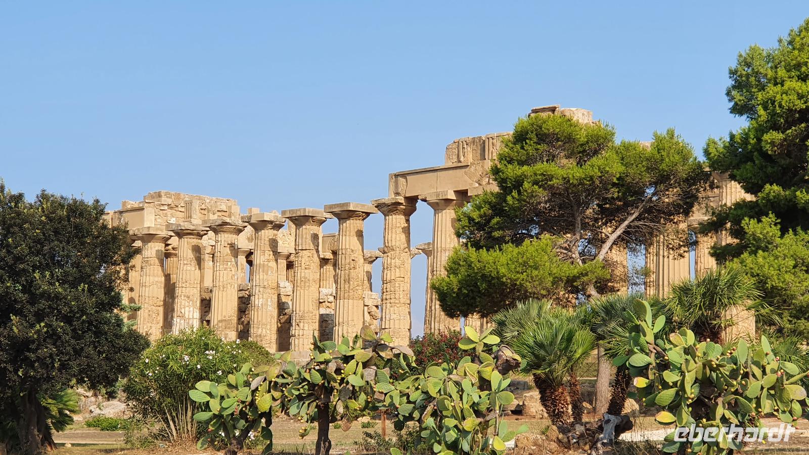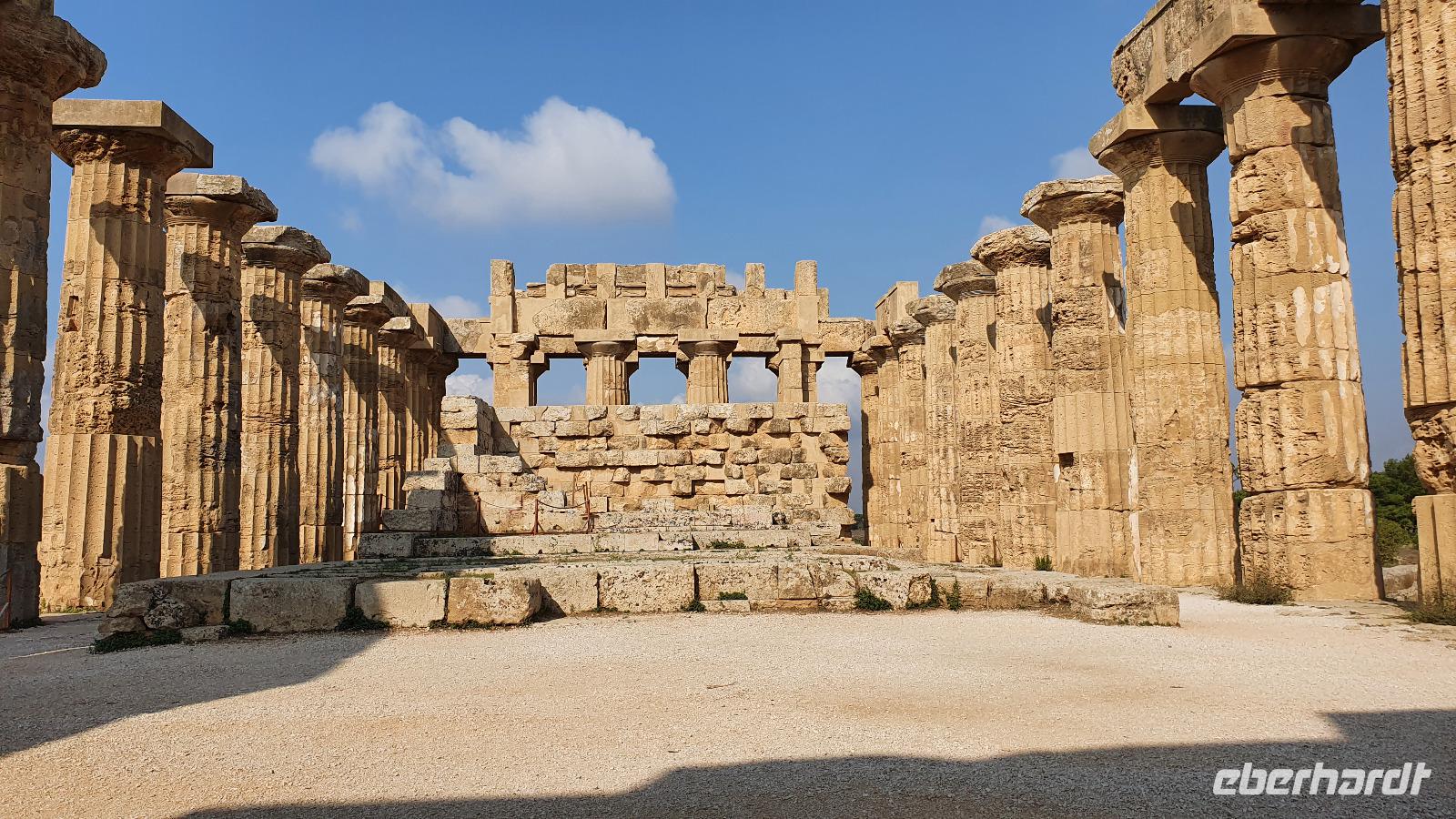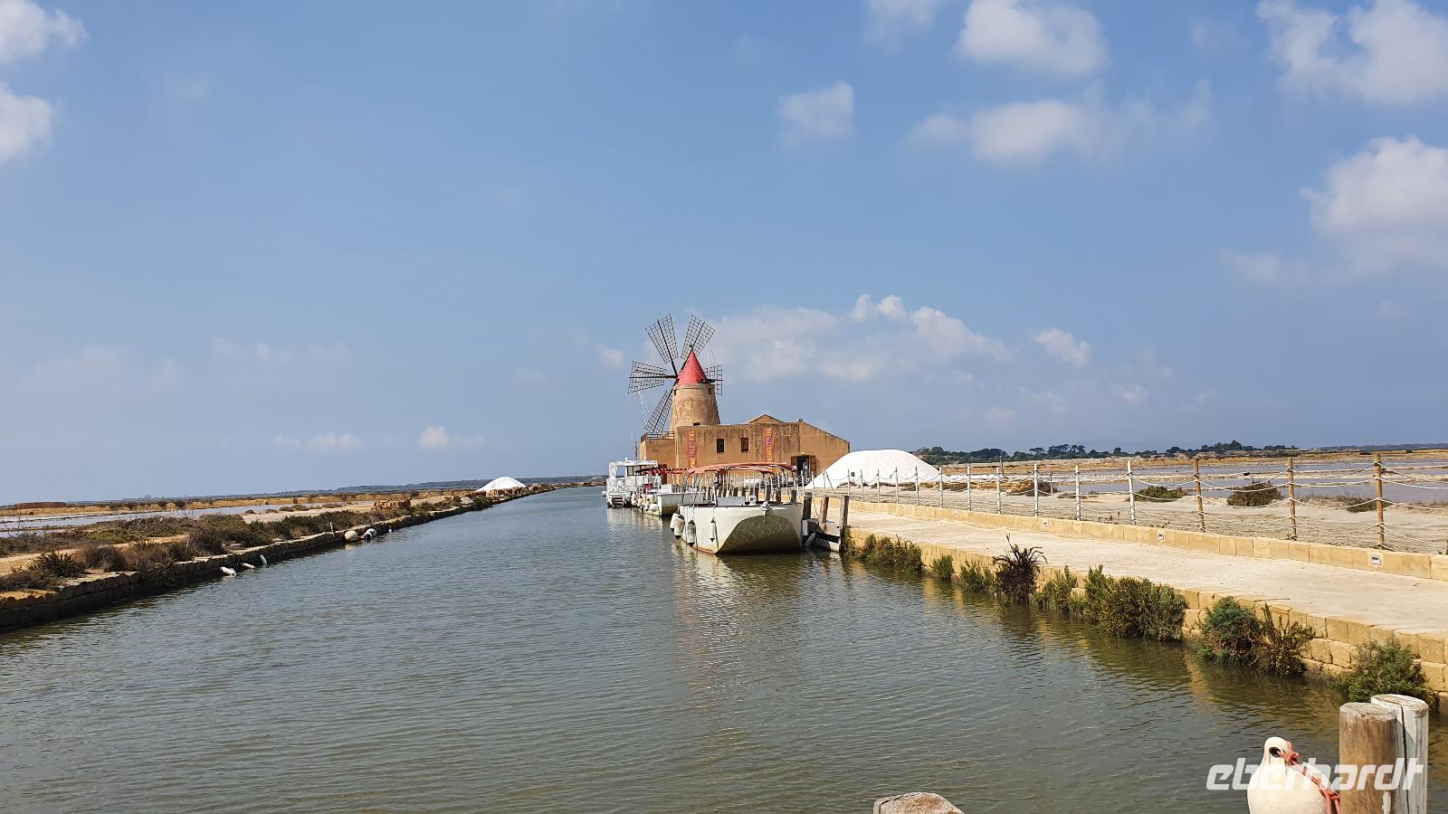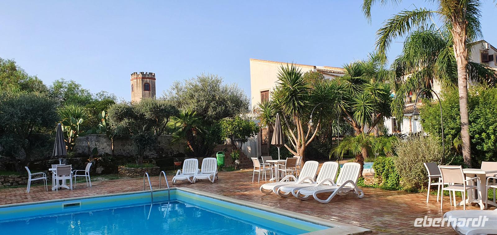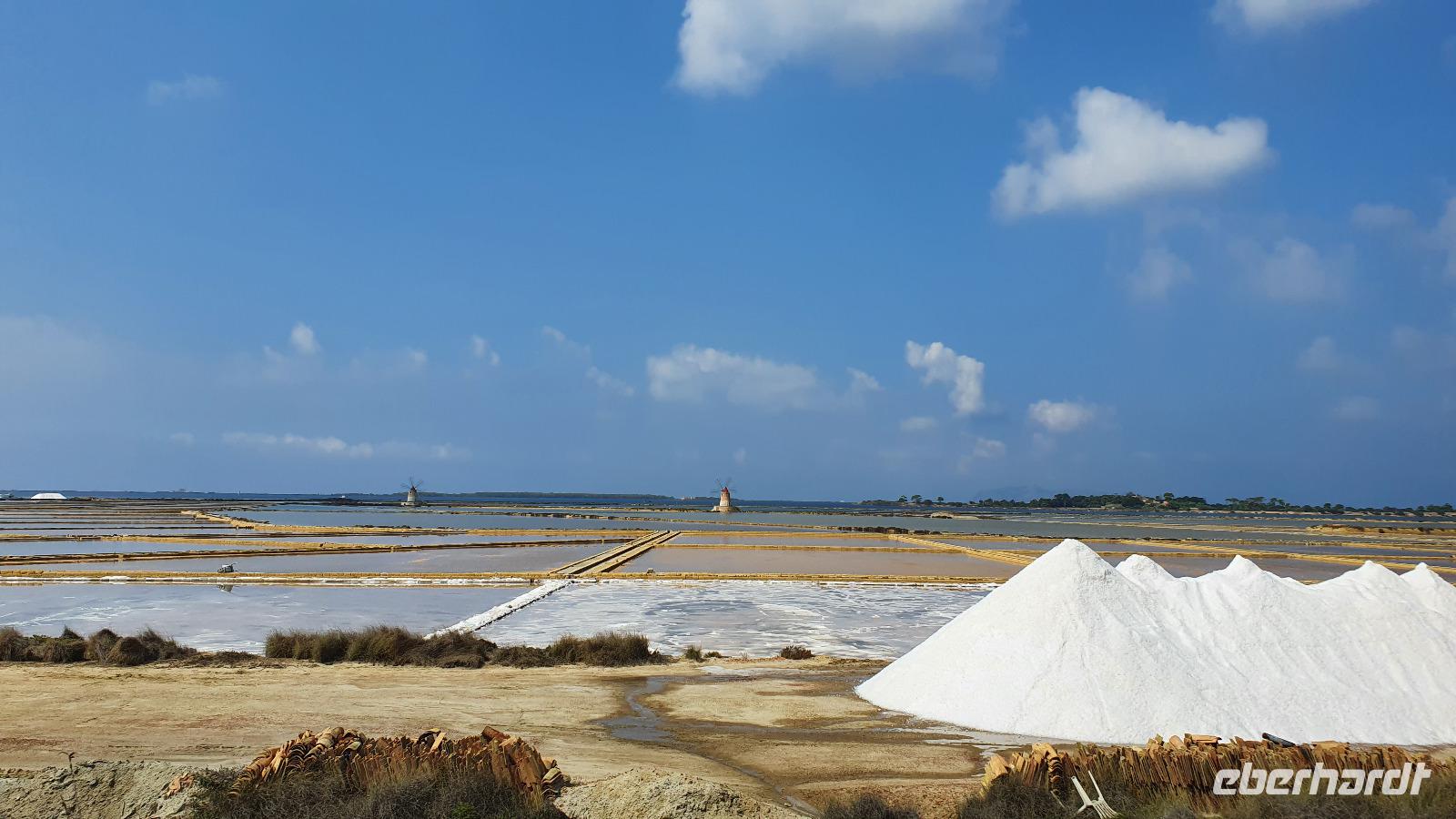 Unser Tag beginnt mit einem leckeren Frühstück. Für sizilianische Verhältnisse ausgesprochen üppig. Renate hatte uns erzählt, dass sie eigentlich nur eine Brioche essen und eventuell eine Granita dazu (im Sommer)- das hätte wohl den meisten von uns nicht wirklich gereicht ;-) Gestärkt folgen wir dann dem Hausherren auf einen kleinen Rundgang. Ein ehemaliger Steinbruch (=Latomie) war es hier, er verleiht den Oliven einzigartigen Geschmack. Heute lädt ein Pool zum Entspannen und Genießen ein und ein uralter Olivenbaum - 1200 Jahre alt!- schaut zu. Was der wohl alles schon gesehen hat? Daneben ein Bananenbaum- mit Früchten und Blüten. Umwerfend schön. Dann machen wir uns auf den Weg, Selinunte liegt quasi gleich um die Ecke und wir sind kaum mehr als 20 Minuten unterwegs. Hier besuchen wir den Archäologischen Park Selinunte. Nach dem obligatorischen Prozedere mit Maske, Fieber messen und eigens ausgewiesenen Wegen können wir dann zum Tempel E starten. Da niemand eindeutig sagen kann, wem die Tempel zuzuschreiben waren, haben sie eben Buchstaben bekommen. Die Tempelanlagen hier wurden einst von Erdbeben und Tsunami verwüstet, ein Wiederaufbau undenkbar. Nur der Tempel E kippte so zur Seite um, dass er quasi wieder aufgerichtet wurde. So können wir ihn heute besichtigen, auch die Heiligtümer im Inneren sind noch nachvollziehbar. Besonders angetan hat es uns aber die tolle Aussicht zur Akropolis und zum Meer. Was für ein Blick! Schön, dass wir den Tempel betreten und so den tollen Ausblick genießen konnten. Unser Spaziergang führt uns zu Überresten weiterer Tempel- F und G. Man vermutet, dass Tempel G Zeus geweiht gewesen sei, er soll mehr als 100 Meter lang gewesen sein und wurde vermutlich nie fertiggestellt. Riesige Kapitelle und Säulen liegen heute verstreut als hätte ein Riese mit seinem Bauklötzen gewürfelt. Wir umrunden das Areal und genießen die Sonne, strahlendblauen Himmel, die einzigartige Atmosphäre und das Meer. Dann heißt es weiterfahren. Jenseits der Autobahnen fährt uns Rosario nach Marsala zu den Salinen hier. Unterwegs bekommen wir so einen guten Eindruck vom tatsächlichen Leben hier. Wir passieren den Hafen von Marsala und sind schon an den Salzgewinnungsbecken angekommen. Ein Fotostopp darf natürlich nicht fehlen, dann geht es zu unserem nächsten Ziel: die Salinen von Paceco. Hier haben wir auch unsere Mittagspause und wieder genießen wir landestypische Antipasti, Pasta und Fisch. Dazu ein Glas Wein- so läßt es sich leben. Wer wollte versorgte sich noch mit einem groben oder feinen Salz von hier und dann ging unsere Fahrt auch schon weiter. Unterwegs sehen wir Flamingos in den Salzbecken stehen - was für ein Glück. Dann geht es in die Höhe- genauer auf 760 Meter hinauf auf den Monte Giuliano. Hier oben thront Erice. Souverän fährt Rosario die Serpentinen hinauf und Renate erzählt uns zur Geschichte der Stadt. Ein Großteil der Einwohner wohnt heute am Fusse des Berges, hier entstand Valderice. Nur wenige Hundert wohnen noch ständig oben in Erice. Wir betreten die Stadt durch das Stadttor, die Porta Trapani, und fühlen uns tatsächlich ins Mittelalter versetzt, sehen schmale Gassen, das Starßenpflaster ist in Ornamenten gelegt, und natürlich steht die Hauptkirche gleich am Ortseingang. Wir statten der Kirche der Mutter Gottes natürlich einen Besuch ab. Sie ist die einzig gotische Kirche von einstmals bis zu 60 Kirchen im Ort. Besonders besticht die weiße Decke mit manuelinischen Elementen. Unser Spaziergang führt uns durch die Gassen zur wohl berühmtesten Pasticceria der Stadt- zu Maria Grammatico und ihrem köstlichen Mandelgebäck. Das konnte, wer wollte, probieren bevor es weiterging hinauf zur Burg. Hier befand sich vorher der Venustempel, der Liebesgöttin huldigte man früher auch in Form der Tempelprostitution. Wir jedenfalls genießen den Ausblick von hier oben und als kleine Überraschung einen Marsala- ein Wein aus der Region. Ein echtes WOW von Eberhardt Travel eben. Individuell erkundeten wir nun die Stadt bevor es zurück ging zum Bus. Wieder genossen wir bei der Rückfahrt die spektakulären Aussichten über die Bucht bis zum Monte Cofano. Angekommen in unserem Agriturismo bei Castelvetrano blieb noch etwas Zeit bevor wir uns unser Abendessen schmecken ließen. Neben lecker Vorspeisen und Pasta konnten wir heute Involtinis probieren, gefüllte Rindfleischröllchen.