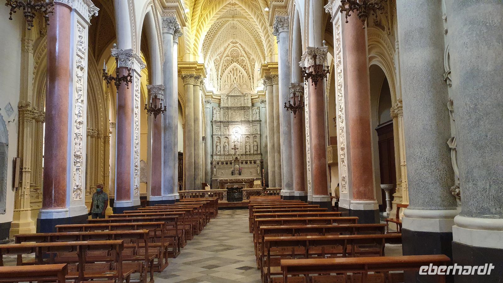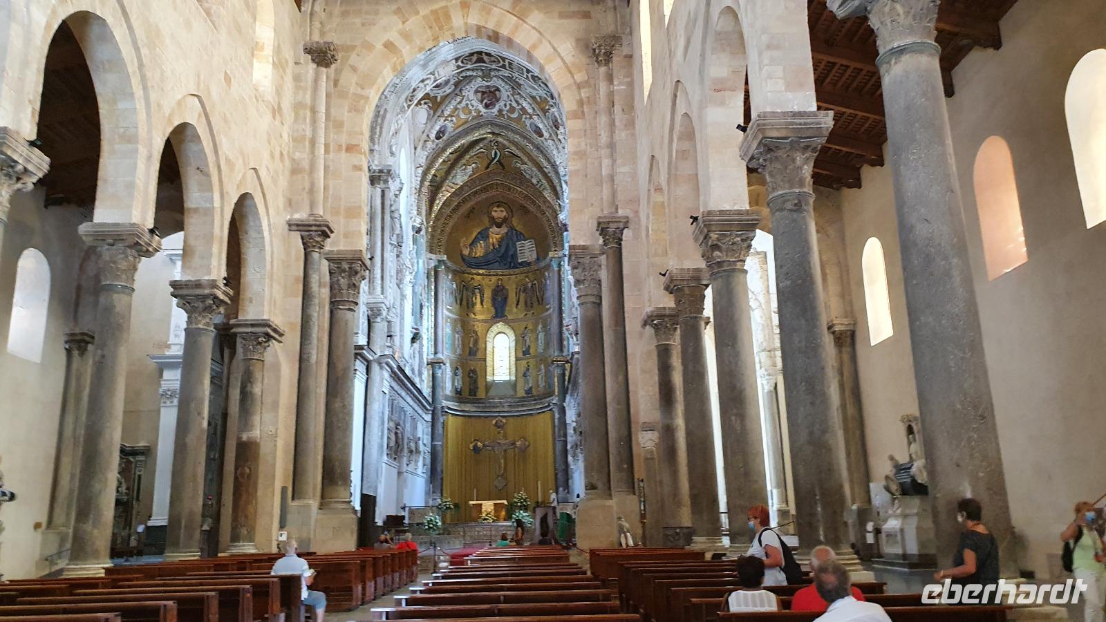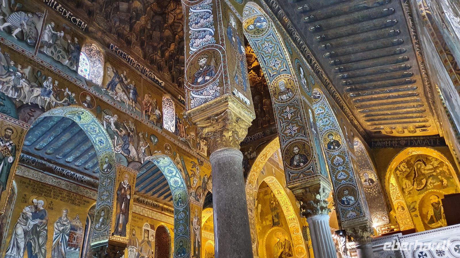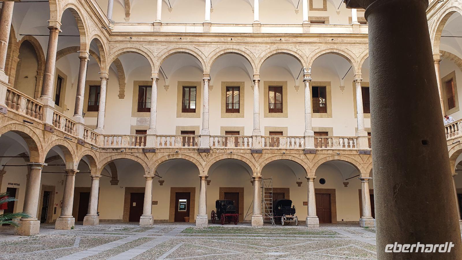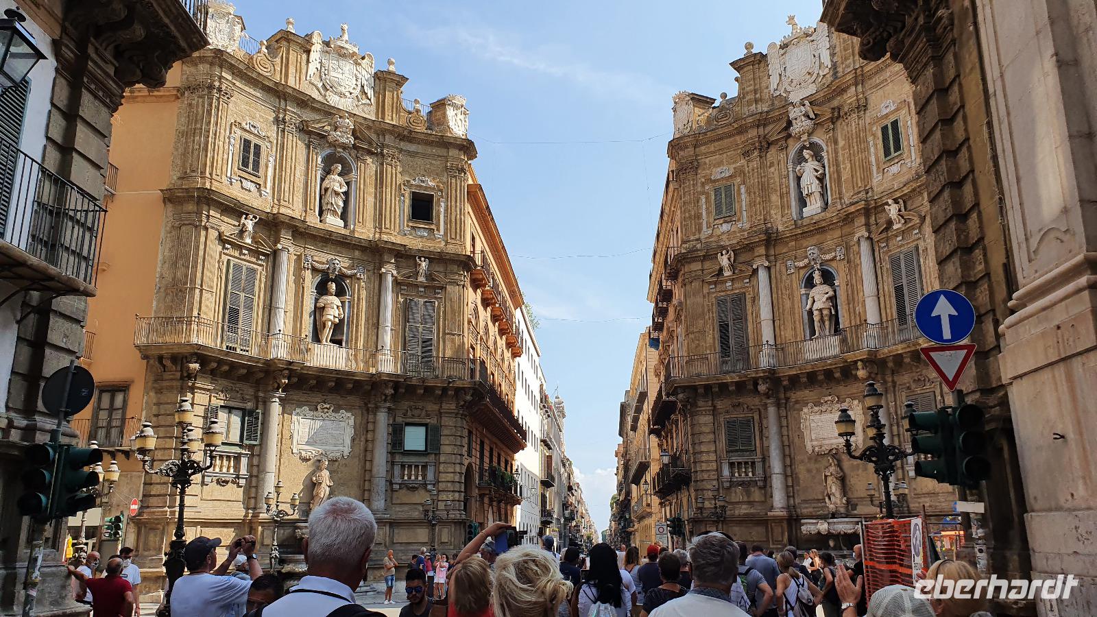 Heute heißt es Abschied nehmen von unserem Agriturismo. Viele würden gern noch bleiben, aber es ist ja eine Rundreise und wir wollen noch viel mehr kennenlernen. Dazu gehört heute mit Palermo die Hauptstadt Siziliens. Renate erzählt unterwegs auch von der sogenannten "Familie", der Mafia. Sie wird dort stark, wo z.B. die Jugendarbeitslosigkeit hoch ist und junge Leute einem schnell verdienten Geld schwer widerstehen können. Bei einer Quote von bis zu 40 % Jugendarbeitslosigkeit also ein schwieriges Unterfangen. Trotzdem wird gerade in Schulen und der Kirche versucht aufzuklären und mit Angeboten für junge Menschen dagegen zu wirken. Zwei Richter haben mit ihrer konsequenten Strafverfolgung gegen die Mafia dazu beigetragen, dass sich die Haltung zur Mafia änderte. Sie wurden ermordet und diese Morde rüttelten viele auf. Auf unserer Autobahn fahen wir auch an der Stelle vorbei, an der Richter Falcone mit seiner Frau und seinen Leibwächtern ums Leben kam. Hier steht heute ein Mahnmal und oben an der Bergwand prangt groß: No Mafia. Ein Hoffnungszeichen. Dann haben wir Palermo erreicht und steigen in der Nähe des Normannenpalastes aus. Vor dem Stadttor bewundern wir die Blüten des Kapokbaumes um dann durch die Porta Nuova die Altstadt zu betreten. Da der Normannenpalast auch Sitz der Regierung ist müssen wir durch eine Sicherheitskontrolle bevor wir einen weiteren Höhepunkt unserer Rundreise besichtigen können: die Cappella Palatina. Im Inneren erwarten uns auf dem Boden und an den Wänden arabische Mosaikarbeiten, da sie keine Menschen darstellen sind es wunderschöne Ornamente. Die Wände oben zieren unglaubliche Mosaiken. Sie erzählen Geschichten aus der Bibel, dem alten und neuen Testament und in der Apsis thront Christus als Pantokrator. Nur hier ist auch die originale Decke aus Holz erhalten- ein Stalaktitengewölbe mit Mosaiken aus Seide und Gold. Nirgendwo anders verschmelzen byzantinische, arabische und normannische Kunst derart wie hier. Da nur wenige Besucher hier sind freuen wir uns über den Platz und die Zeit, die wir hier verbringen können. Doch auch unser nächster Programmpunkt ist wieder ein Highlight: die Kathedrale von Palermo. Vor der Kathedrale erklärt uns Renate die verschiedenen Baustile und wie die Kirche immer wieder um- und ausgebaut wurde. Dann wollen wir sie auch von innen besichtigen- das wird jäh gebremst. Für eine anstehende Hochzeit wurden bereits Teile im Inneren abgesperrt, wir können gerade noch einige Altäre an der Westfront anschauen bevor wir uns in den hinteren Teil der Kathedrale zurückziehen müssen. So erfahren wir hier von der Verehrung der heiligen Rosalia, deren Kapelle weithin sichtbar von Silber funkelt, von den Normannengräbern, die hier liegen, immerhin die Stauferkaiser Heinrich IV., Friedrich II. und Constanze, Königin von Sizilien. Denn wie der Normannenpalast stammt auch die Kathedrale aus dem 12. Jahrhundert. Weiter erkunden wir Palermo zu Fuss. Spazieren über die Via Vittorio Emanuele bis zu den Quattro Canti, dieser besonderen Straßenkreuzung. Alle 4 Ecken wurden barock verziert, zeigen Herrscher und Figuren, die die Jahreszeiten repräsentieren. Wir sehen den sogenannten Schambrunnen, seine unbekleideten Figuren sollen die Nonnen des gegenüberliegenden Klosters verwirrt haben, andere sagen, dass die Stadt wohl andere Probleme hätte, als für viel Geld diesen Brunnen zu kaufen, es wäre eine Schande. So kam der Brunnen vor dem Rathaus zu seinem Namen. Natürlich sehen wir auch die Maturanakirche, im Innern ähnlich reich an Mosaiken wie die Capella Palatina und davor steht ein Prozessionswagen der hl. Rosalia. Weiter geht es, vorbei an tollen Palästen, aber auch arg verfallenen. Auch eine Ausstellung "No Mafia" sehen wir. So erreichen wir schließlich das Teatro Massimo, das drittgrößte Opernhaus Europas. In der Nähe verbringen wir unsere Mittagspause und dann heißt es: Auf Wiedersehen Palermo. Entlang der Küste fahren wir weiter nach Cefalu. Eine wunderschöne kleine Stadt direkt am Meer mit einer imposanten und interessanten Kirche. Eigentlich einem Dom. Über dem Städtchen thront er und auch hier sind wunderbare Mosaiken erhalten geblieben. Sie wurden vor kurzem restauriert und erstrahlen nun wieder in ganzer Pracht. An den Wänden sind noch Überreste der arabischen Bodenmosaike ausgestellt, leider ist nicht mehr sehr viel davon erhalten. Gut, dass wir unseren Eberhardt-Funk haben, so kann uns Renate vieles erklären und auch unsere Fotografen kommen auf ihre Kosten, ohne etwas zu verpassen. Nach dem Besuch des Domes haben alle Freizeit, wer möchte kann hinunter an den Strand spazieren, durch den wunderschönen Ort bummeln oder einfach im Cafe ein leckeres Eis genießen. Viel zu schnell vergeht die Zeit hier und wir spazieren an der Küstenstraße zurück zum Leuchtturm und zu unserem Bus. Rosario bringt uns dann sicher nach Capo d'Orlando zu unserem Hotel Il Mulino. Das liegt direkt an der Strandpromenade und einige nutzen rasch noch die Gelegenheit für ein erfrischendes Bad im Meer. Zum Abendessen treffen wir uns wieder und lassen dann langsam den Tag ausklingen.