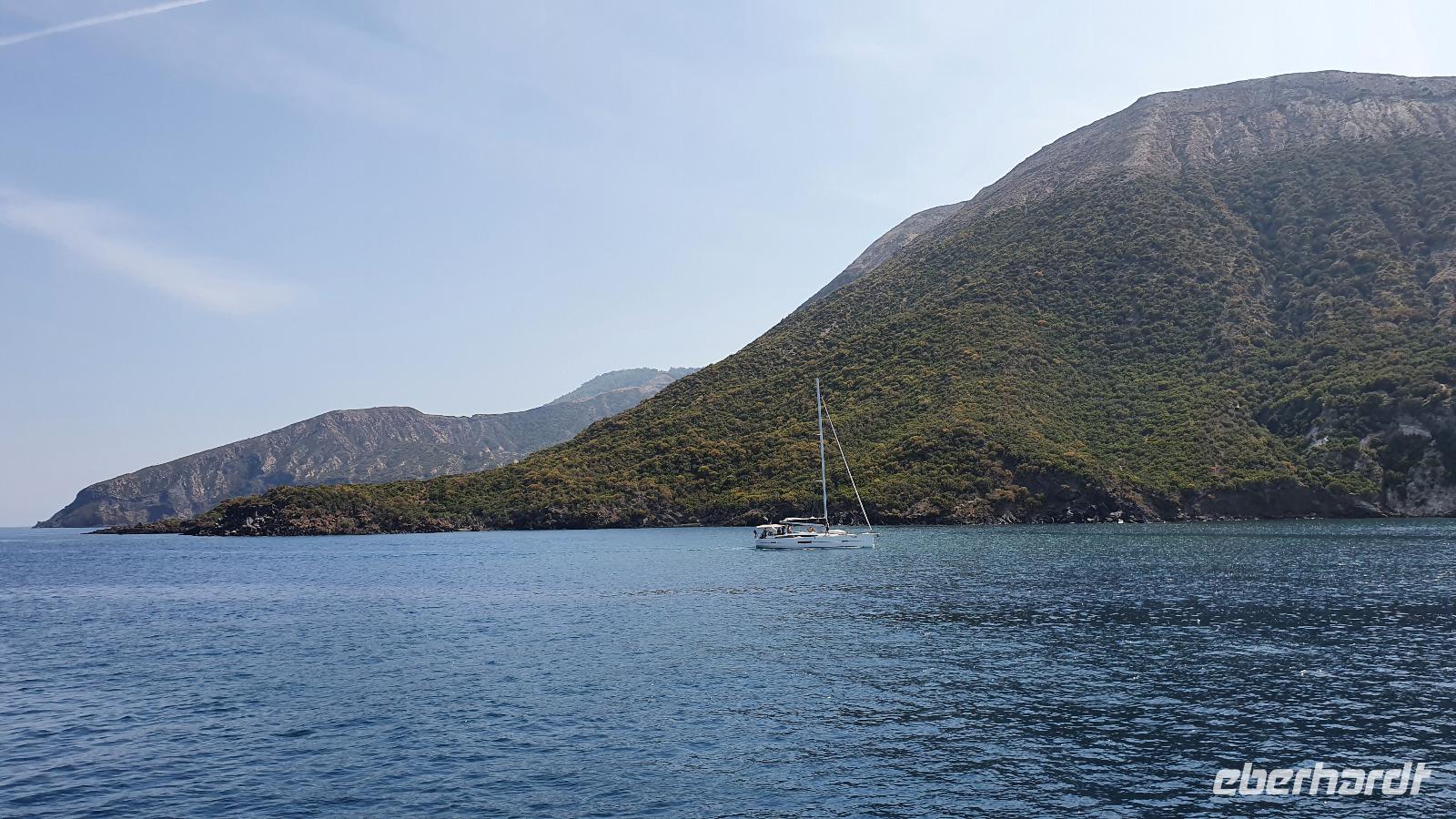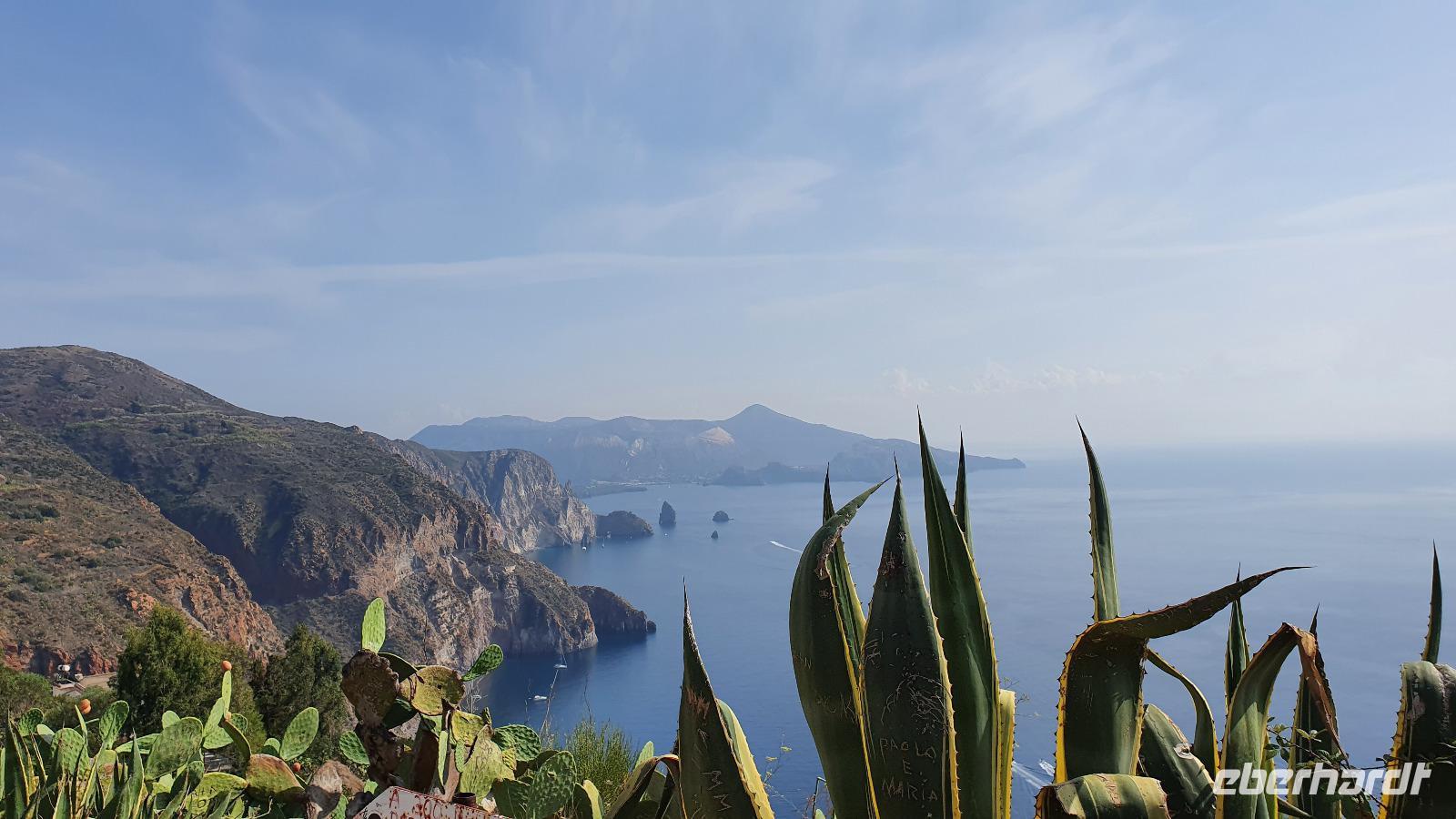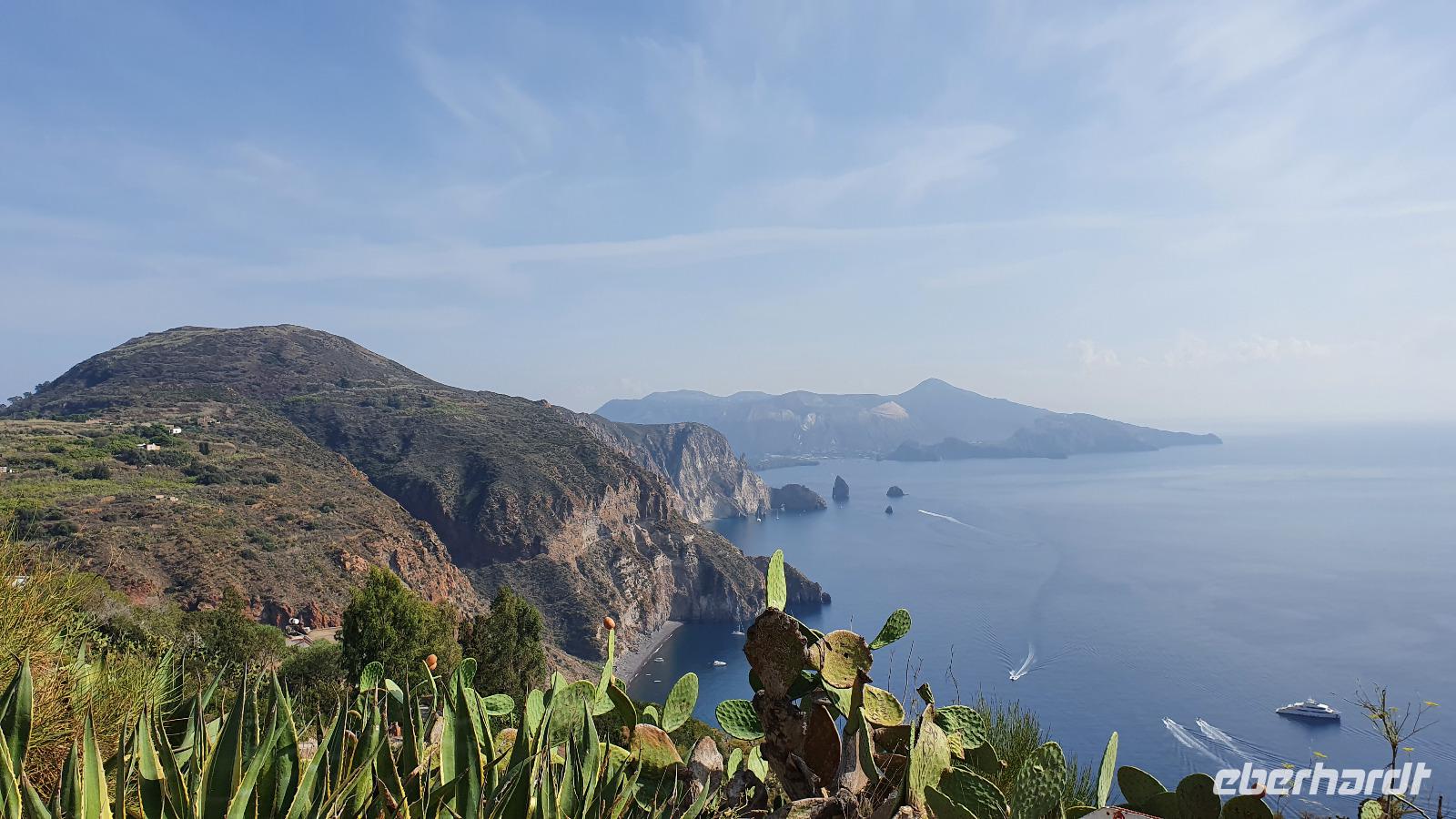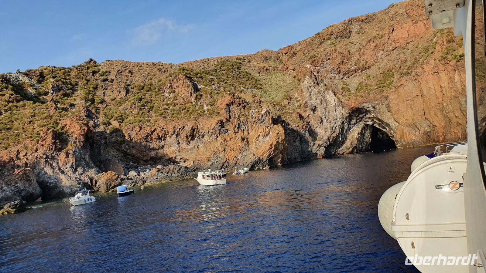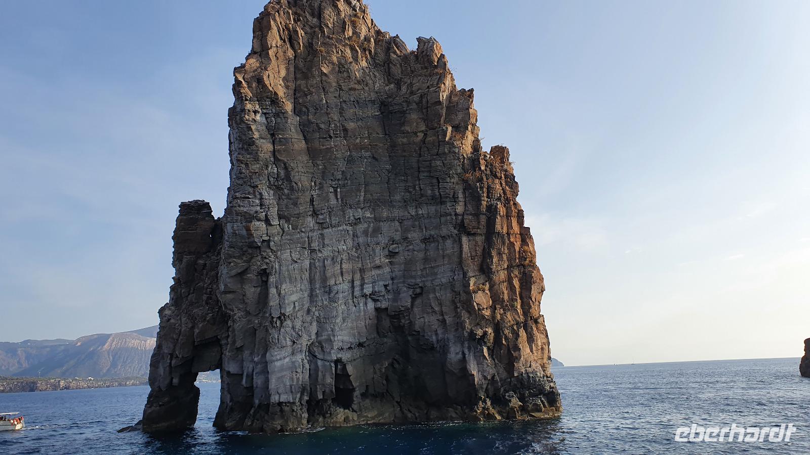 Heute soll es zeitig losgehen- die Äolischen Inseln rufen. Und ausgerechnet heute, wo wir pünktlich am Schiffsanleger sein müssen, dauert es ewig, bis jeder seinen Kaffee oder Cappucchino bekommen hat. Da muss das Hotel wohl noch etwas nachbessern. Dank der sonntäglichen Ruhe im morgendlichen Straßenverkehr kommen wir dann doch gut durch und sind rechtzeitig in Milazzo am Hafen. Die Äolische Prinzessin- unser Schiff- wartet bereits auf uns und so können wir an Bord gehen. Das Meer ist ruhig, die Sonne strahlt vom blauen Himmel- was kann es da schöneres geben als eine Bootstour? Wir brauchen eine gute Stunde bis nach Vulcano, unserer ersten Insel, die wir besuchen. Alle hatten sich im Vorfeld informiert und so ging es zielstrebig zum schwarzen Strand zum Baden, in Wanderschuhen auf den (noch aktiven) Vulkan hinauf, im Bus zu einer Inselrundfahrt oder einfach zum Bummeln durch den Ort. Das Schwefel-Fango-Bad war leider geschlossen, aber dafür hatte sich ohnehin kaum jemand von uns entschieden. Insgesamt für alle eine schöne, individuelle Auszeit hier. Wer wollte ass noch eine Kleinigkeit denn nach dem Mittag fuhr unser Schiff weiter nach Lipari, auf die größte der Äolischen Inseln. Den Namen gab ihnen Äolos, der Gott des Windes, manche nennen sie aber auch Liparische Inseln nach der Hauptinsel Lipari. Diese lernten wir bei einer Bustour näher kennen. Hinauf ging die Tour, an den alten Bimsstein-Brüchen vorbei. Deren Betrieb wurde eingestellt, als die Inseln Weltkulturerbe wurden. Nun beginnt man, die Anlagen zurückzubauen und einen Naturpark aus dem Areal zu machen. Erste Sträucher und Bäume haben sich bereits auf den vom Bimsstein weißen Bergen angesiedelt und das Gebiet wird in kürze komplett sein Gesicht verändern. Fotostopps an Panorama-Plätzen sorgen dafür, dass unsere Fotografen nicht zu kurz kommen und wir haben die einmalige Gelegenheit, Spezialitäten der Insel zu kosten: Liköre, Weine, Kapern und Kapernäpfel...Auch ein Blick nach Salina ist möglich. Die Insel hat ihren Namen von der Salzgewinnung, die aber heute nicht mehr betrieben wird. Wieder im Hafen angekommen trennen sich unsere Wege, denn nun ist wieder Zeit für individuelle Erkundungen. Leider war die Kirche St. Bartolomeo geschlossen, gab aber wie die Burg ein tolles Fotomotiv. Am Hafen konnte man den Seglern und Motorbooten zuschauen, durch die Gassen schlendern oder das eine oder andere spezielle Souvenir von hier erstehen. Am Schiff trafen wir uns wieder und bevor wir nach Milazzo zurückkehrten fuhr unser Kapitän eine Schleife zu den Felsen von Lipari und Vulcano Da waren die Bischofsmütze, die Mumie oder auch die Engelsgrotte. Den Namen hat sie weil es sich anhören soll, als wenn Engel singen, wenn der Wind durchpfeift. Auf Lipari dann sehen wir die Löwenkopfinsel, ganz nah fährt der Kapitän an die Felsen und wer kann entdeckt Pegasus und das Bad der Venus. Ein tolles Erlebnis! Nun aber geht es zurück nach Milazzo. Eine ruhige See macht die Überfahrt traumhaft schön und die bereits tiefstehende Sonne zaubert tolles Licht aufs Wasser. Im Hafen wartet bereits Rosario mit dem Bus auf uns. Er bringt uns sicher zurück nach Capo d'Orlando, wo wir uns in unserem Hotel unser Abendessen schmecken lassen.