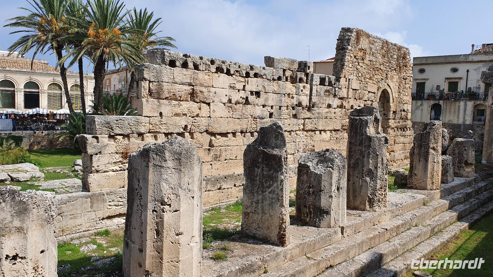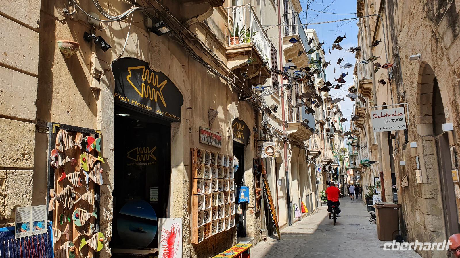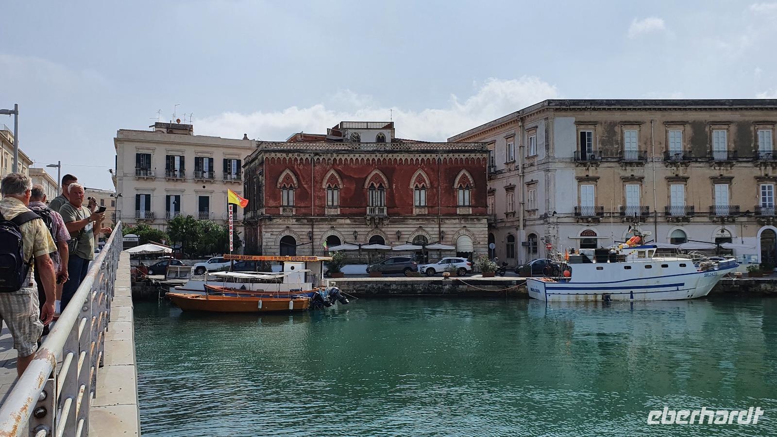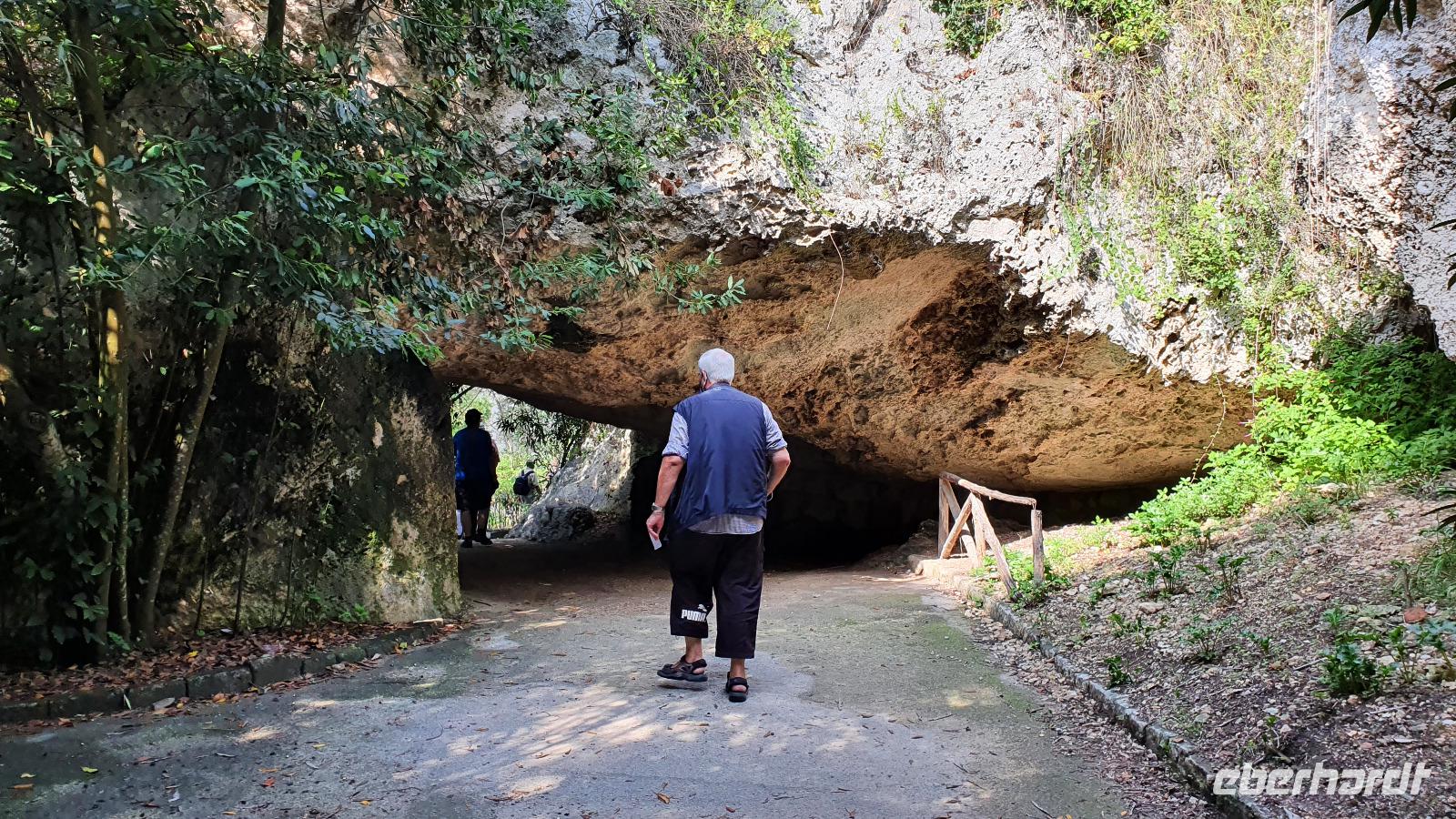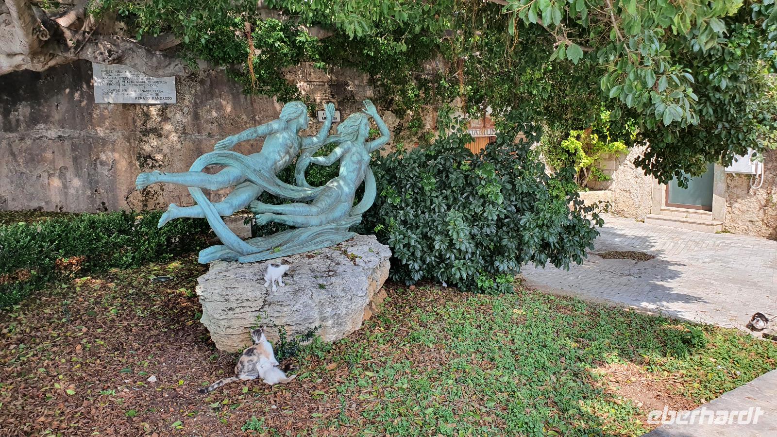 Heute startet unser fakultativer Ausflug nach Syrakus. Leider haben wir nun einen kleineren Bus bekommen, und das, obwohl wir nur 1 Gast weniger sind heute. Aber es ist nicht zu ändern und so machen wir das Beste draus. Toto ist unser Fahrer und Renate beantwortet uns unterwegs alle unsere Fragen, die wir bisher noch nicht gestellt hatten. Leider hüllt sich der Ätna in tiefe Wolken- ein Abschiedsfoto ist nicht möglich also fahren wir weiter, passieren Catania und erreichen dann Syrakus. Wir beginnen im archäologischen Park. Es ist schon früh am Tag drückend heiß und schwül, wir sind froh, im ehemaligen Steinbruch zu beginnen. Heute heißt er Paradies- früher war er für die Arbeiter hier alles andere als das. Dann kommen wir zum sogenannten "Ohr des Dionisio". Das ist eine Höhle, die aus den Fels gehauen wurde und die Form eines Ohres hat. Sie wurde auch als Gefängnis genutzt und oben soll der Tyrann gelauscht haben, was die Gefangenen so erzählten. Die Akkustik des Ortes kam ihm dabei zupass. Die probierten wir natürlich aus und sangen gemeinsam das Steigerlied- Glück auf, Glück auf. Stimmt- ein tolles Echo. Als wichtige griechische Provinz mußte natürlich ein Theater her und das wurde hoch oben über dem Hafen aus den Felsen gehauen. Auch heute wird es im Sommer noch für Aufführungen genutzt. Lange blieben wir nicht hier, wir nutzen das Wasser in den Höhlen für eine Erfrischung und stiegen lieber wieder hinab. Noch ein kurzer Fotostopp hier unten und dann zeigte uns Renate den riesigen Opferaltar. Einmal im Jahr wurden hier hunderte Stiere gleichzeitig geopfert, Stücke gingen an die Priester, an die Stifter aber auch an das Volk, dass so 1 mal im Jahr in den Genuss von Fleisch kam. Unseren Rundgang beendeten wir am römischen Amphitheater. Dabei lernte wir, dass Amphi heißt: von beiden Seiten von Zuschauerrängen umgeben. Im Gegensatz zur Muschelform des griechischen Theaters. Aber die Römer hatten es auch eher mit Gladiatoren und Löwen als mit Dramen und Schauspiel. Die Freie Zeit nun nutzten wir für Schattensuche und vielleicht ein kleines Souvenir, dann ging es mit dem Bus in die Stadt. Am Hafen stiegen wir aus und machten uns auf den Weg zur Ortigia- der Altstadt. Das war früher eine Insel, die nun zu Syrakus gehört. Eine Brücke trennt die Nue- von der Altstadt und so erreichen wir bald den ältesten Tempel Siziliens. Zumindest die Überreste davon. Auf 600 vor Christus wurde er datiert und war Apollon gewidmet. Dann spazieren wir durch malerische Gassen, interessanten Geschäften und immer wieder sehen wir Kunsthandwerker, die hier an der Straße ihre Werke anboten- Gold- und Silberschmiede, kunstvolle Flechtarbeiten, Schmuck aus Obsidian...So erreichten wir den Domplatz und statteten der Kirche natürlich einen Besuch ab. Nach dem obligatorischen Fiebermessen und dem Ticketkauf konnten wir uns im Inneren umsehen. Renate machte uns aufmerksam auf die Säulen, die versetzt scheinen- das war aber das Erdbeben 1693, alles andere hat standgehalten. Auch im Krieg, als Syrakus bombardiert wurde hat die Kirche keinen Schaden genommen. Früher befand sich hier der Tempel der Athene, die Kirche wurde einfach drum herum gebaut und heute hat man die Säulen wieder freigelegt. Den Domplatz dann schauen wir uns nur vom Schatten einer Mauer aus an- die Schwüle ist einfach unerträglich. Aber tapfer spazieren wir weiter zur Aretusa-Quelle. Verliebte und Brautpaare kommen oft hierher, gilt sie doch als Ort der Veschmelzung zweier Liebender. Hier endete auch unser gemeinsamer Spaziergang durch Syrakus. Die freie Zeit nun konnte genutzt werden für eine Mittagspause, Bummeln oder einfach weiter die Stadt erkunden. Das aufziehende Gewitter ließ uns dann aber doch etwas eher zum Bus kommen und so fuhren wir am frühen Nachmittag zurück nach Letojanni. Hier mußten wir uns dann auch von Renate verabschieden. Schon im Bus nutzten wir die Gelgenheit, ihr zu danken. Nun eine herzliche Verabschiedung- und vielleicht sieht man sich ja irgendwann wieder. Uns hatten nun auch hier Gewitter und Regen eingeholt. Dazu kam ein heftiger Hagelschauer, wow- das trommelte auf unsere Terrassen! Zum Abendessen trafen wir uns alle wieder und dann verabschiedeten sich auch die Frankfurter Fluggäste. Sie werden morgen in aller Frühe starten, die Münchner etwas später. So klang auch dieser Tag aus, mit viel Sonne, Regen, Hagel, Blitz und Donner, mit vielen interessanten Eindrücken und der Hoffnung, dass bald eine Lösung gefunden wird, damit wir weiterhin reisen und andere Menschen und Kulturen kennenlernen können.
