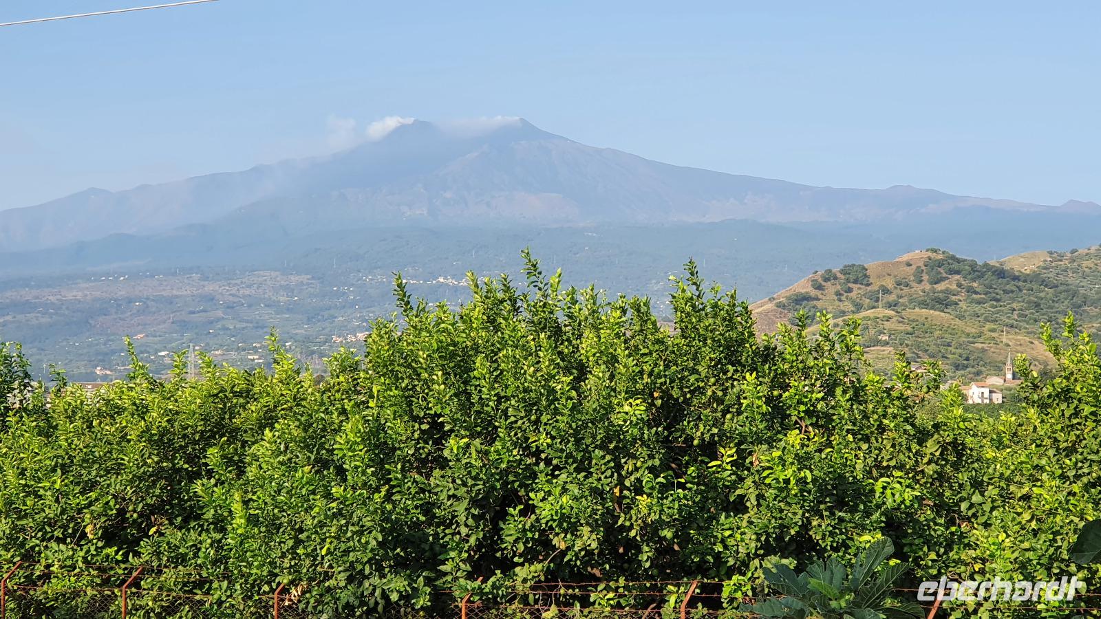 Früh am morgen gab es ein wirkliches früh- stück, schon ab 05:45 Uhr. 06:45 standen dann unsere Frankfurter und Berliner Reisegäste bereit und auch der Transfer war pünktlich. Also blieb uns nur noch ein letztes herzliches Auf Wiedersehen und kommt gut nach Hause! Die Dresdner Fluggäste konnten es entspannter angehen. Unser Transfer war für 08:45 bestellt und so frühstückten wir in aller Ruhe, brachten die Koffer zum Transportservice und trafen uns dann unterhalb des Hotels. Also ein letztes Mal den Schrägaufzug nehmen und die grandiose Aussicht auf Letojanni, Taormina und die Bucht genießen. Am Transferfahrzeug- welch Überraschung: Riosario brachte uns mit unserem großen Bus zum Flughafen. Und auch der Ätna zeigte sich freundlich als wollte er sich nochmals in voller Schönheit zeigen. Da durfte ein kleiner Fotostopp nicht fehlen, den Rosario auch problemlos ermöglichte. Am Flughafen checkten wir problemlos ein und dann begann das übliche Warten auf den Abflug. Unser Flug war pünktlich und so landeten wir wohlbehalten in München. Hier mußten wir lange auf die Anzeige unseres Abfluggates nach Dresden warten, dann aber nix wie los, in einer halben Stunde sollte der Flieger abheben. Aber alles verlief reibungslos und pünktlich landeten wir in Dresden. So hieß es nun, endgültig Abschied nehmen. Fast alle Transfers waren pünktlich- der typische Dresdner Stau hatte wieder zugeschlagen aber nach ein paar Minuten kam auch dieser und alle Gäste konnten nach Hause gebracht werden.