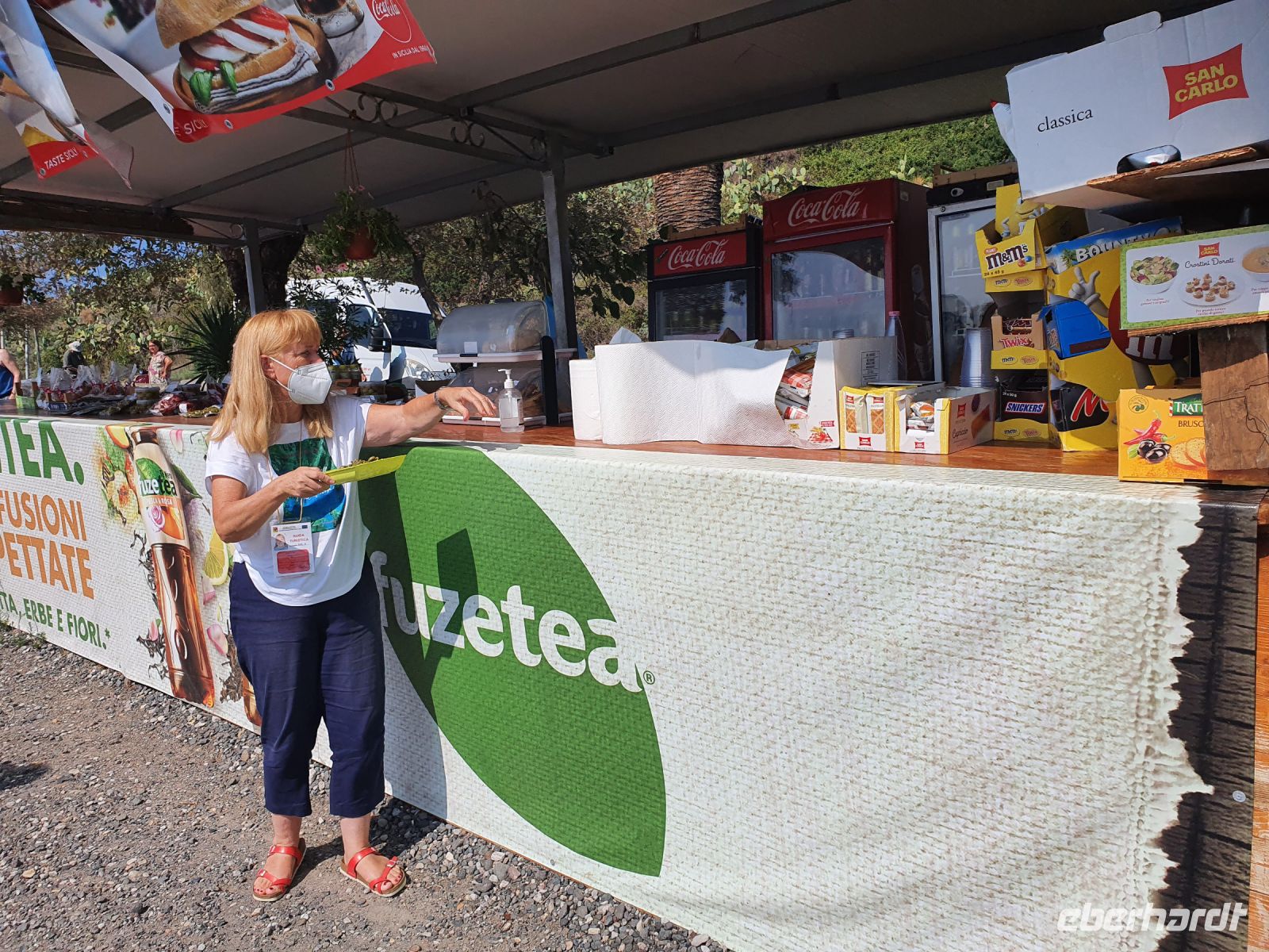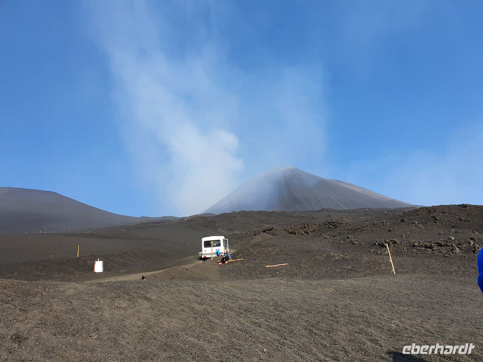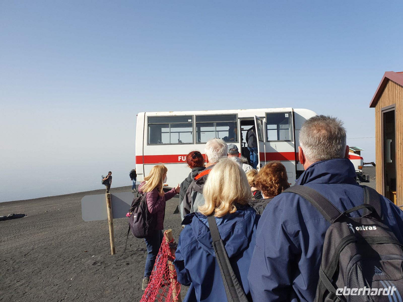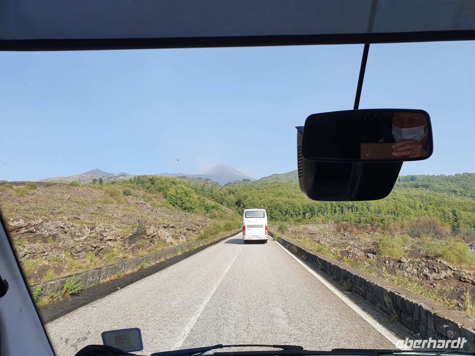 Wieder unten am Parkplatz stöberten wir in den zahlreichen Souvenirgeschäften und ich gab am Bus eine Runde "Ätnafeuer" 70prozentig zum Probieren aus. Auf der Talfahrt nahmen wir die Strasse über Nicolosi und erreichten so die Autobahn bei Catania.