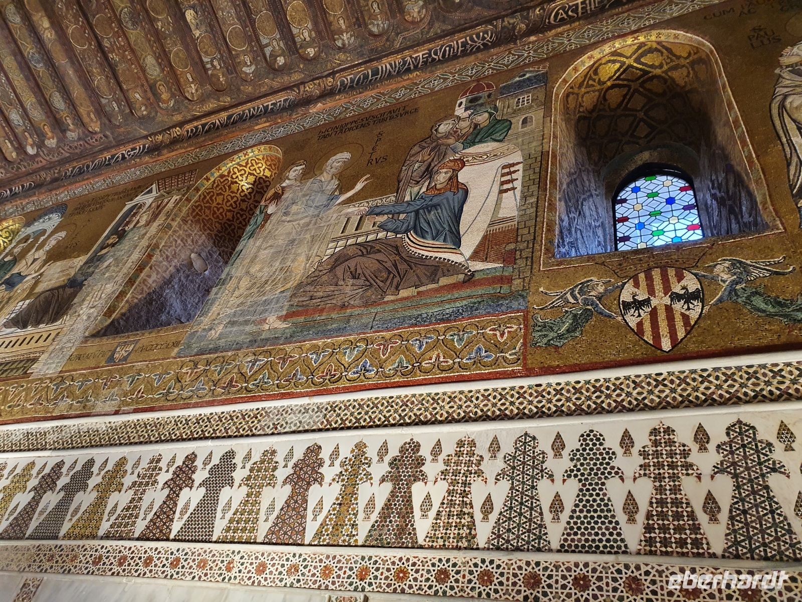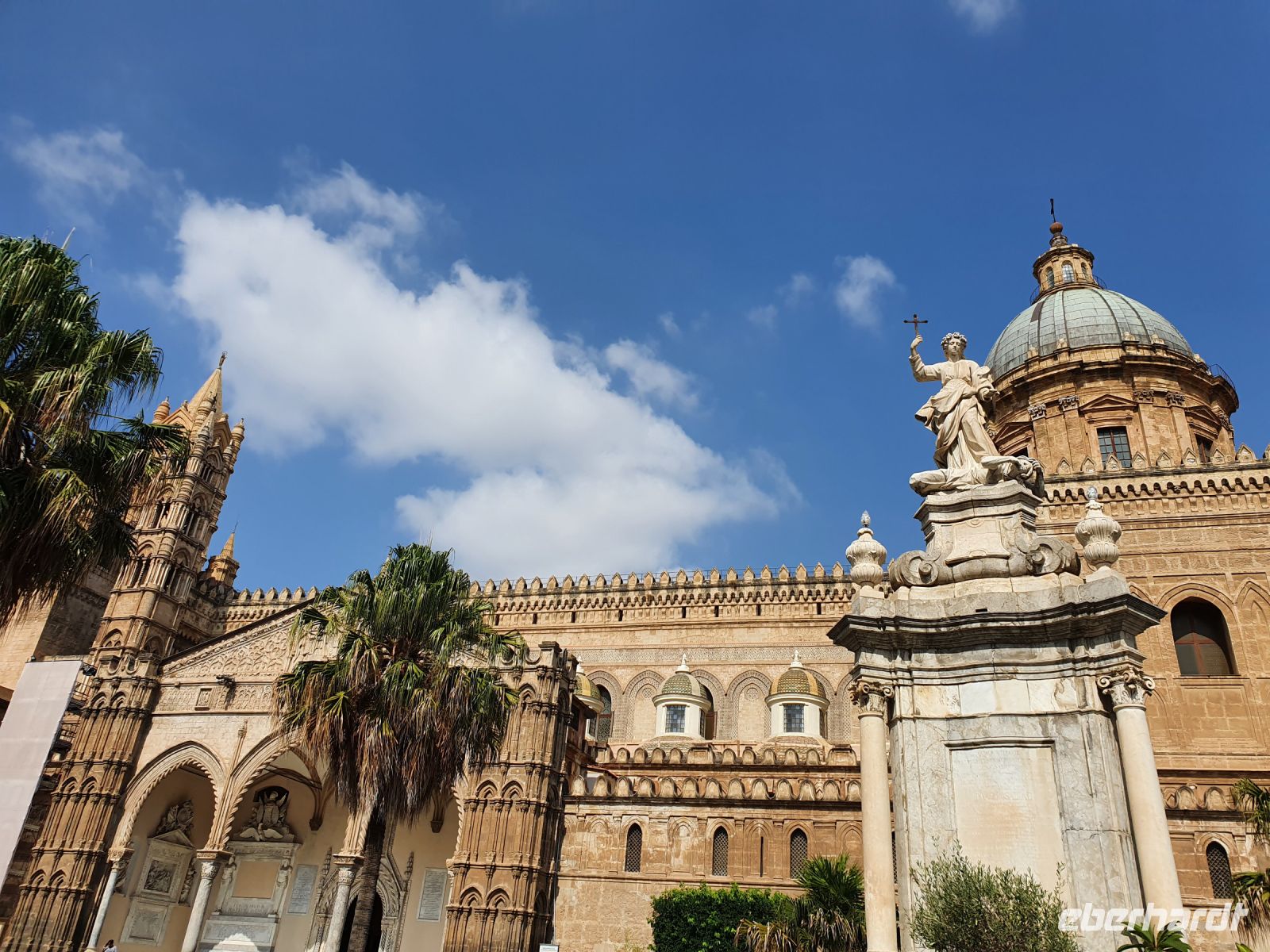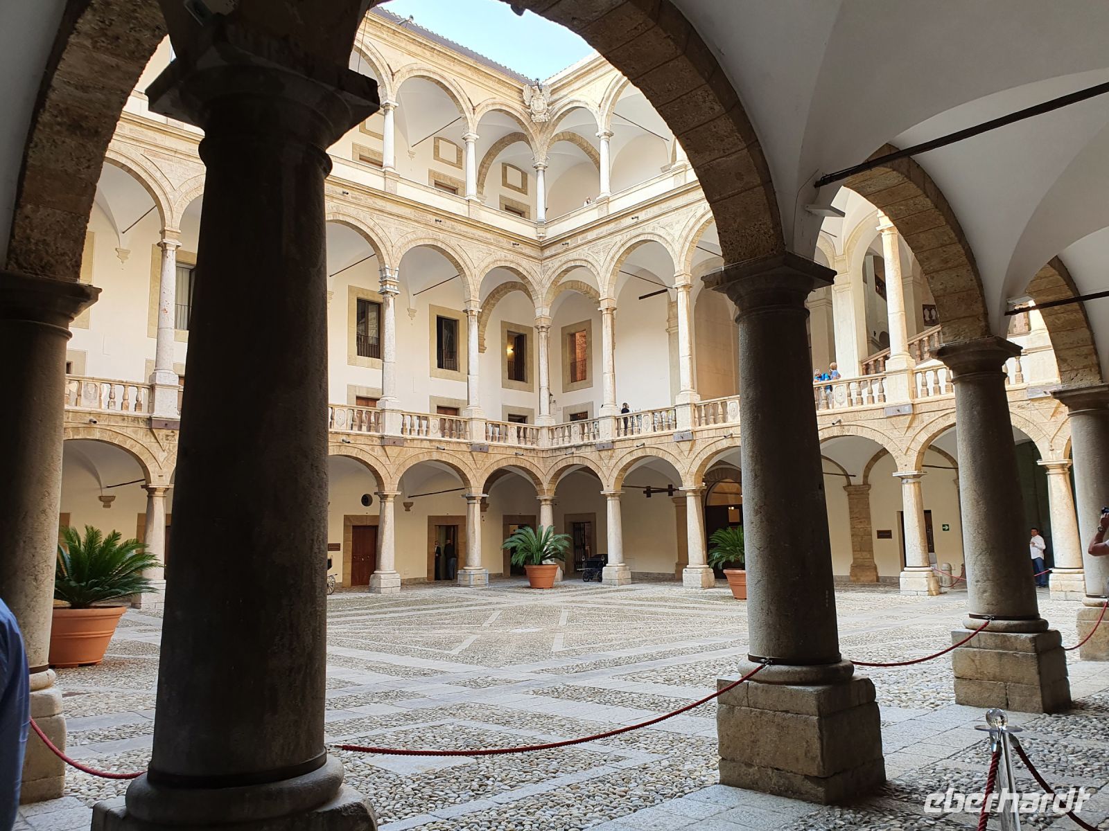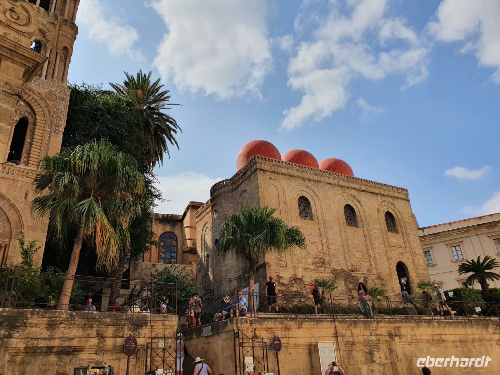 Noch einmal genossen wir das tolle Frühstück in der Case di Latomie, verabschiedeten uns von den Gastgebern und starteten nach Palermo. Nach 2 Sunden Fahrt erreichten wir das Stadtzentrum und begannen unser Programm im Normannenpalast mit der Besichtigung der Capella Palatina. Auch hier waren nur ganz wenige Touristen unterwegs und so mussten wir nicht lange anstehen. Die Capella Palatina ist ein Schmuckstück und mit zahlreichen Mosaiken verziert. Die biblische Geschichte ist an den Wänden dargestellt, um so den Menschen die Geschichte des Christentums zu lehren. Zu sehen sind außerdem in der Capella Palatina der Thron von Roger II und die einzige noch erhaltene normannische Kanzel in Sizilien.