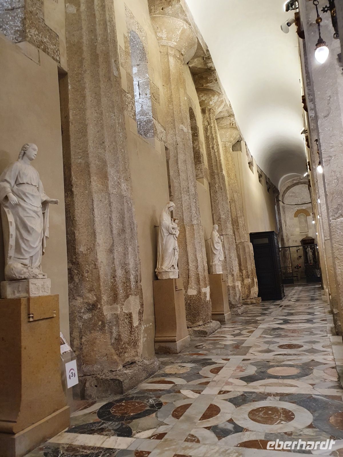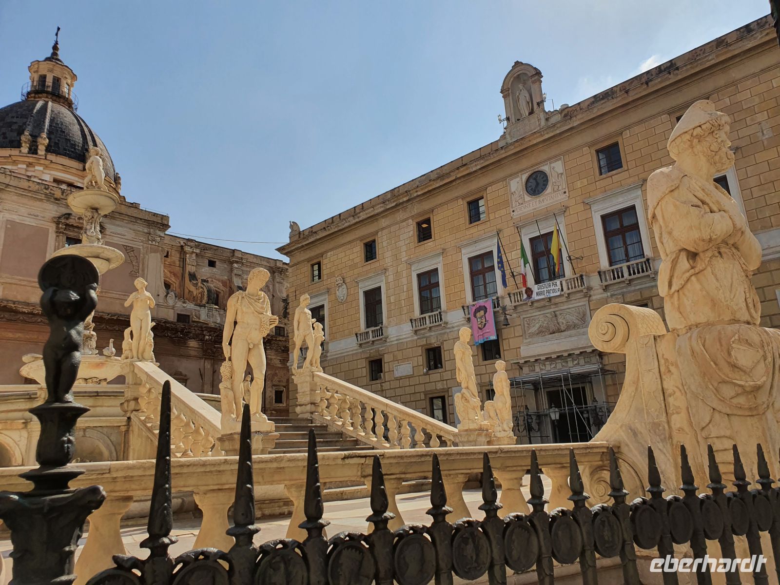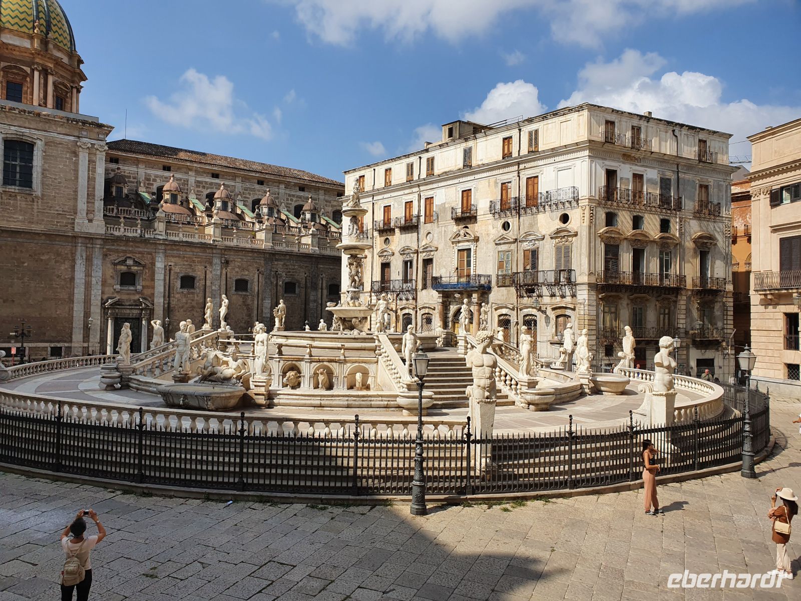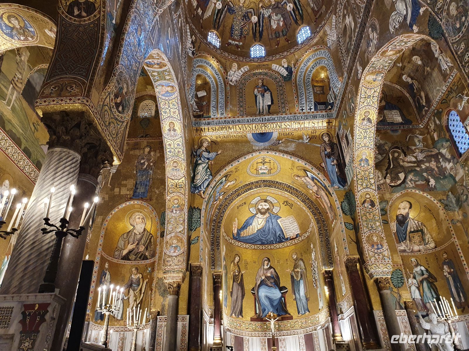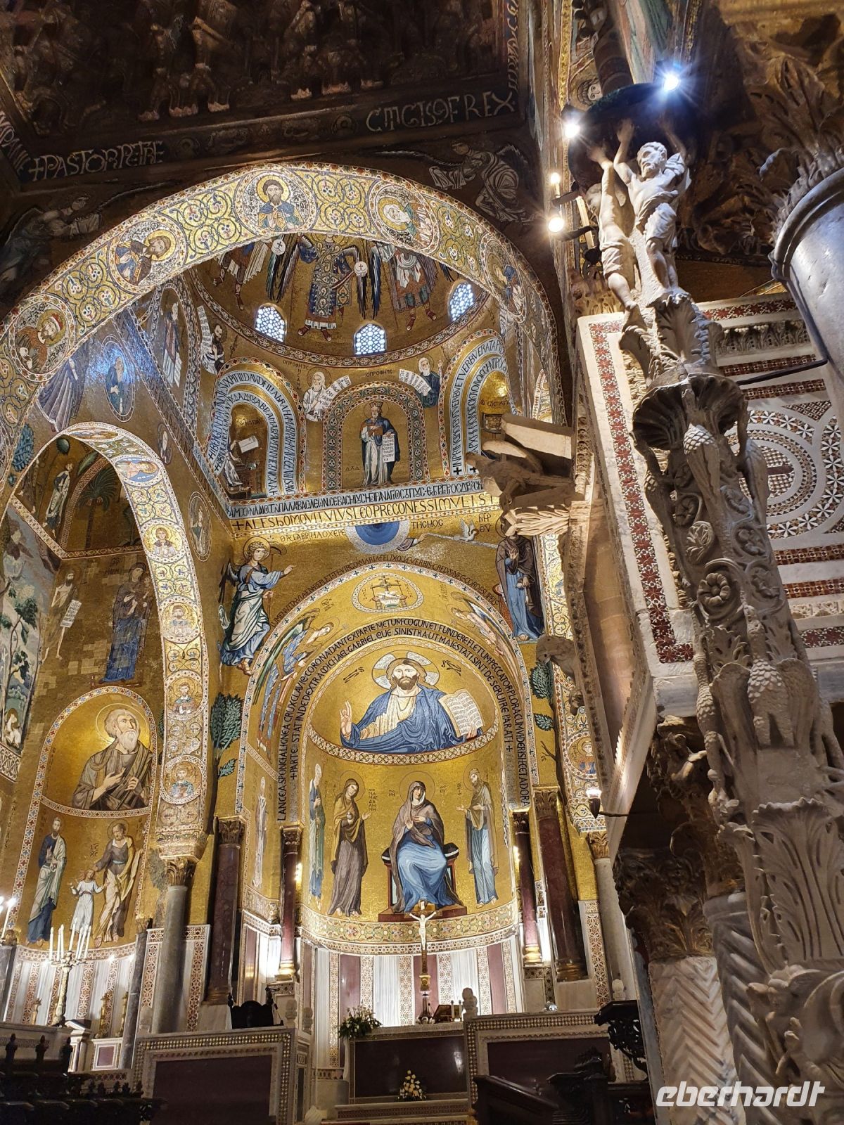 Noch einmal genossen wir das tolle Frühstück in der Case di Latomie, verabschiedeten uns von den Gastgebern und starteten nach Palermo. Nach 2 Sunden Fahrt erreichten wir das Stadtzentrum und begannen unser Programm im Normannenpalast mit der Besichtigung der Capella Palatina. Auch hier waren nur ganz wenige Touristen unterwegs und so mussten wir nicht lange anstehen. Die Capella Palatina ist ein Schmuckstück und mit zahlreichen Mosaiken verziert. Die biblische Geschichte ist an den Wänden dargestellt, um so den Menschen die Geschichte des Christentums zu lehren. Zu sehen sind außerdem in der Capella Palatina der Thron von Roger II und die einzige noch erhaltene normannische Kanzel in Sizilien.