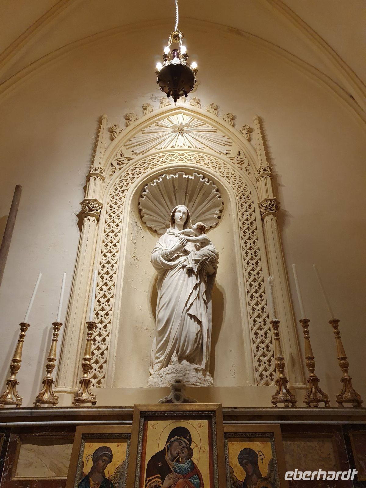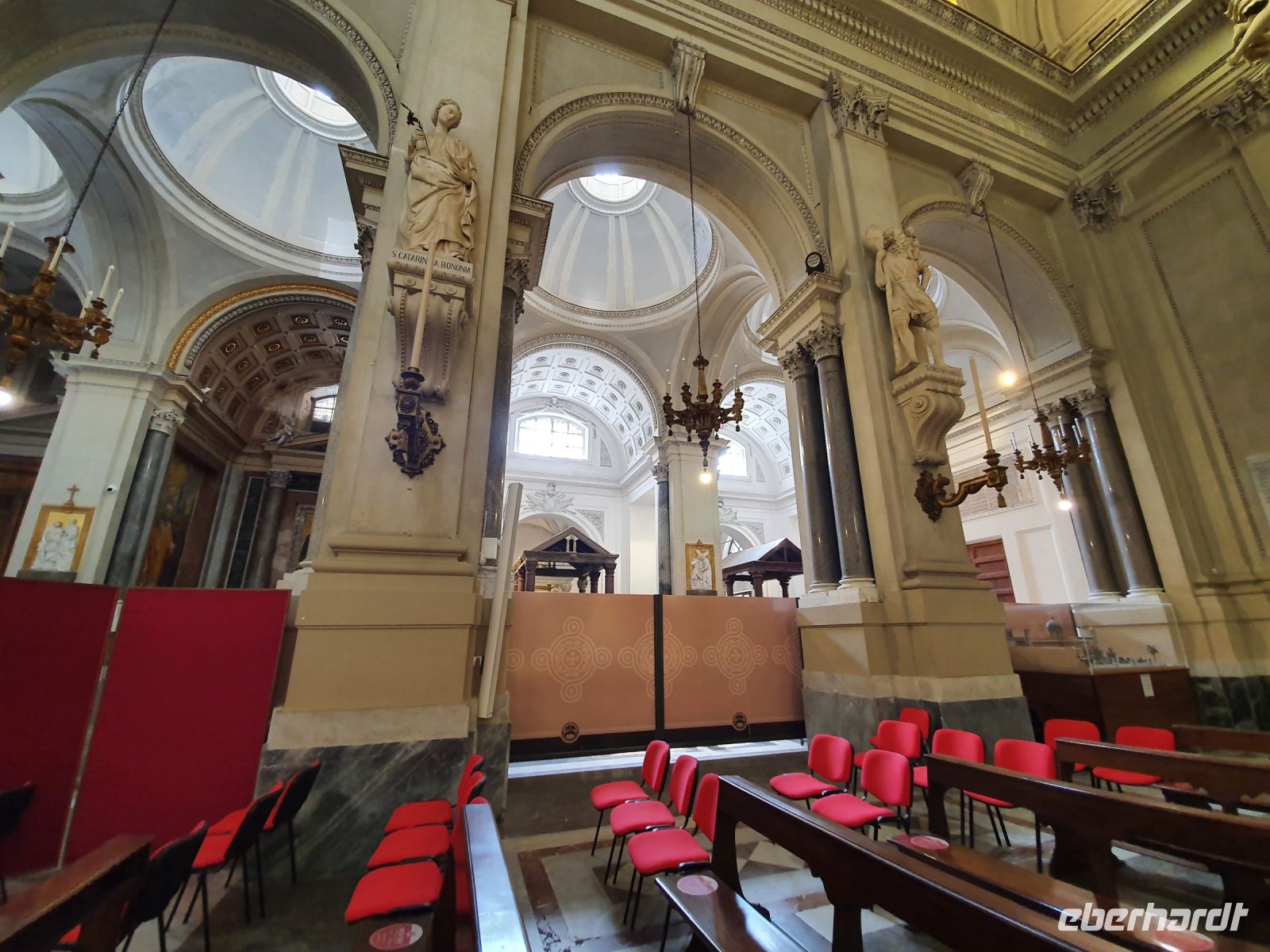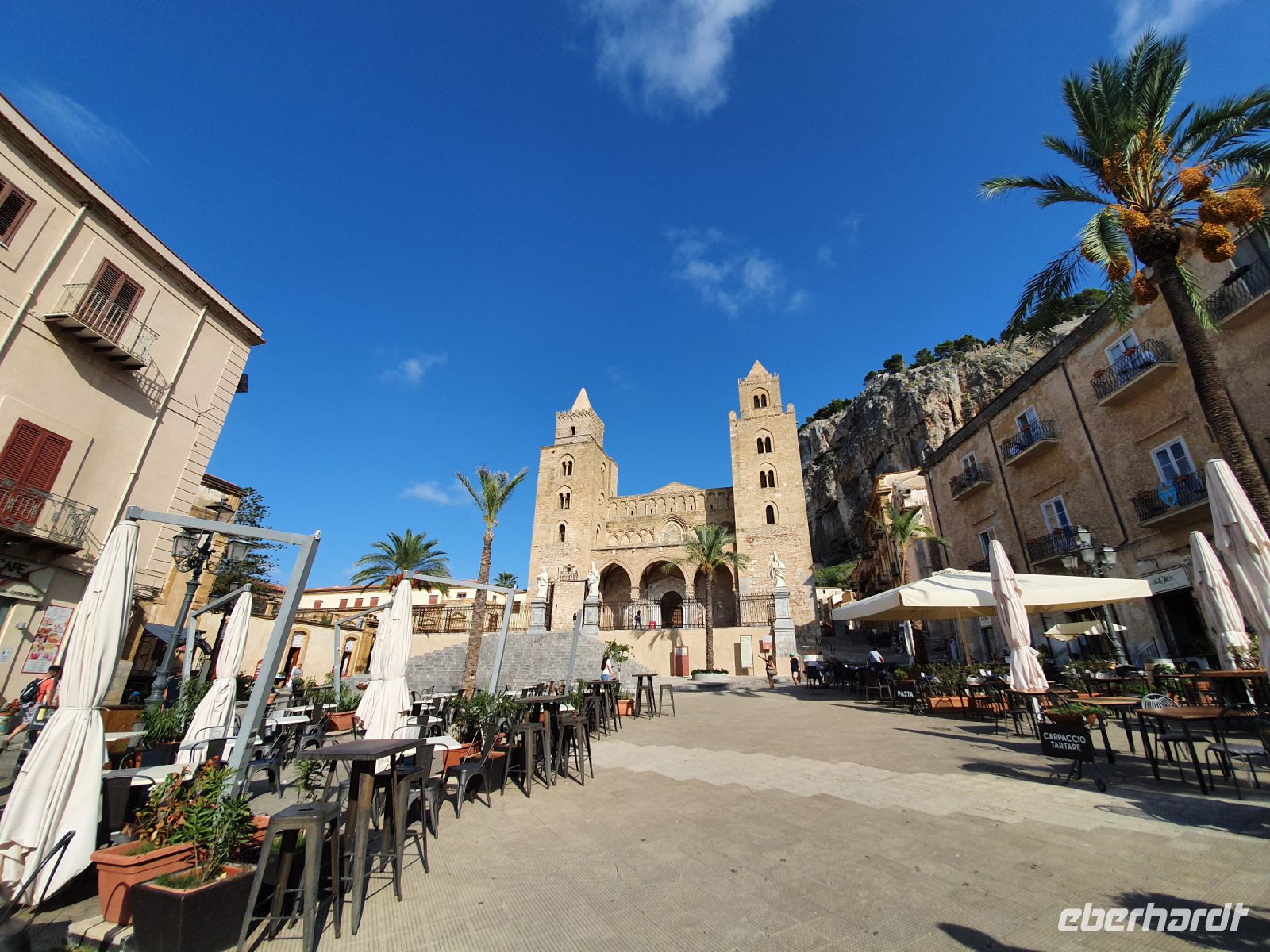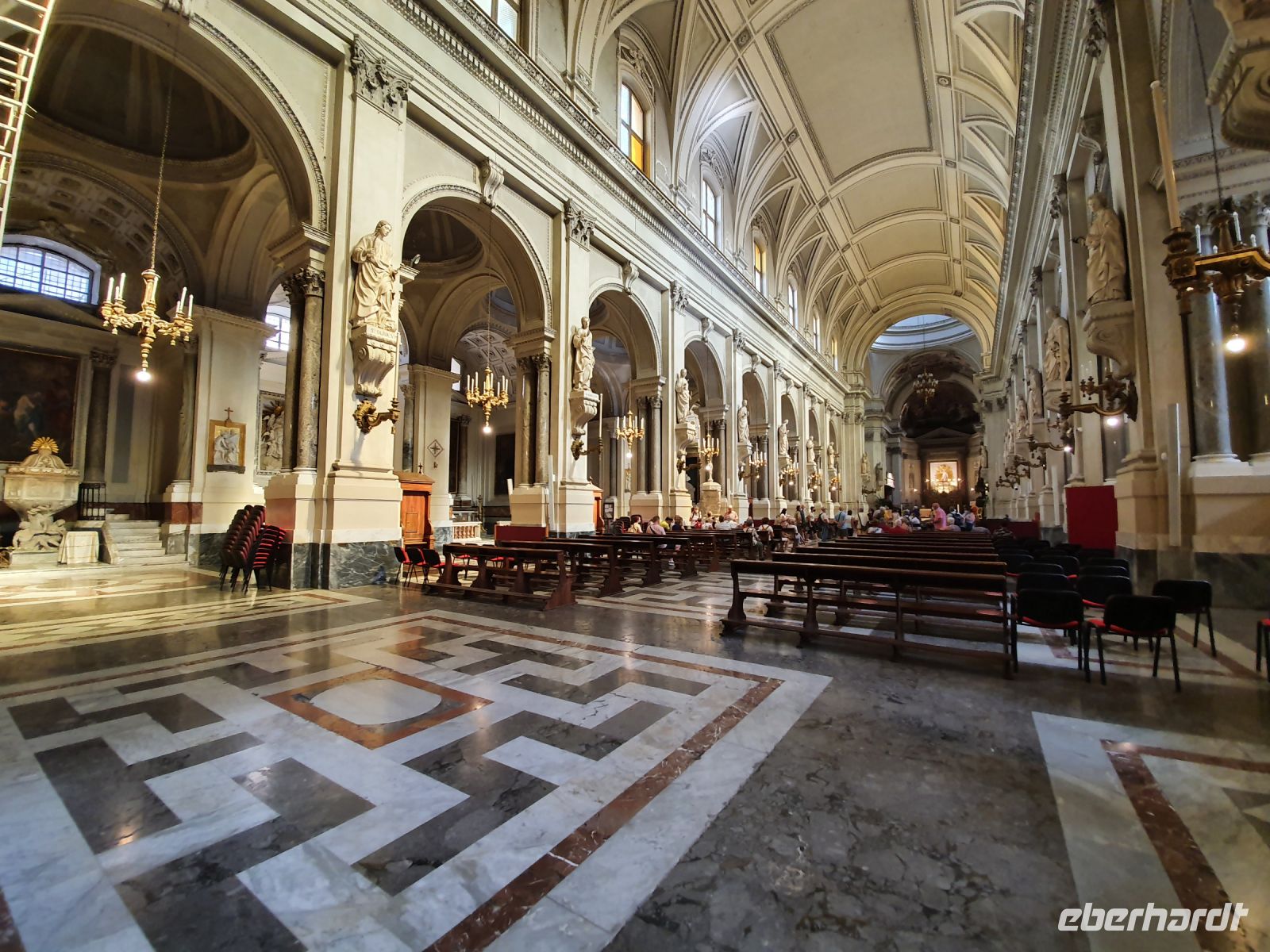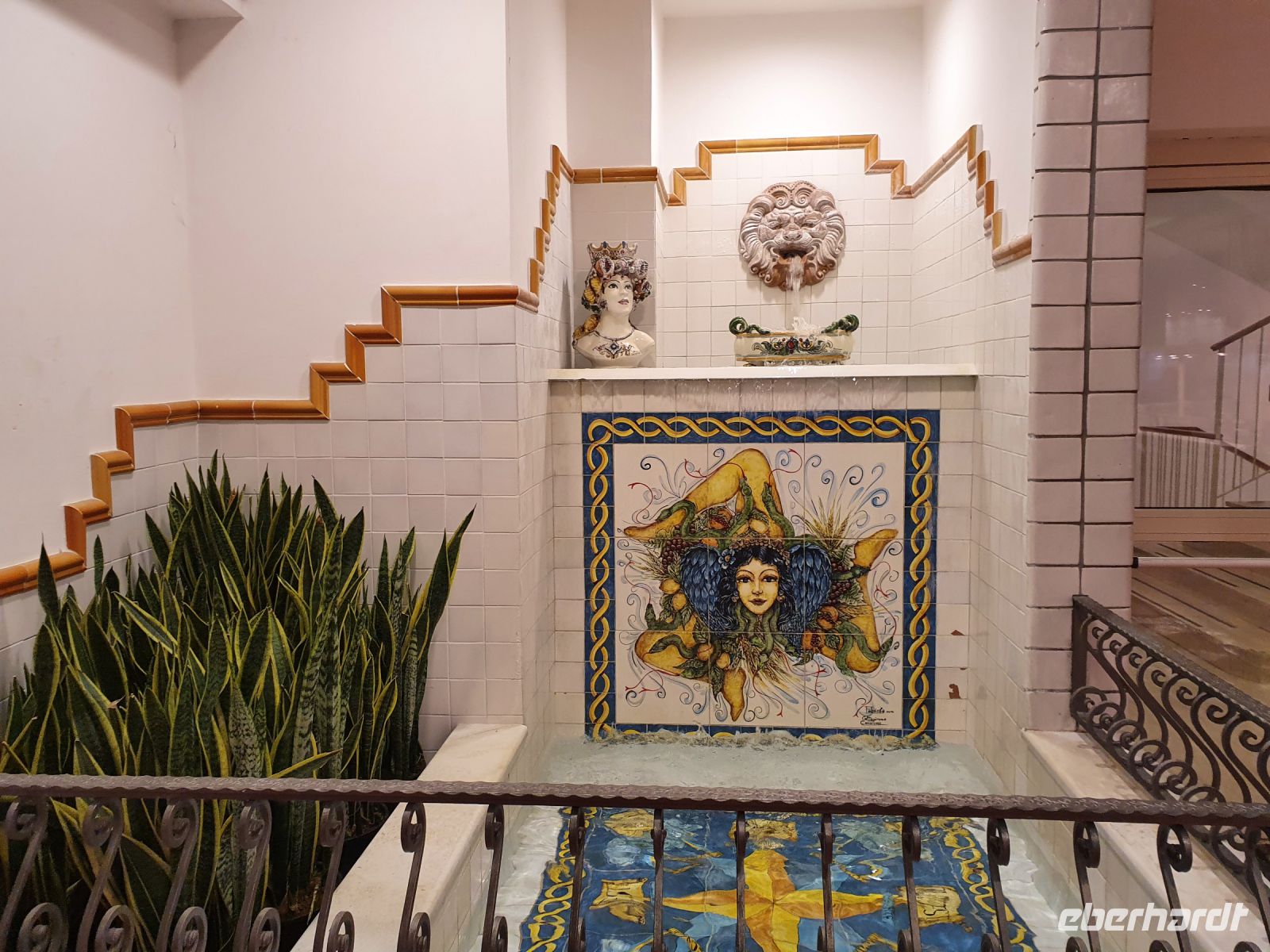 Unseren Rundgang setzten wir zu Fuss fort und besichtigten die Kreuzung der 4 Heiligen, den Schambrunnen am Rathaus und die Matoraner Kirche. Die Strassen in der Altstadt sind vielfach verkehrsfrei und so war der Spaziergang zum Dom recht angenehm. Wir besuchten das Innere des Doms mit dem Meridian am Boden, den Altaren für die heilige Rosalia sowie den Pater und wir sahen die Sarkopharge der Staufer. Weiter führte unser Rundgang zum Teatro Massimo, dem größten Opernhaus Italiens mit 1300 Sitzplätzen. Es wurde 1897 eröffnet und Mitte der 1970er Jahre wegen Baumängeln für 20 Jahre geschlossen. Zum 100.Geburtstag wurde es wieder eröffnet und wird seitdem erfolgreich bespielt. Unser Mittagessen nahmen wir in einer Pizzeria gleich neben dem Theater ein.
